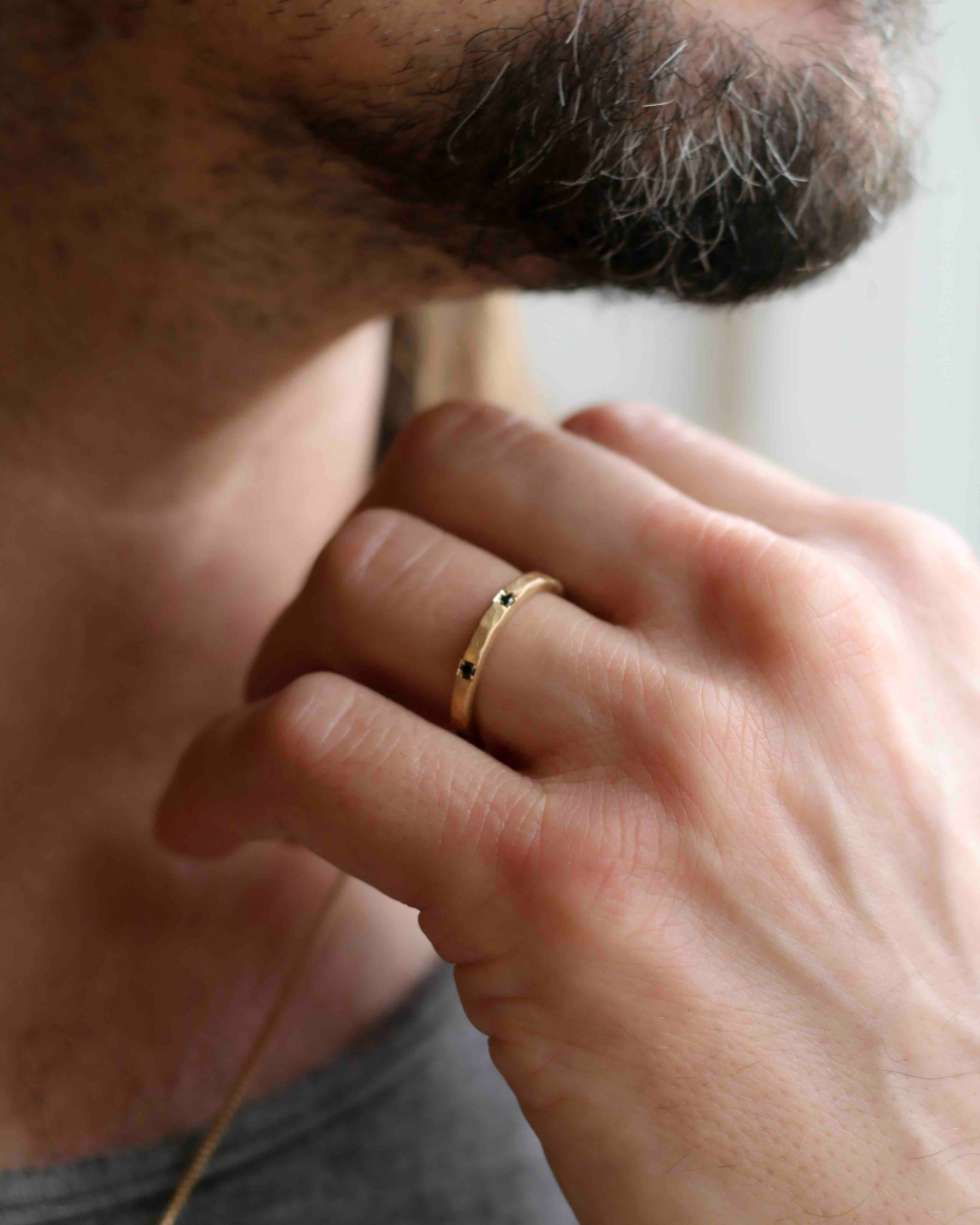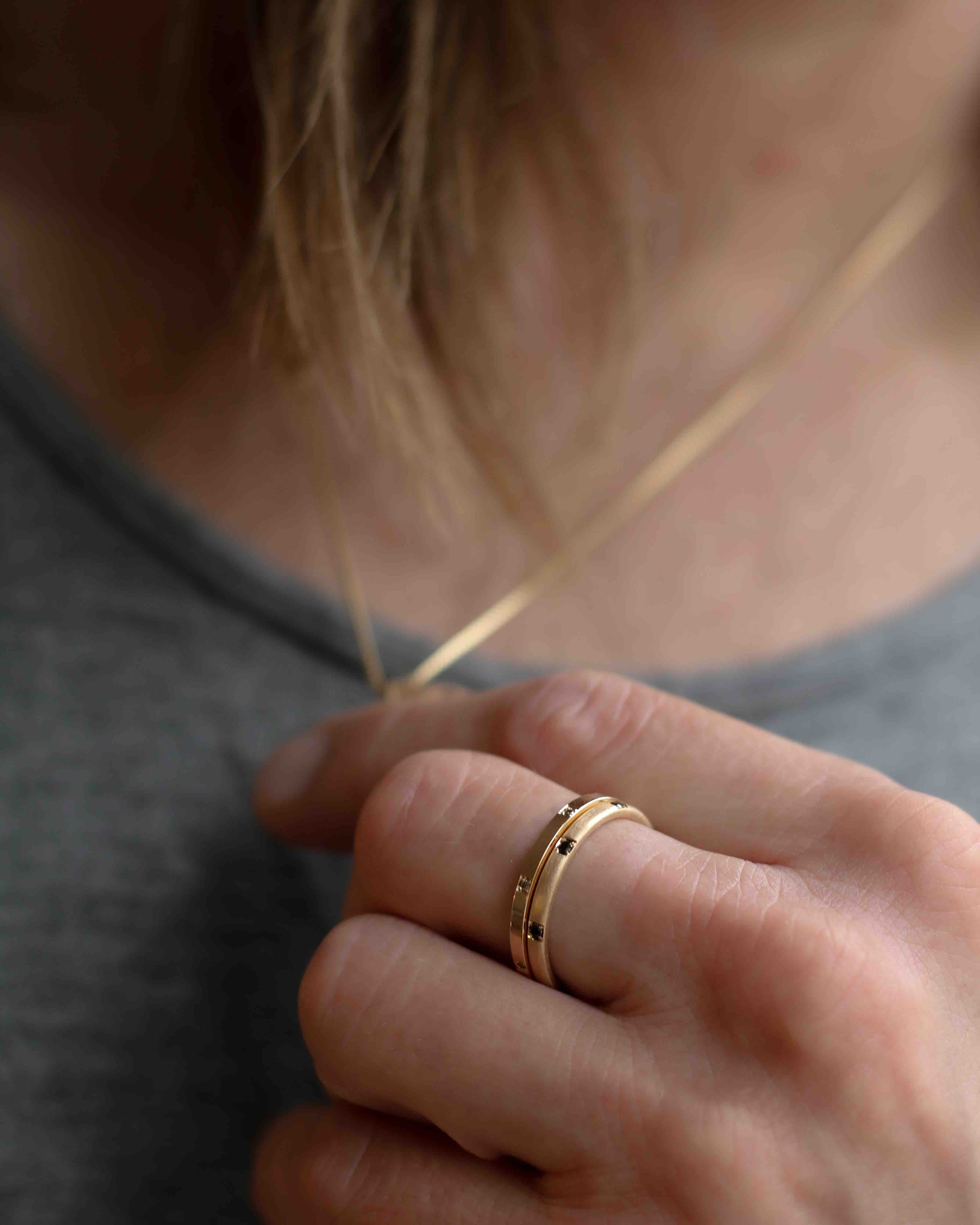 När jag började formge ringar för män, inspirerades jag av klassiska herringar - som den rundade vigselringen i guld som kanske din morfar eller farfar bar. Vår Casper Clean Ring är en modern, minimalistisk version av den. På senare tid har jag inspirerats av ringmodeller som tidigare varit dedikerade för kvinnor, som det klassiska evighetsbandet (alliansringen). Därför hittar du nu min tolkning av denna ikoniska ringmodell här - men skapade för den maskulina handen. Min tredje inspirationskälla är kanske den mest personliga. Jag lever med en man som älskar bilar och rockmusik - så naturligt inspireras jag av detta när jag skapar ringar till honom. Du hittar hans ringar här: Björns ringar