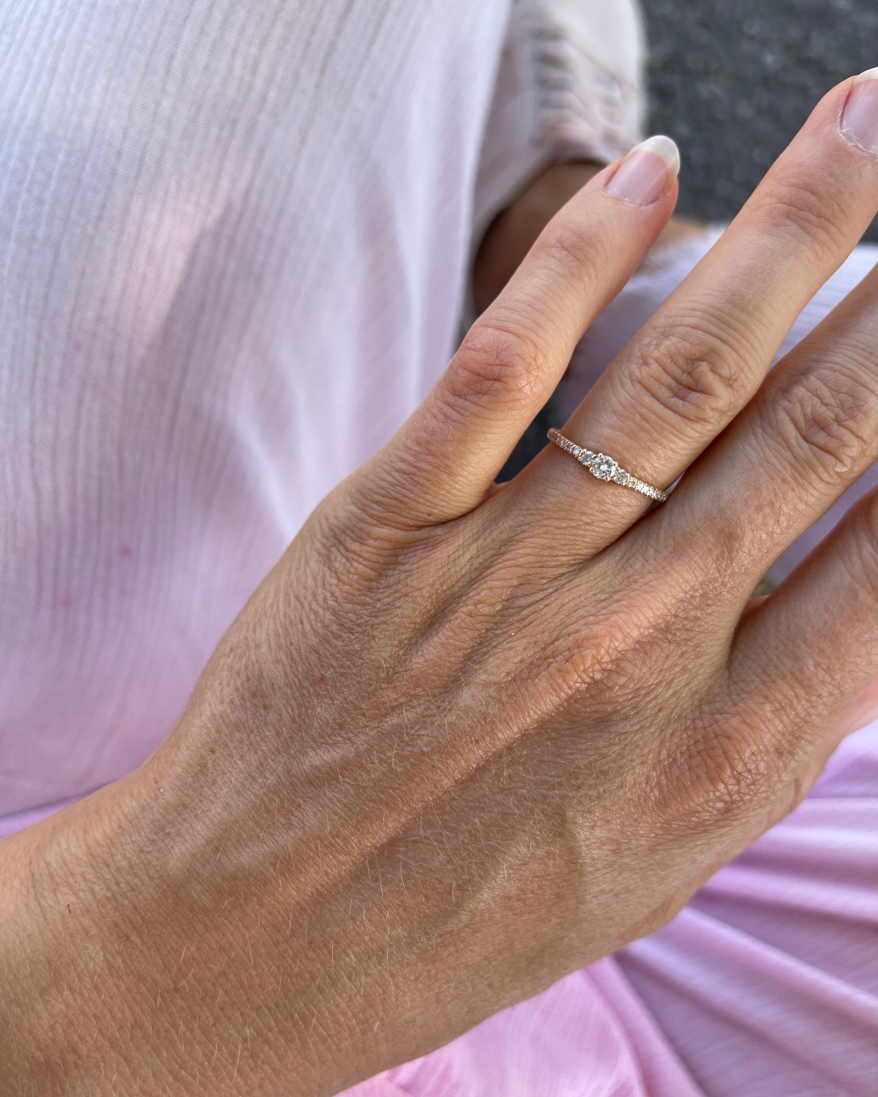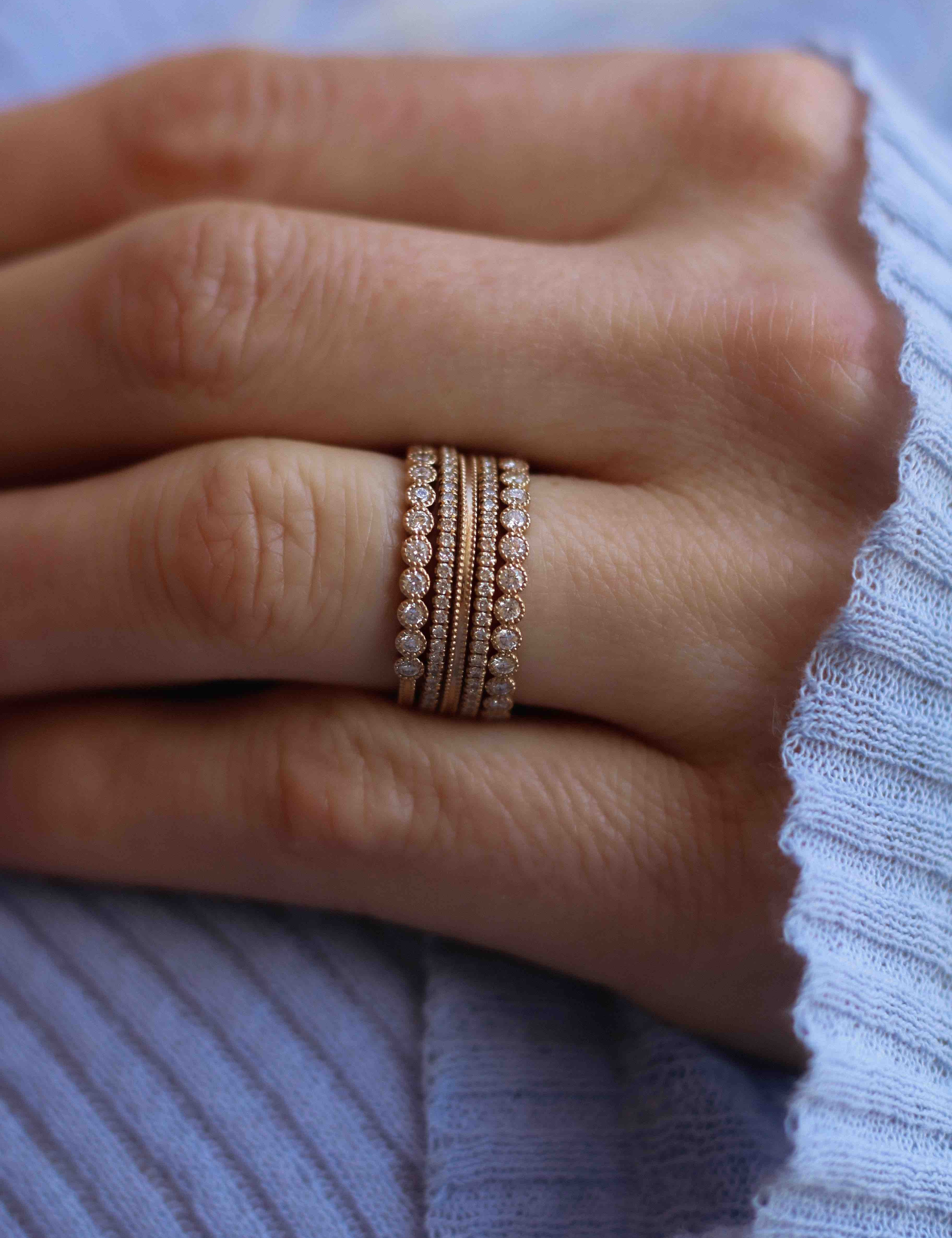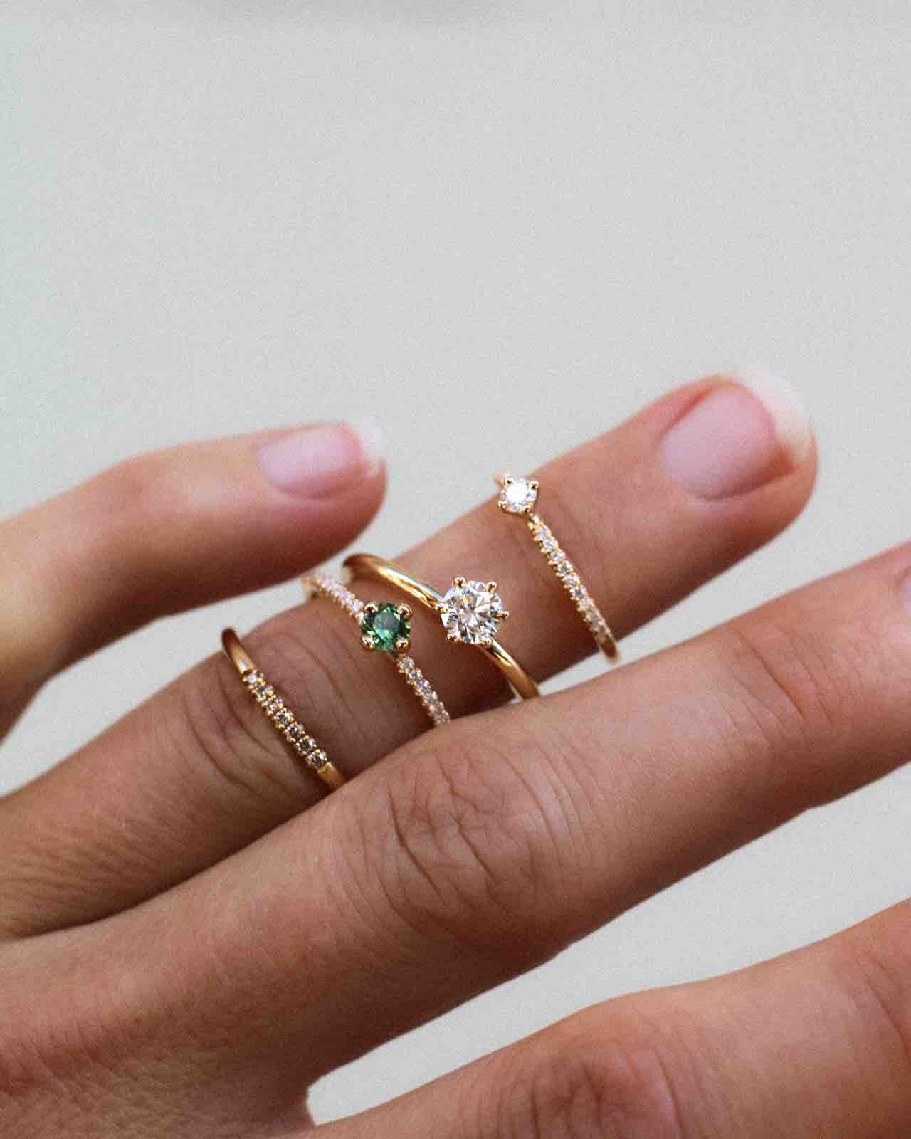 Vår signaturdesign är minimalistiska diamantringar gjorda för att bäras varje dag - och föras vidare i generationer! De är vackra att bära själva men är också anpassade för att kombineras tillsammans i din personliga ring stack.