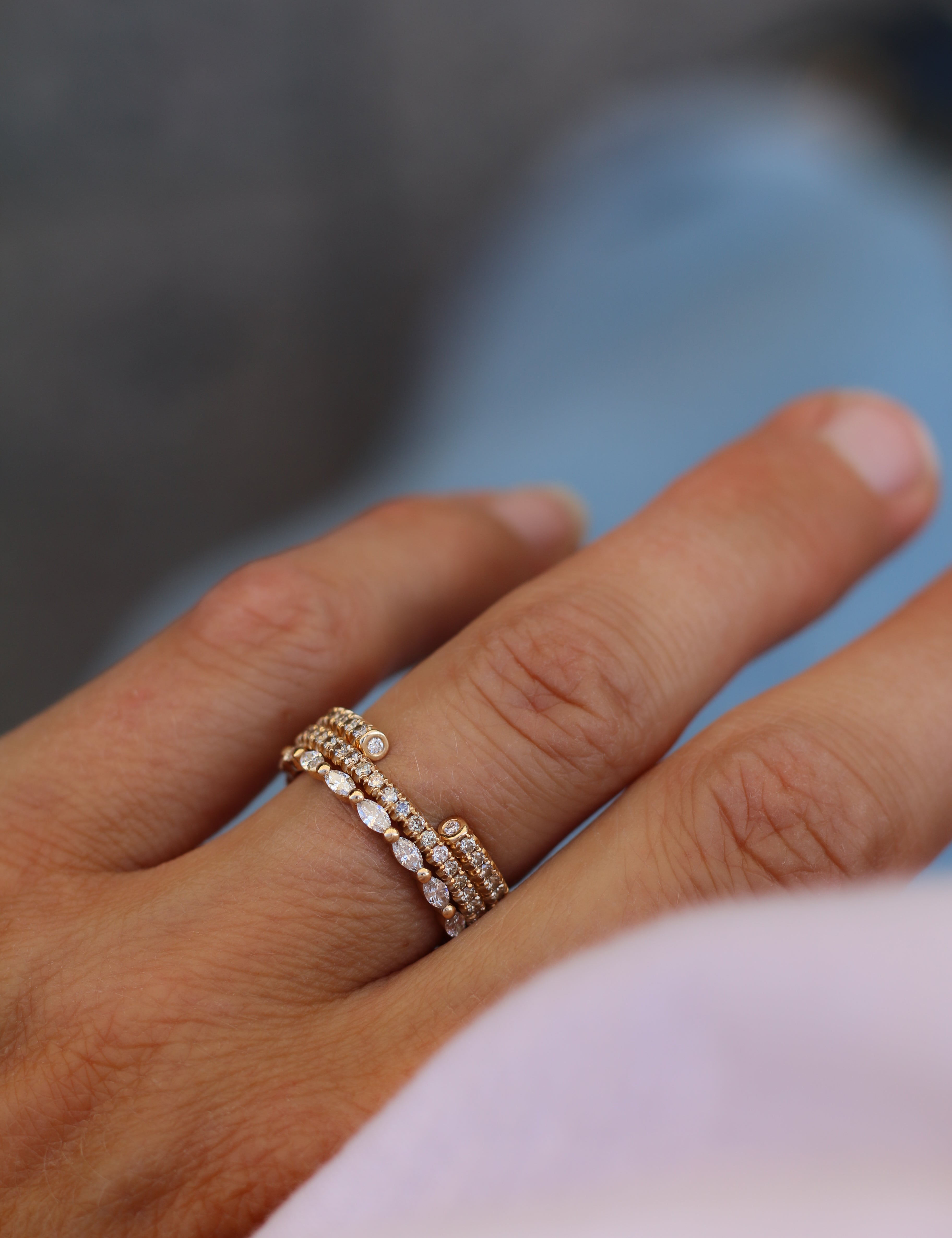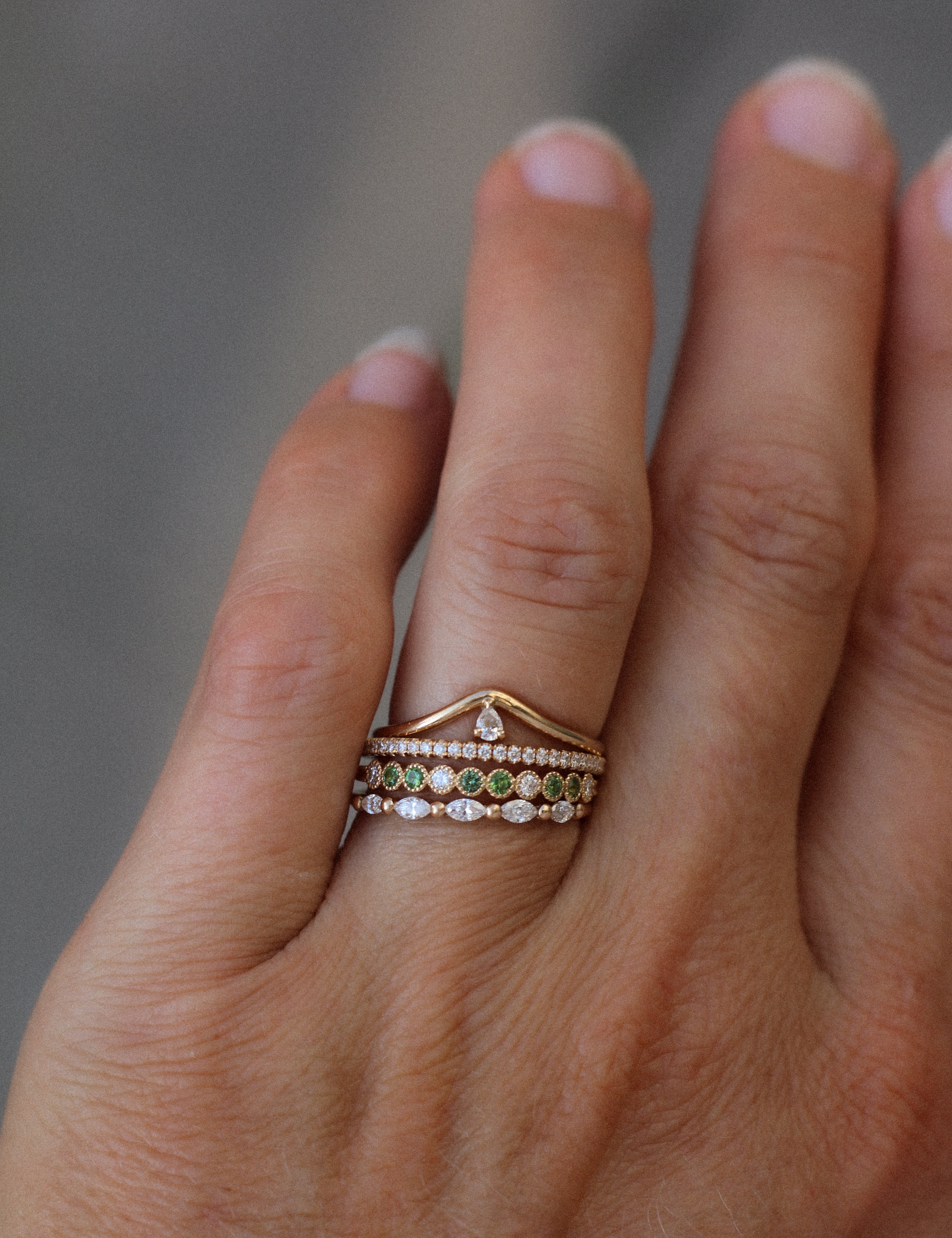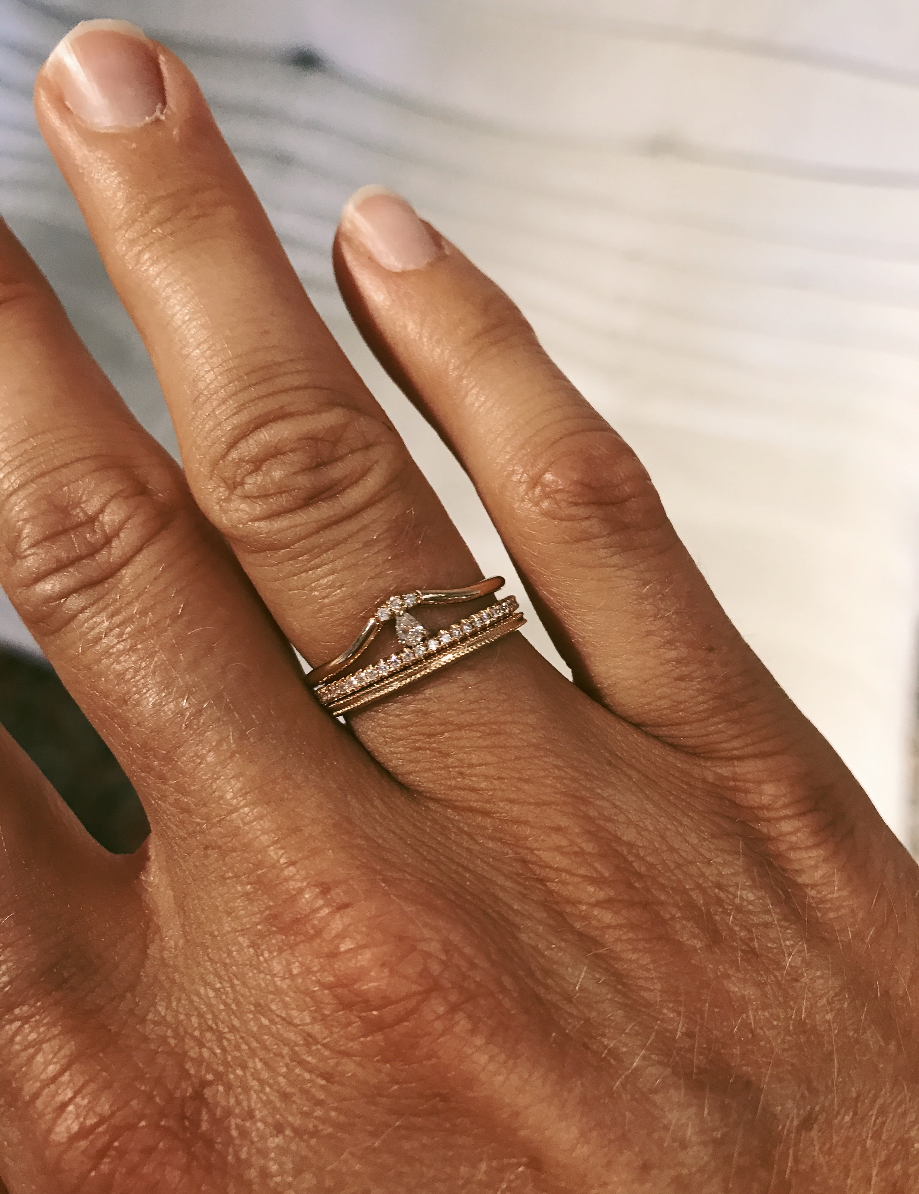 Vår signaturdesign är minimalistiska diamantringar gjorda för att bäras varje dag - och föras vidare i generationer! De är vackra att bära själva men är också anpassade för att kombineras tillsammans i din personliga ring stack.