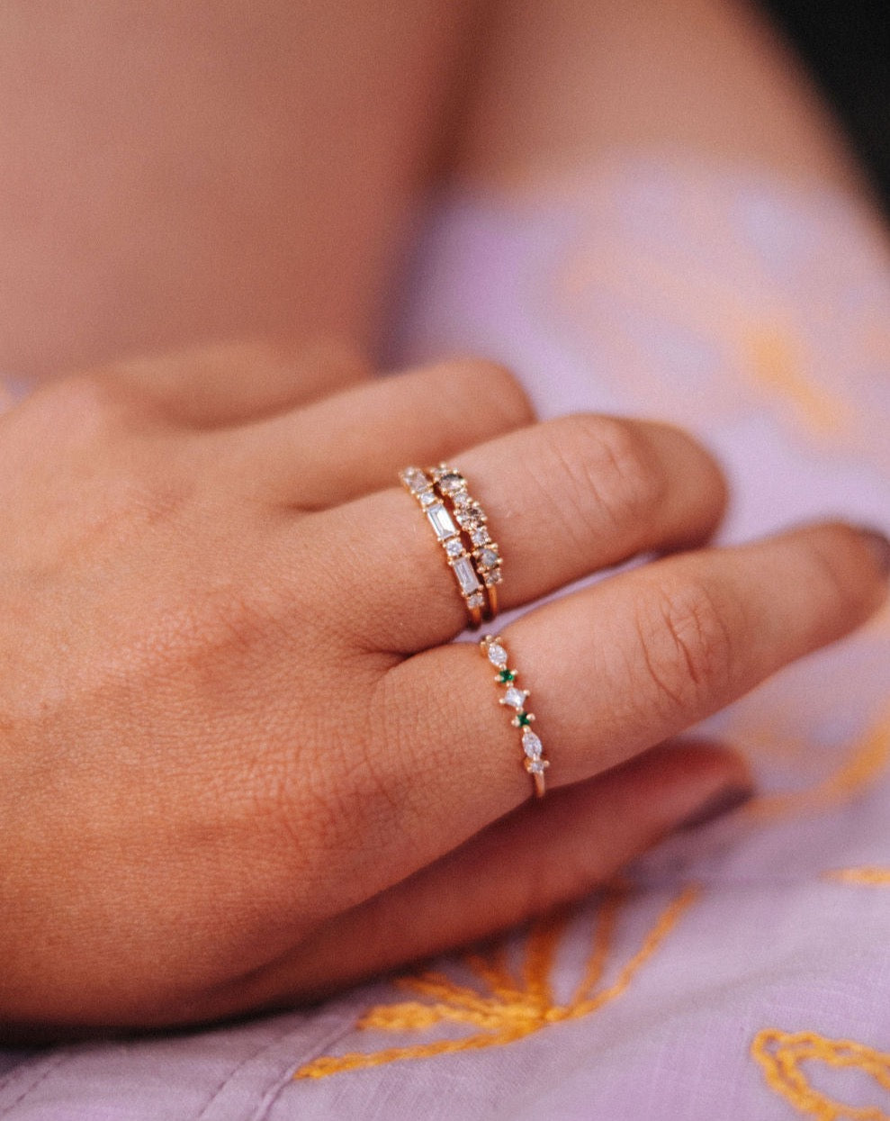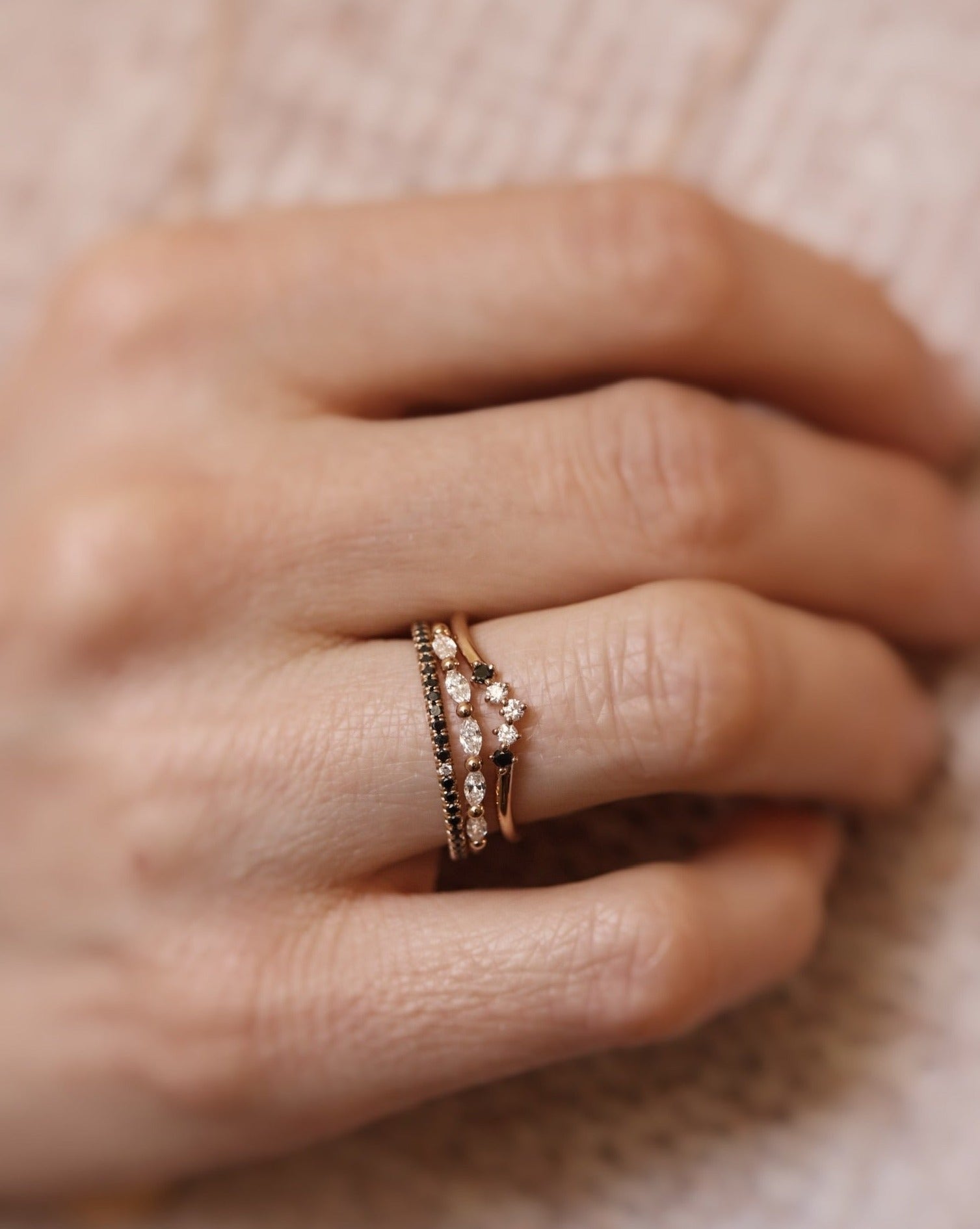 Vår signaturdesign är minimalistiska diamantringar gjorda för att bäras varje dag - och föras vidare i generationer! De är vackra att bära själva men är också anpassade för att kombineras tillsammans i din personliga ring stack.