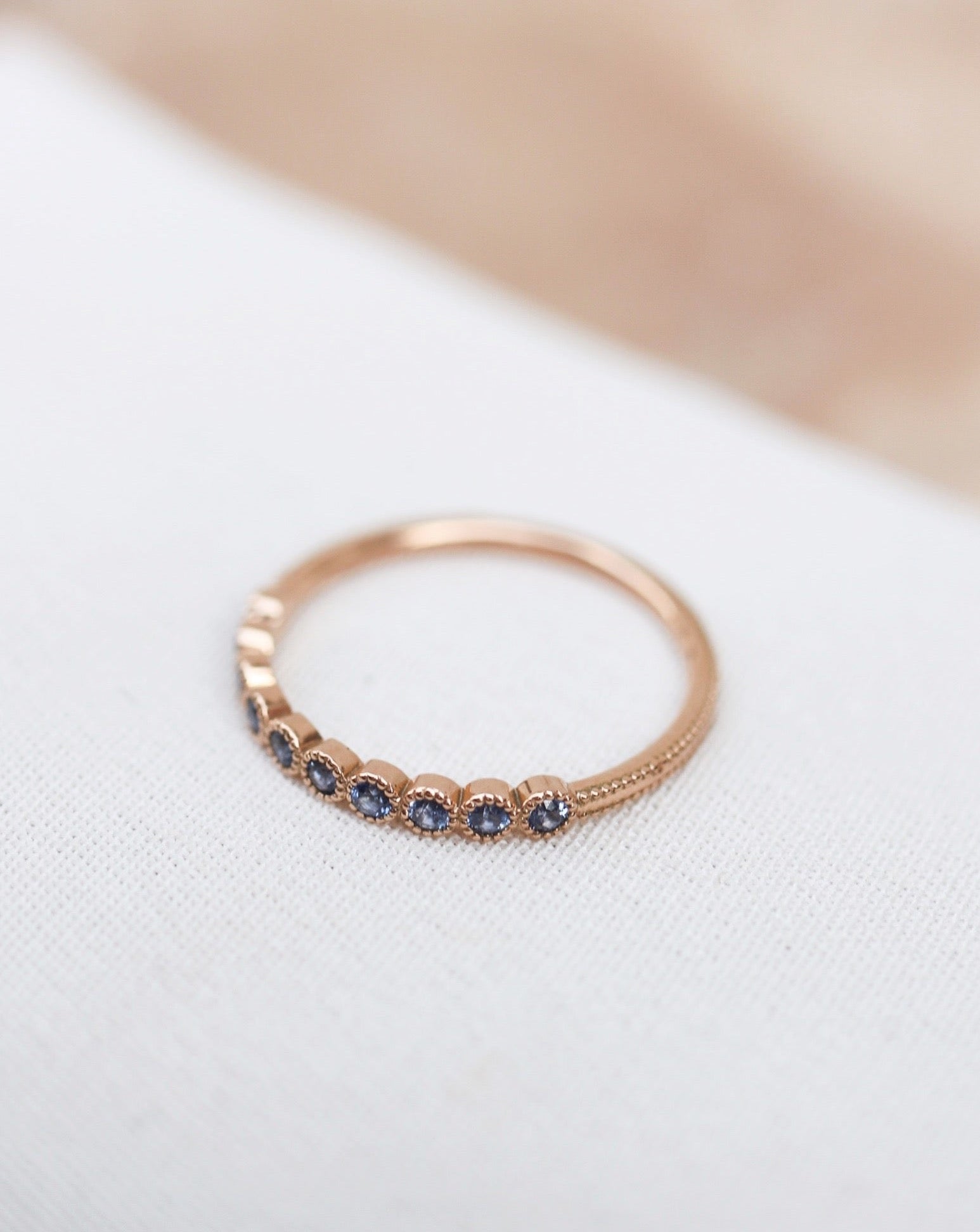 Astrid Top Covered Diamond Band med Duvblå Safirer