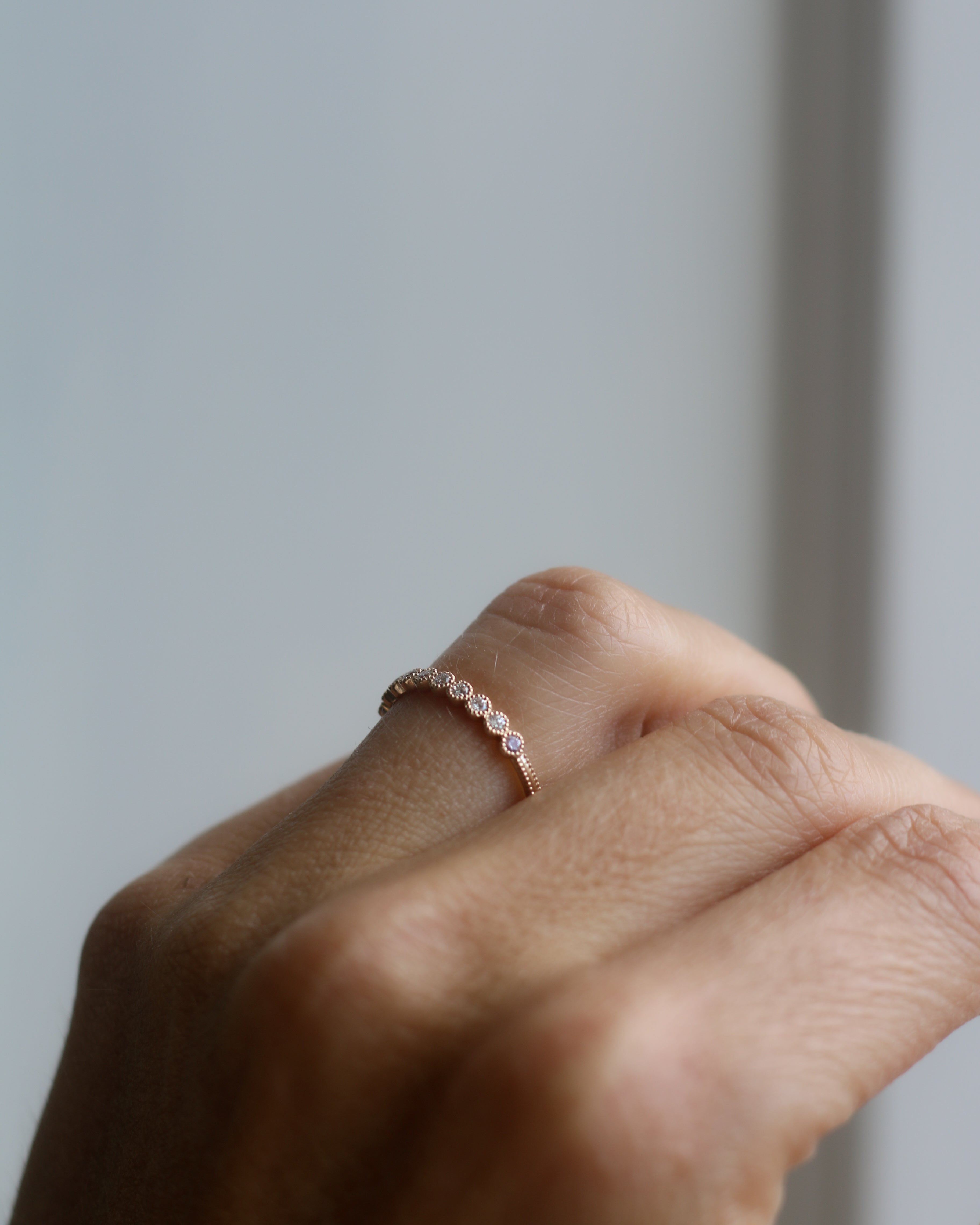 Astrid Vintage Diamond Band fantastiskt vackert diamantband som har en underbar vintagekänsla. Dekoren runt fattningen är en underbar milligriffdekor som var vanlig i smycken under förra sekelskiftet (1800/1900).