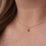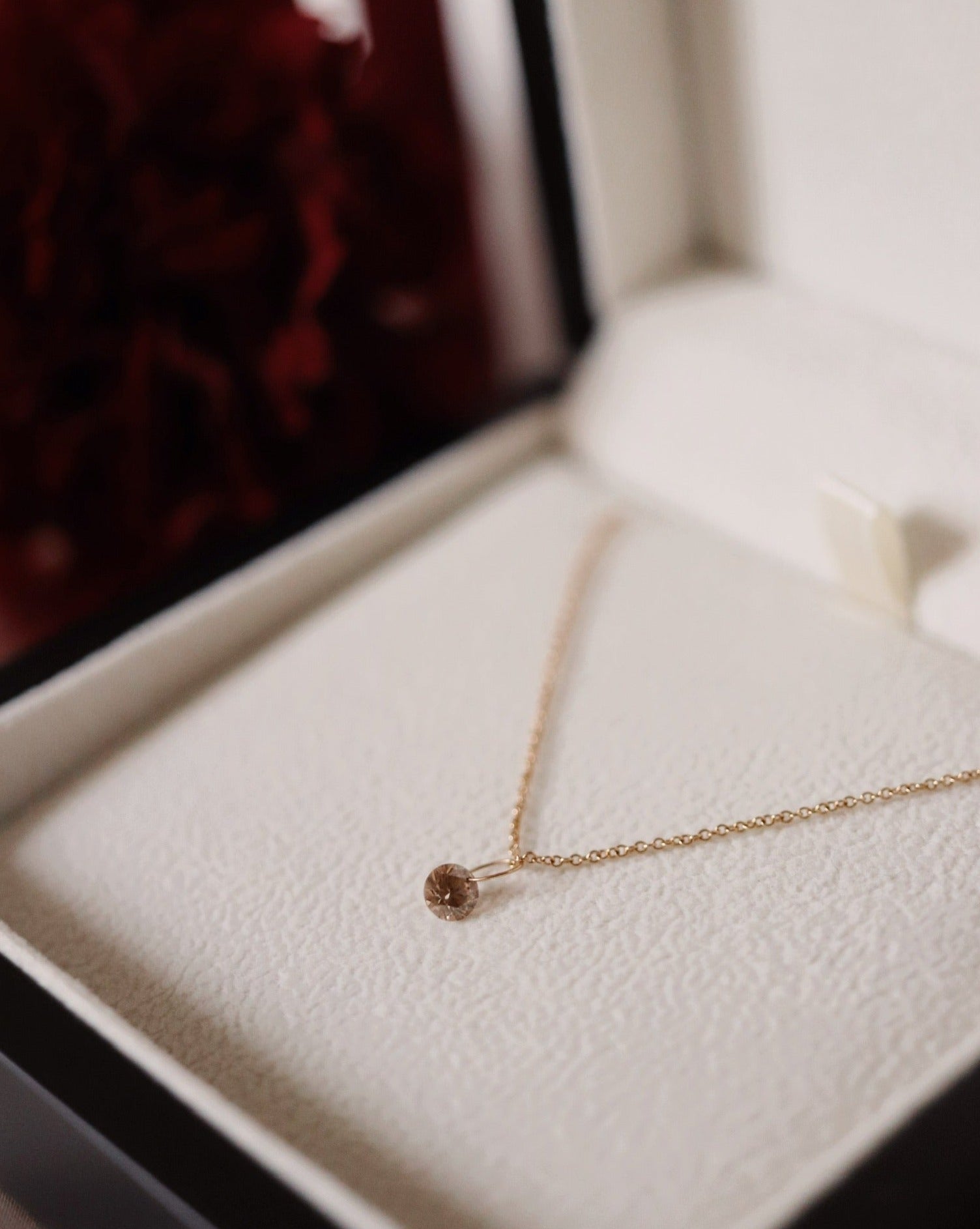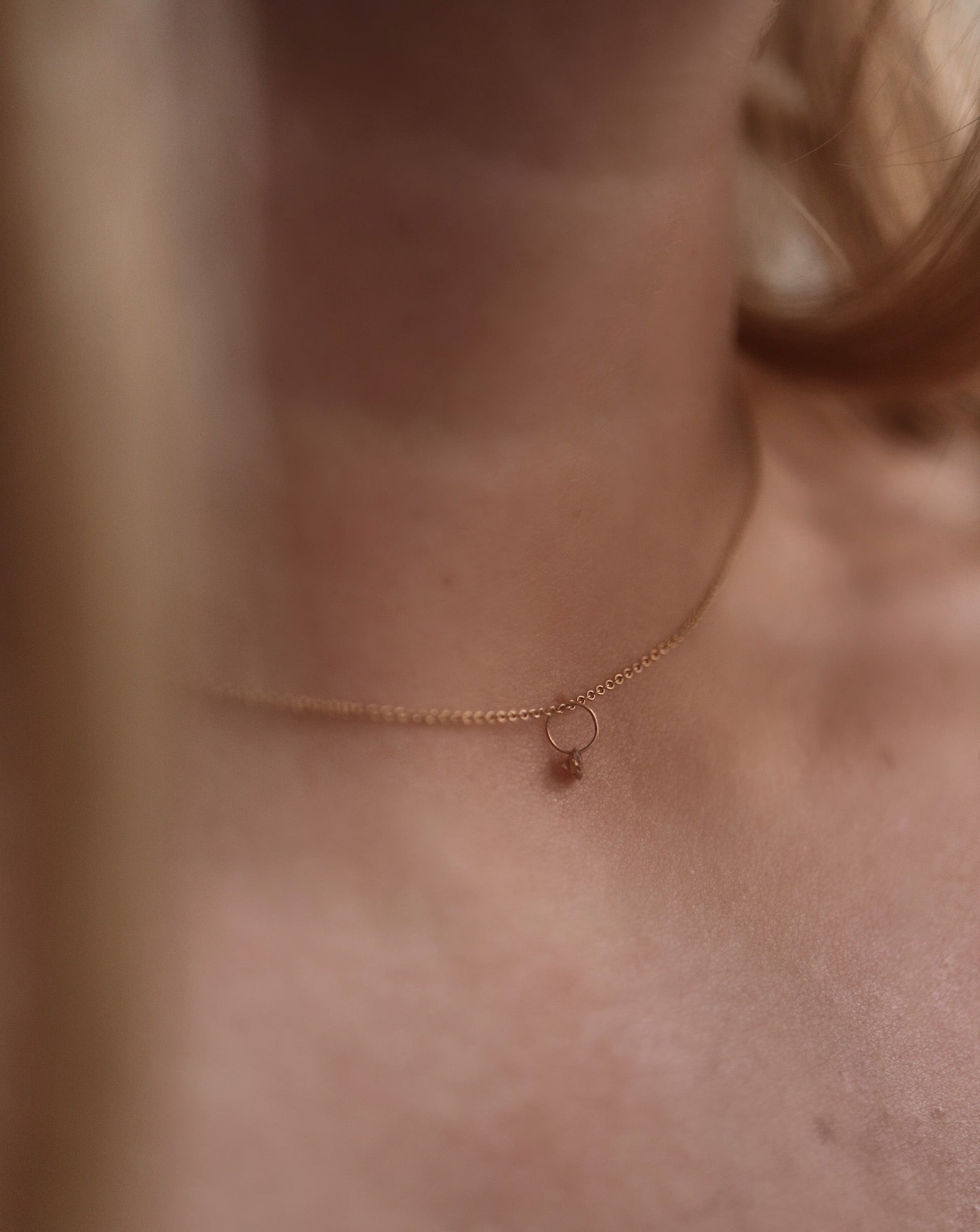 We highly recommend you to add our bare gold chain to your order, as it is very minimal and truly complements this super minimalistic diamond pendant!