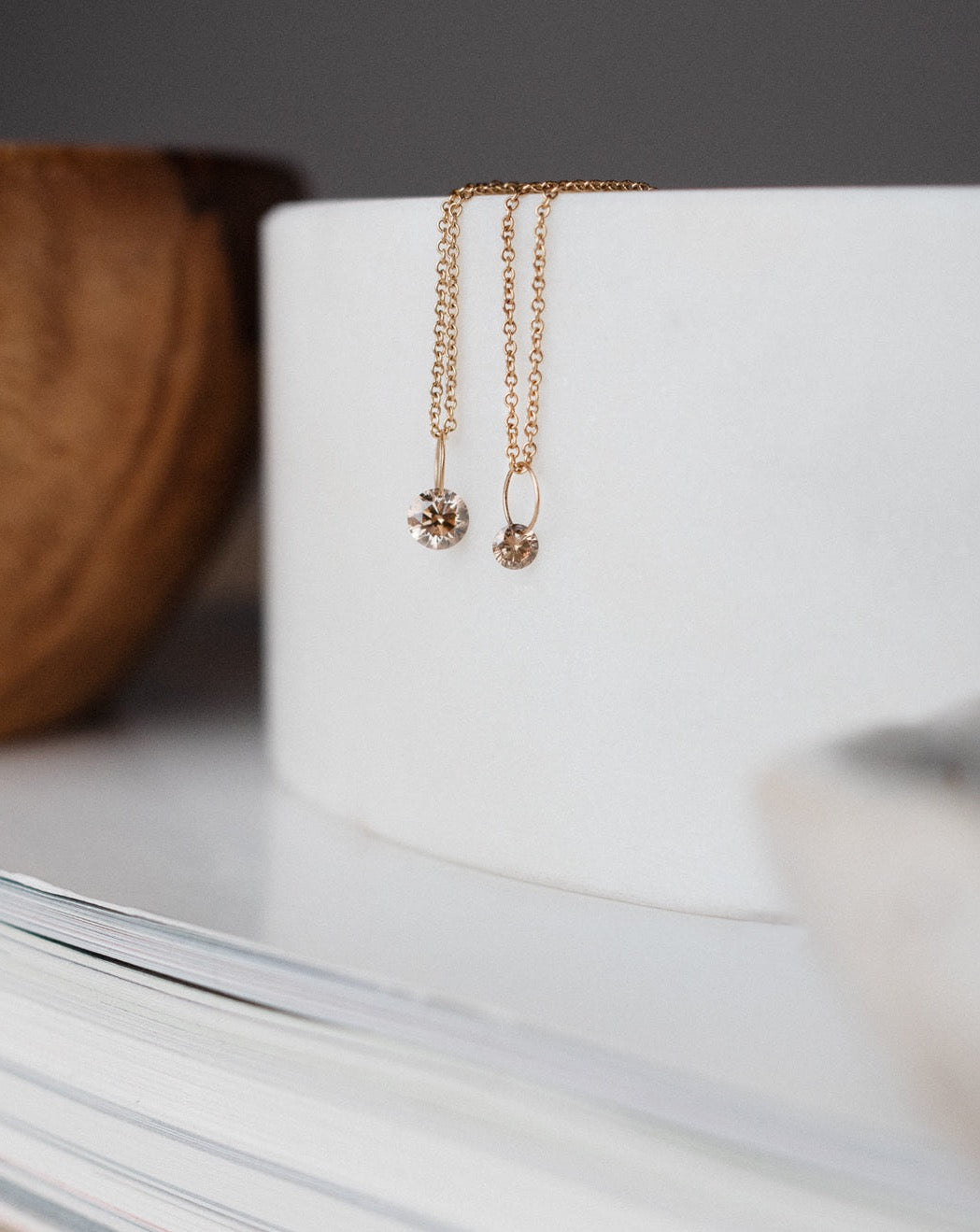 If wearing on a chain you already have: the loop of the pendant is 4 mm, so it should be able to be worn on any necklace chain you have at home. We recommend wearing the pendant on a very thin chain like this one, so it appears as if the diamond is floating on your bare skin.