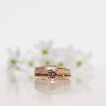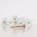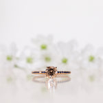 - Low Classic Solitaire Sparkle Ring with Champagne Morganite and Dark Blue Sapphires