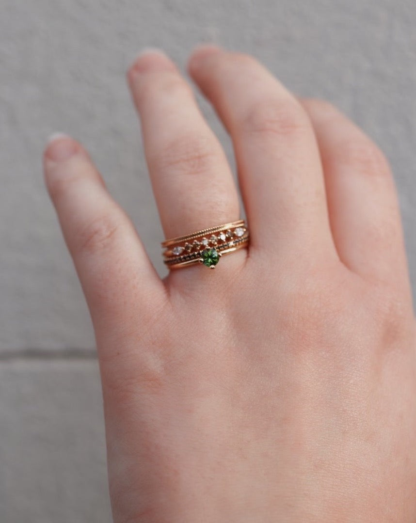 This ring stacks wonderfully with almost all other rings from our collection, but is also beautiful worn alone on the finger.