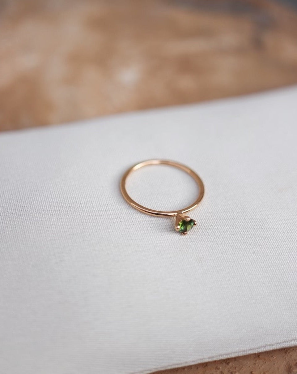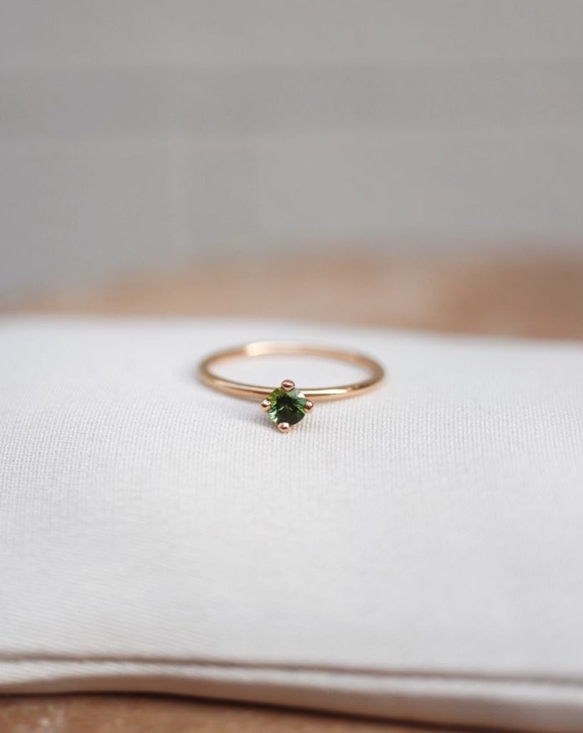 Tourmalines rank a hardness of 7-7,5 on Moh's Scale of Hardness and come in many different colors. In this ring we have used a stunning green tourmaline.