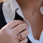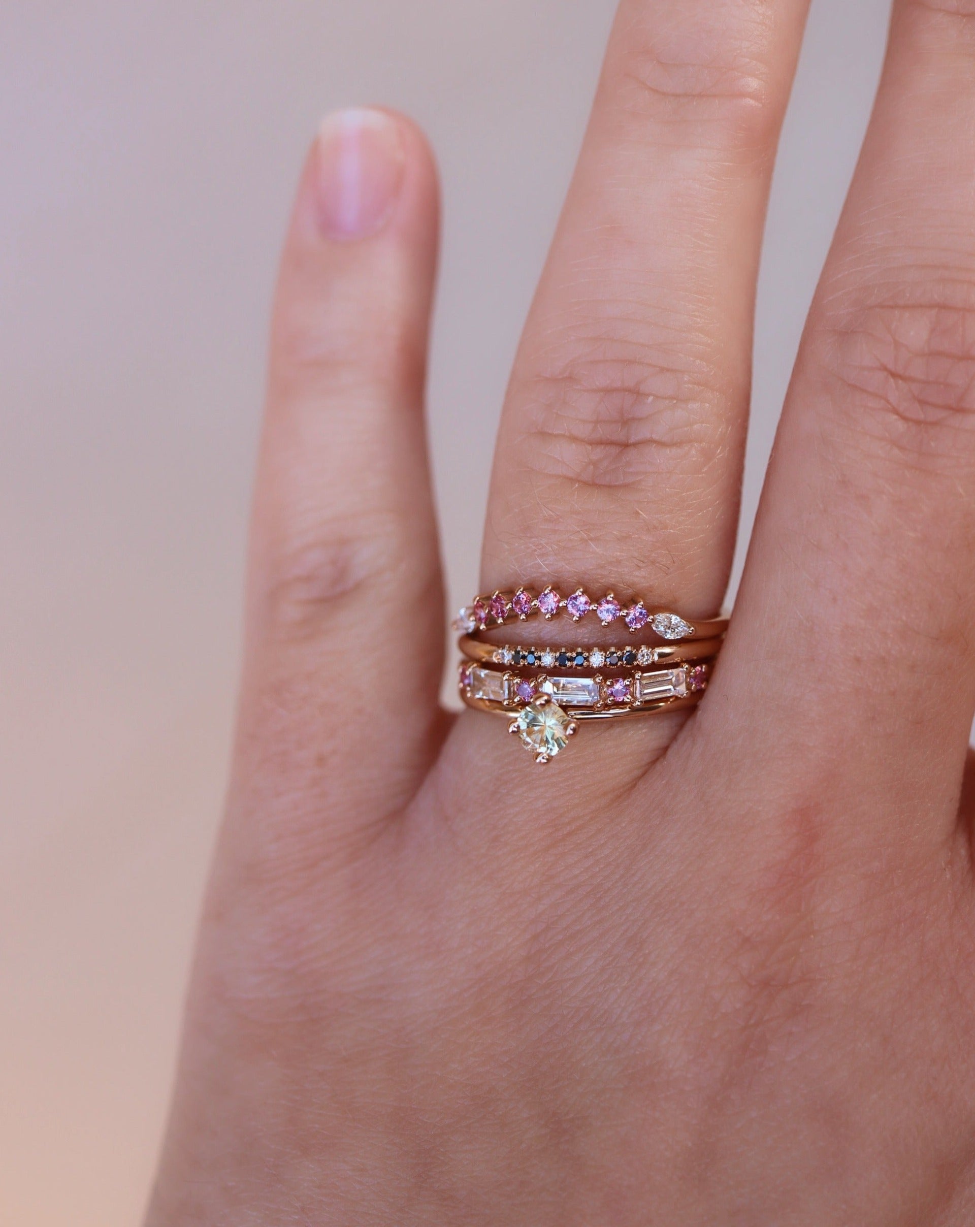 Sometimes, adding a pop of color to your jewelry can feel a bit daunting, but we want to show you how much fun it can be! Here we have used four different colors in the same stack, that look well-balanced and work perfectly together.
