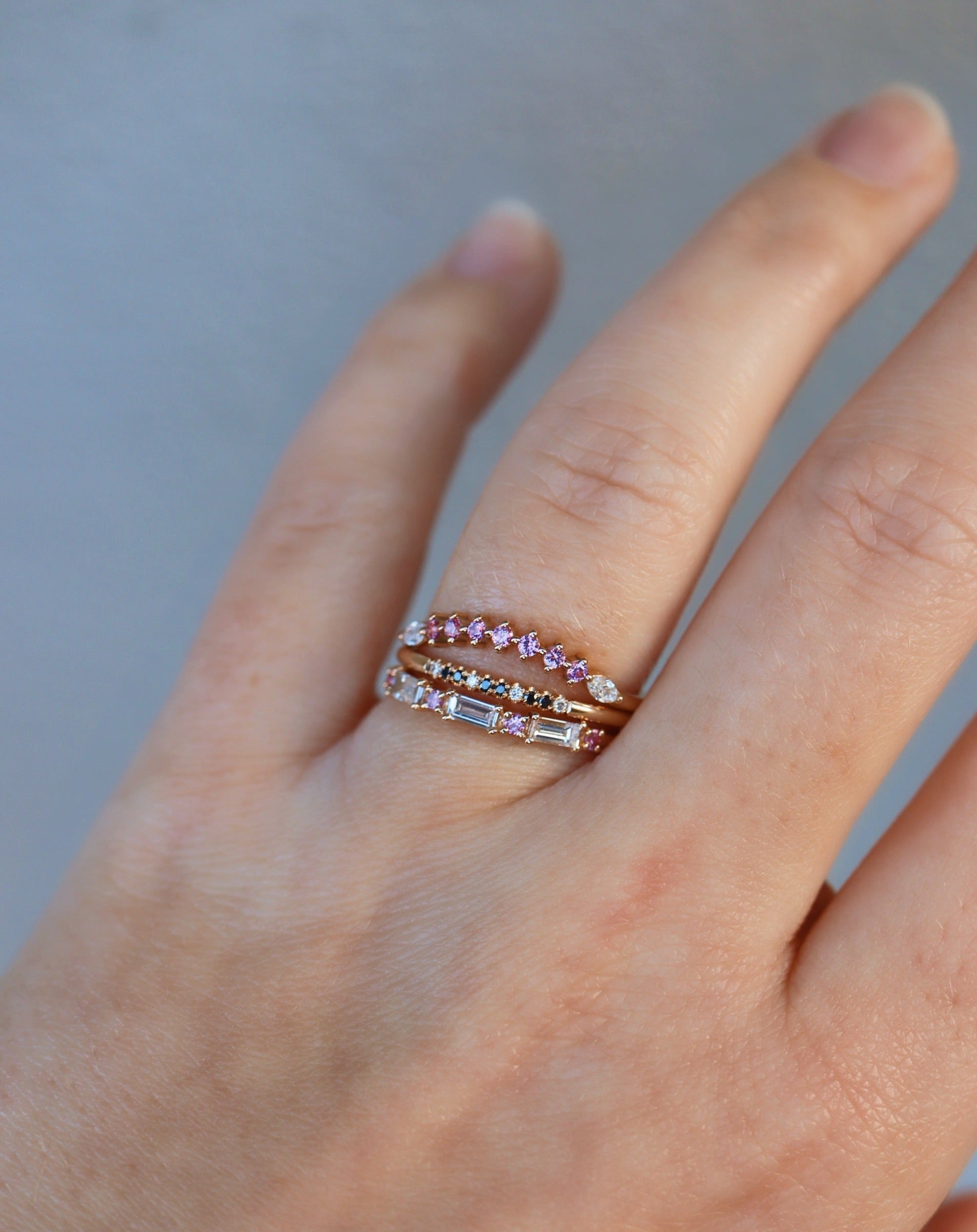 Thanks to its curved band, this ring is beautiful stacked with other rings. Add it to the top or bottom of any stack, or simply wear it alone on any finger.