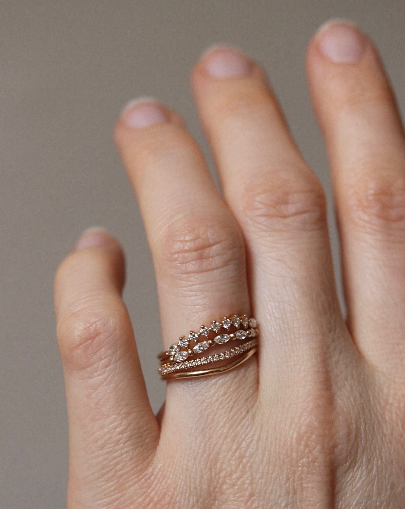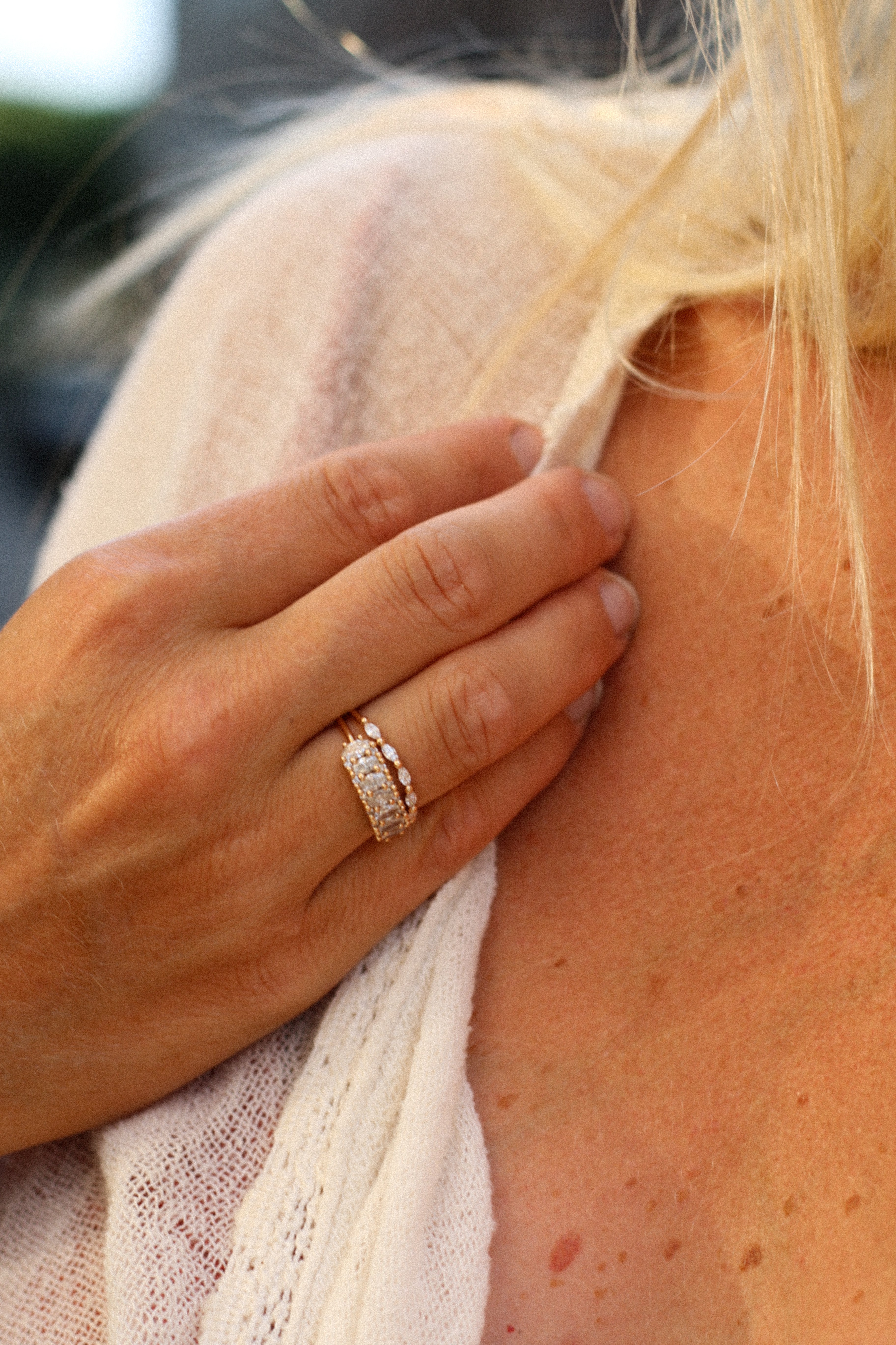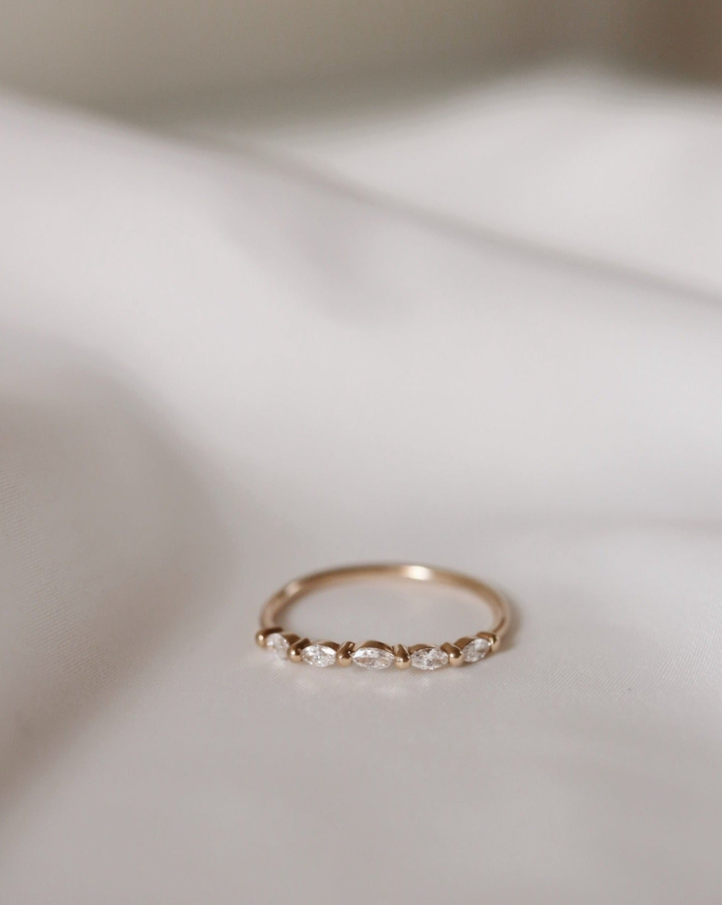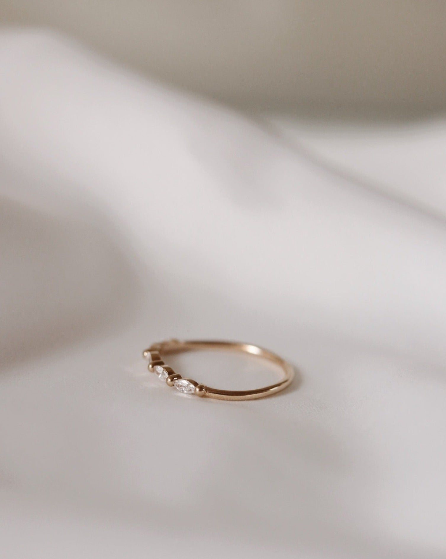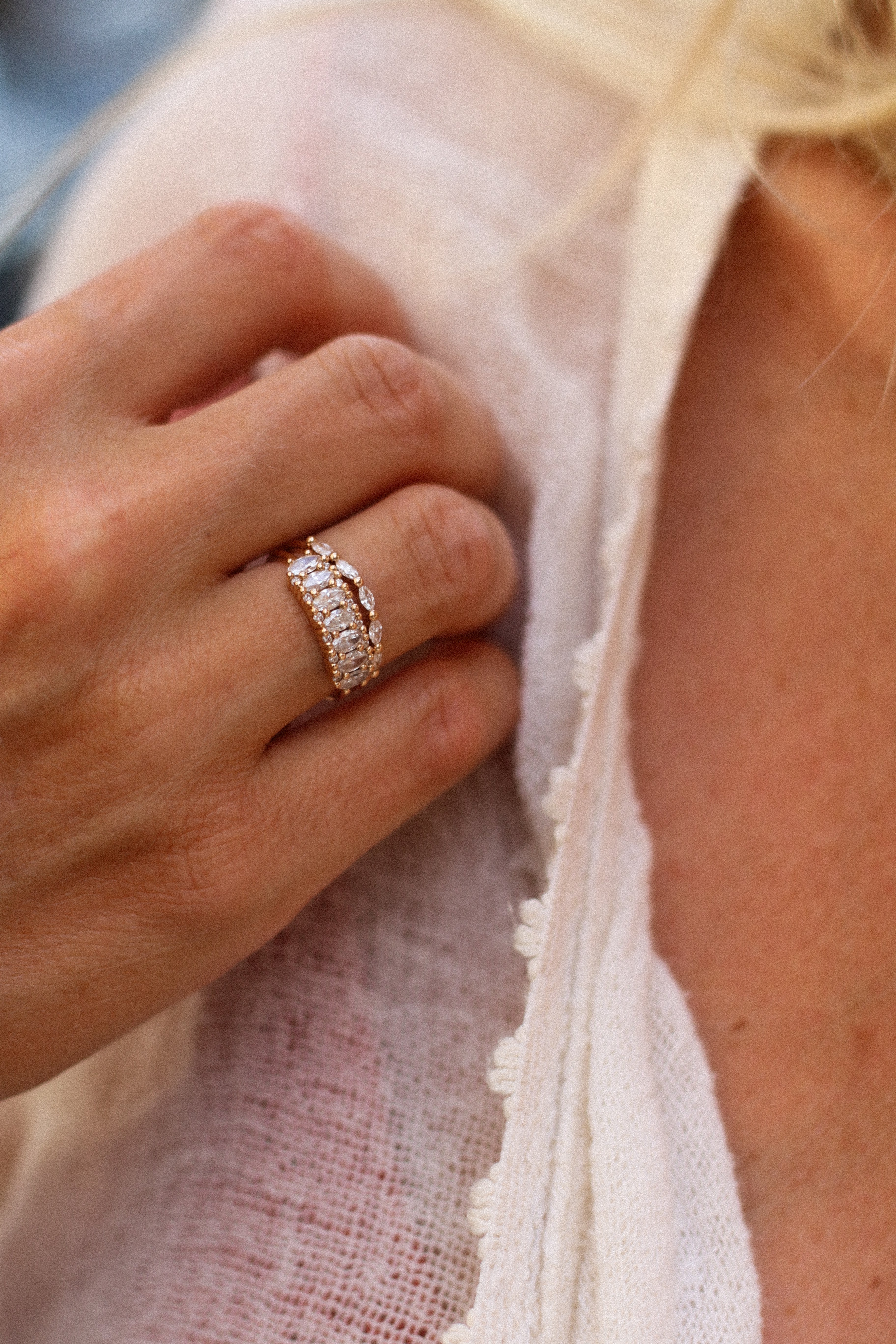 This ring was first designed as a wedding for a customer who had Edith Ring 0.47 CT as engagement ring. I was in the showroom during her meeting, and I was so happy when I overheard her and Helena discussing this design. Could we possibly make a curved band with Marquise diamonds? Of course! And here it is. Xx Cecilia, Designer