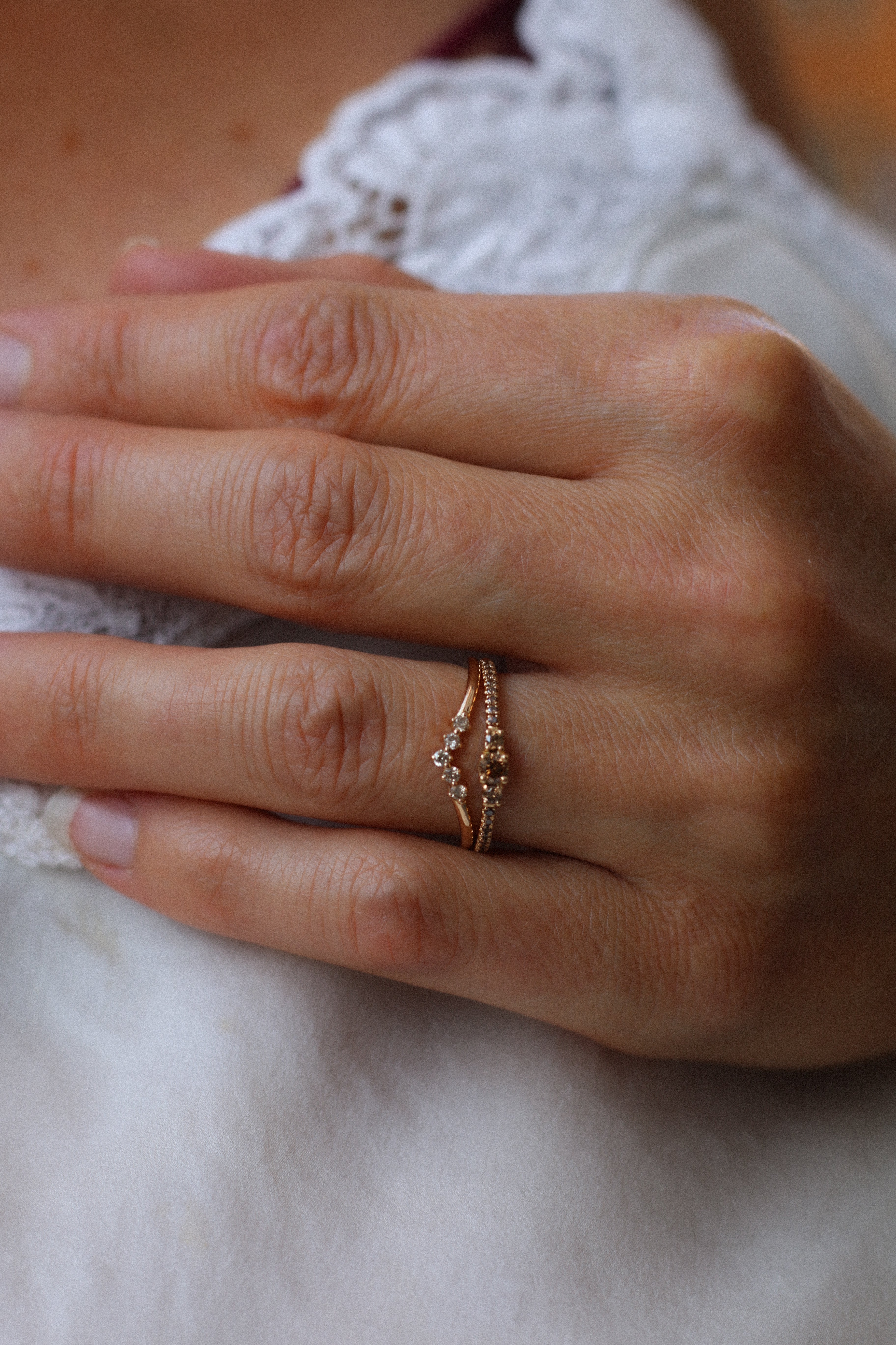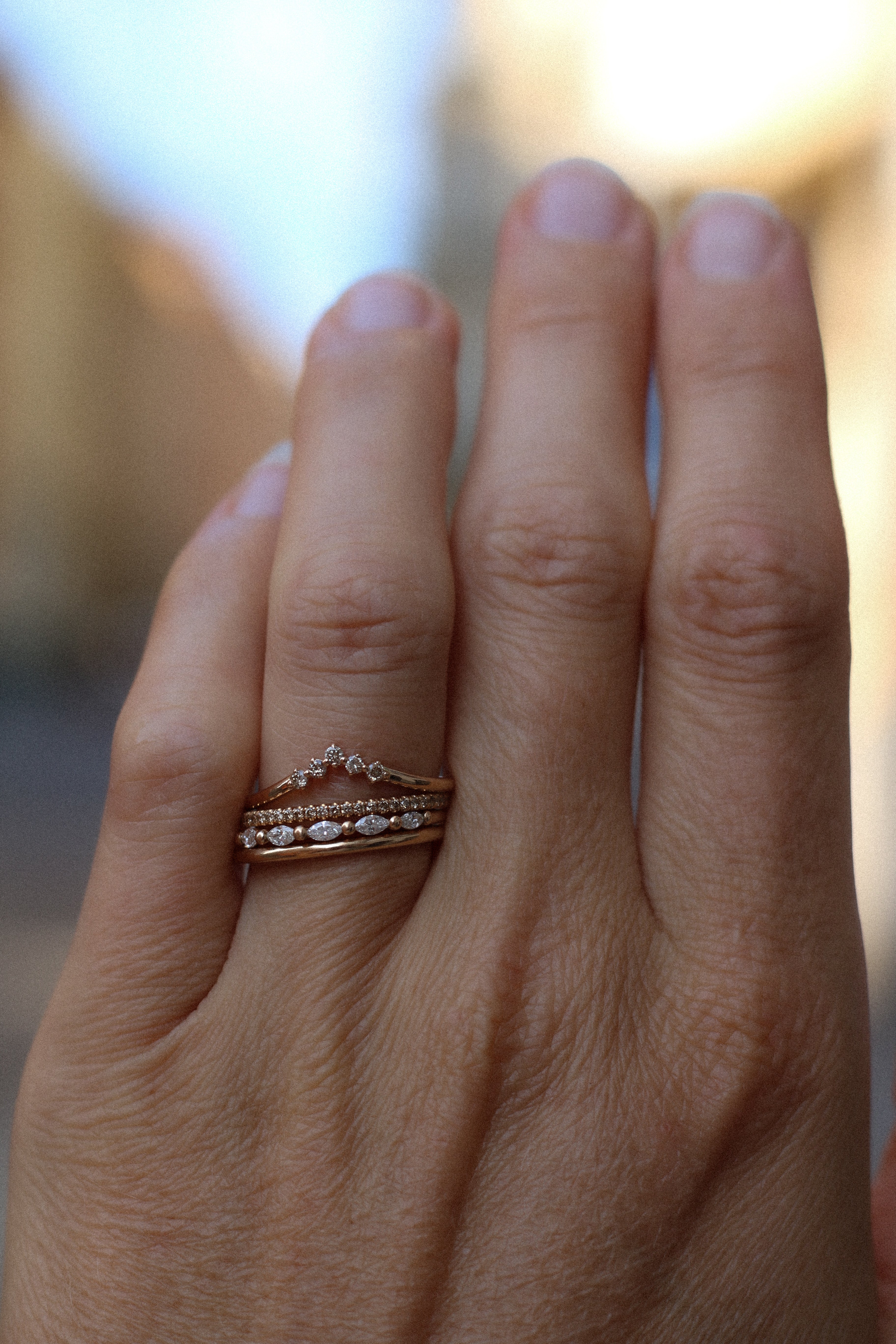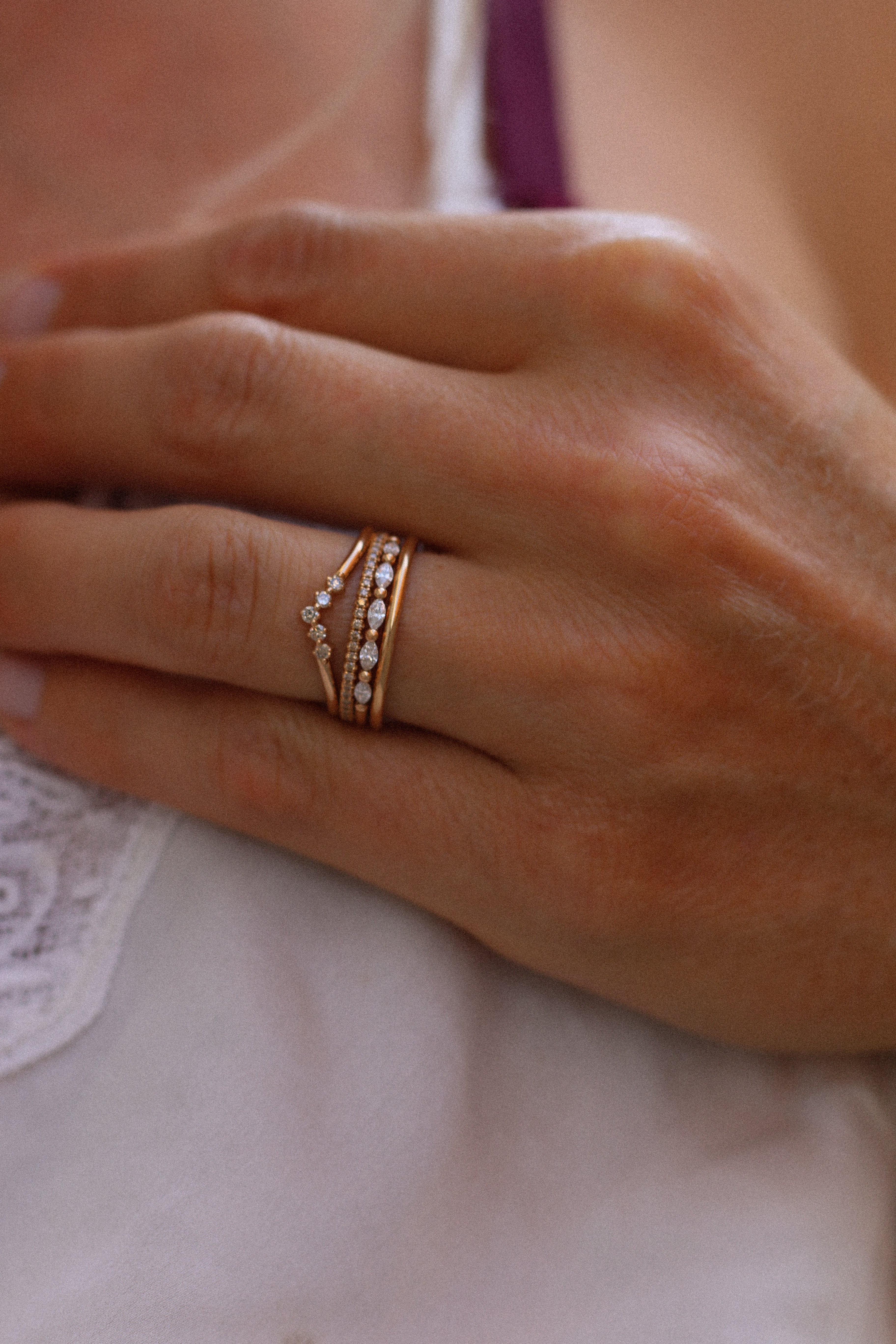 Många bär den ihop med Edith Ring eller Mini Elise Ring, medan andra bär den som avslut i en stack med raka ringar!