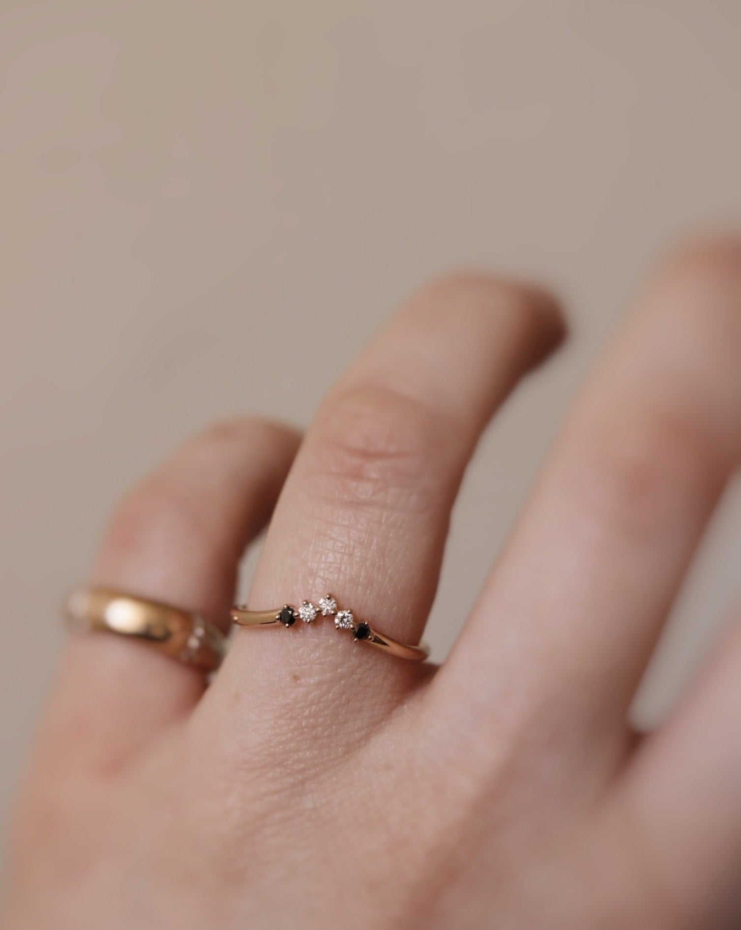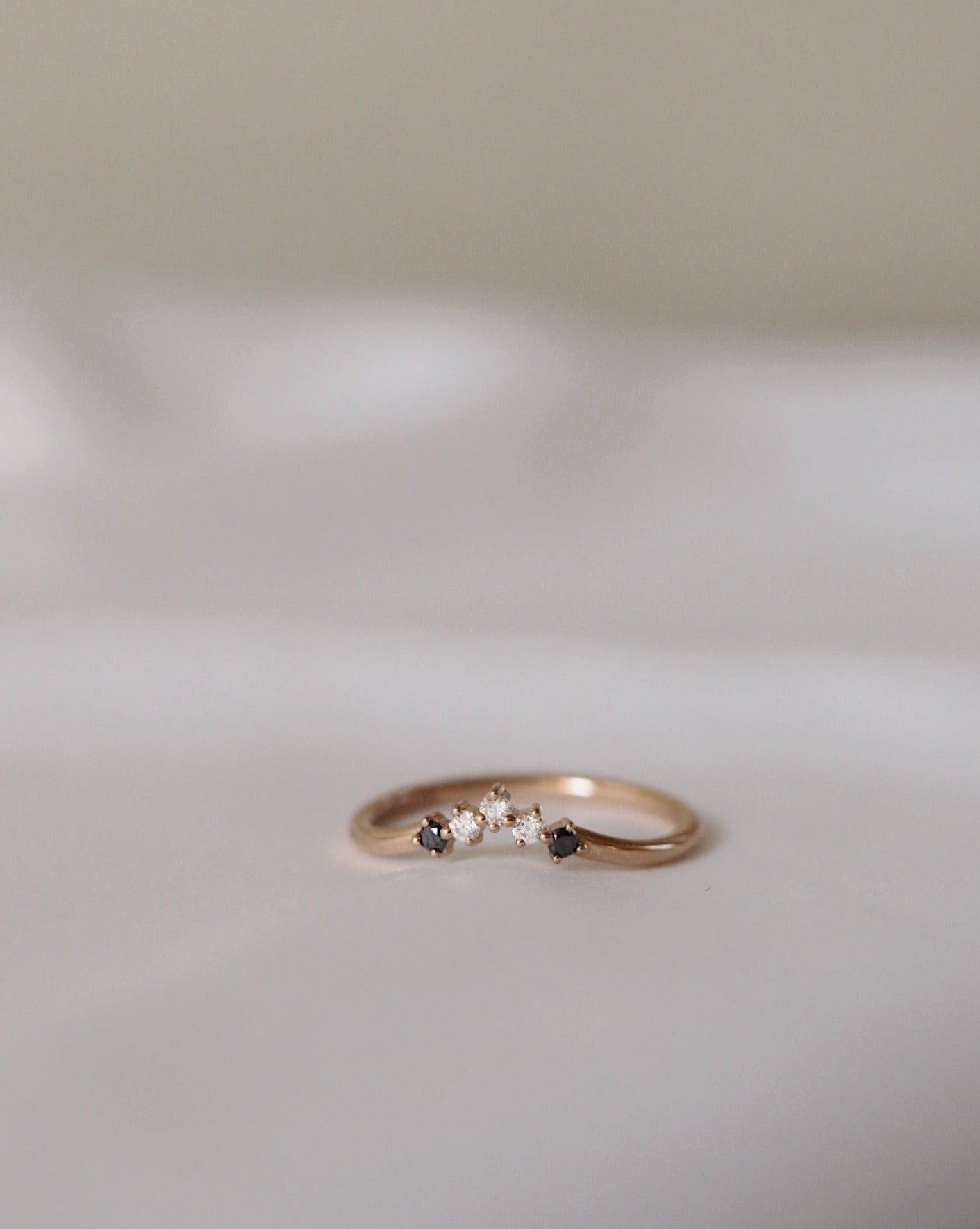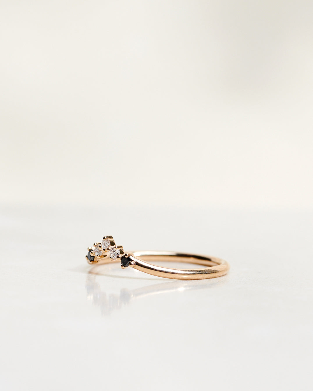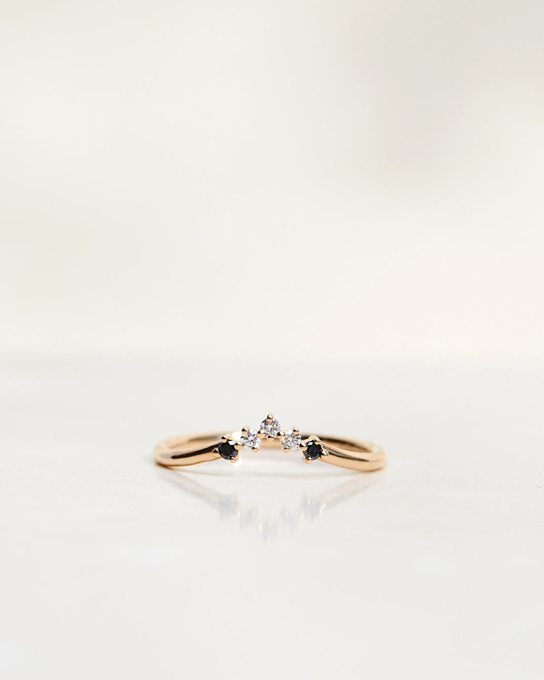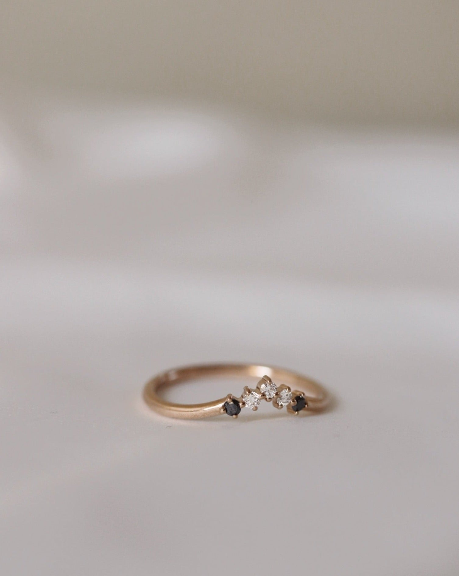 Five Diamond Triangle Ring med Svarta och Vita Diamanter