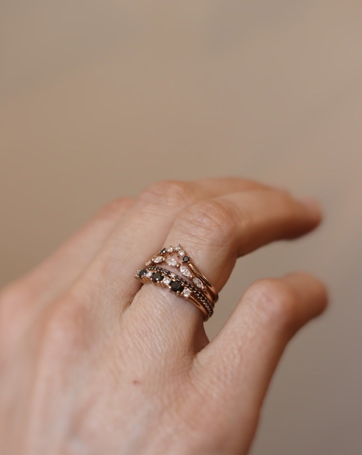 Denna versionen med svarta diamanter ger istället för en romantisk touch istället ett djup och en nonchalant coolhet till din stack.