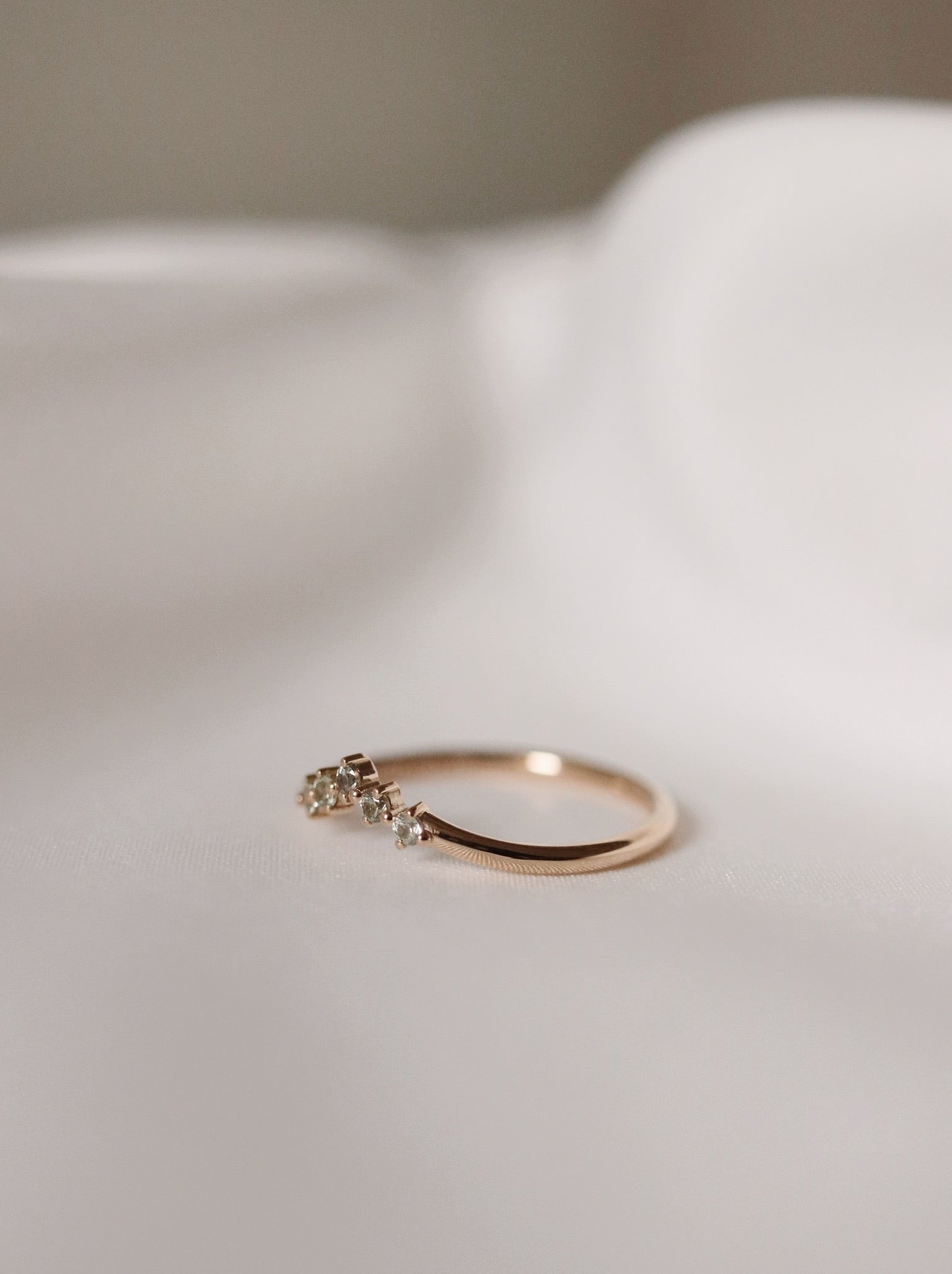 Många bär Five Diamond Triangle Ring ihop med Edith Ring eller Mini Elise Ring, medan andra bär den som avslut i en stack med raka ringar!