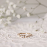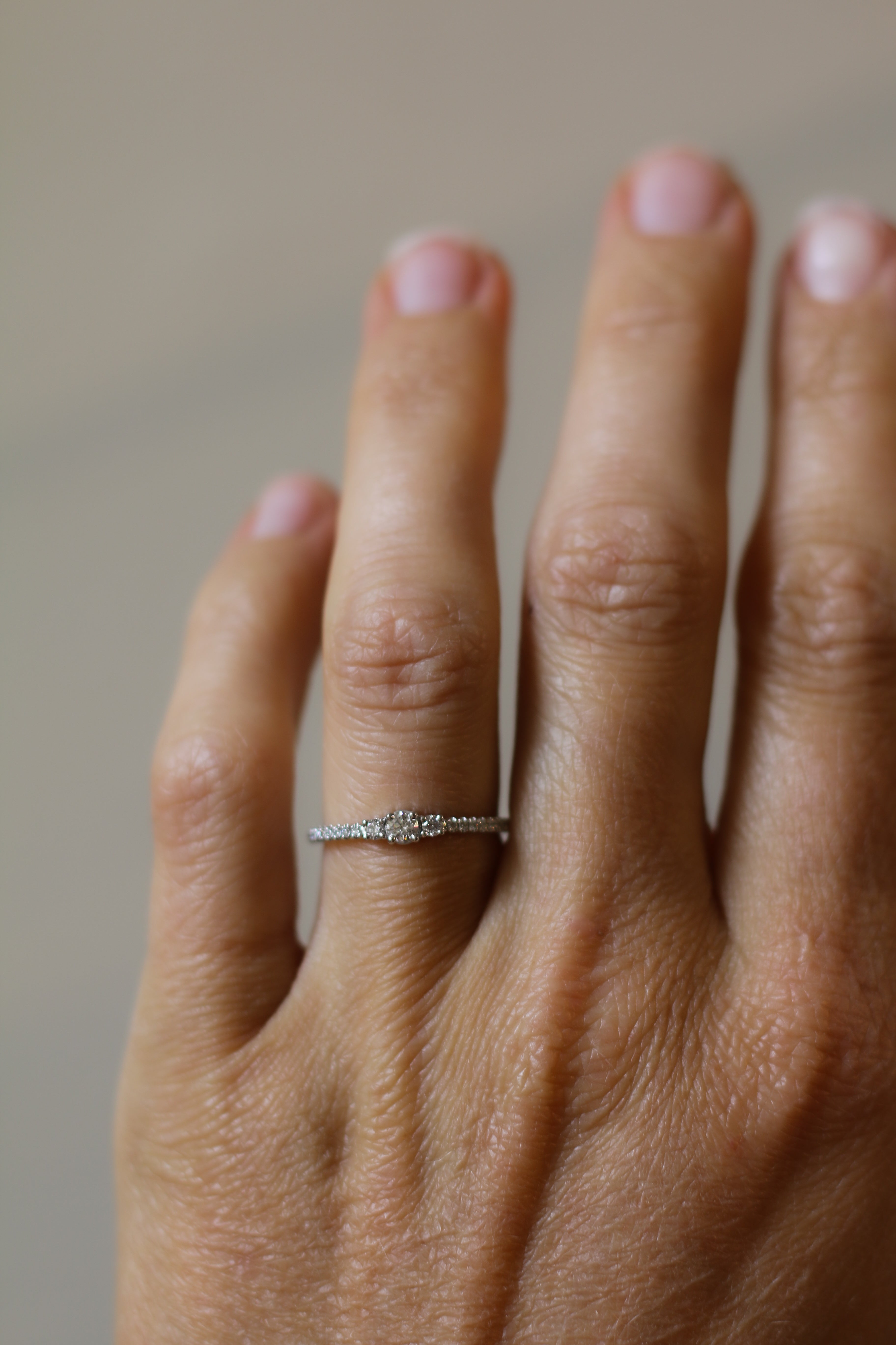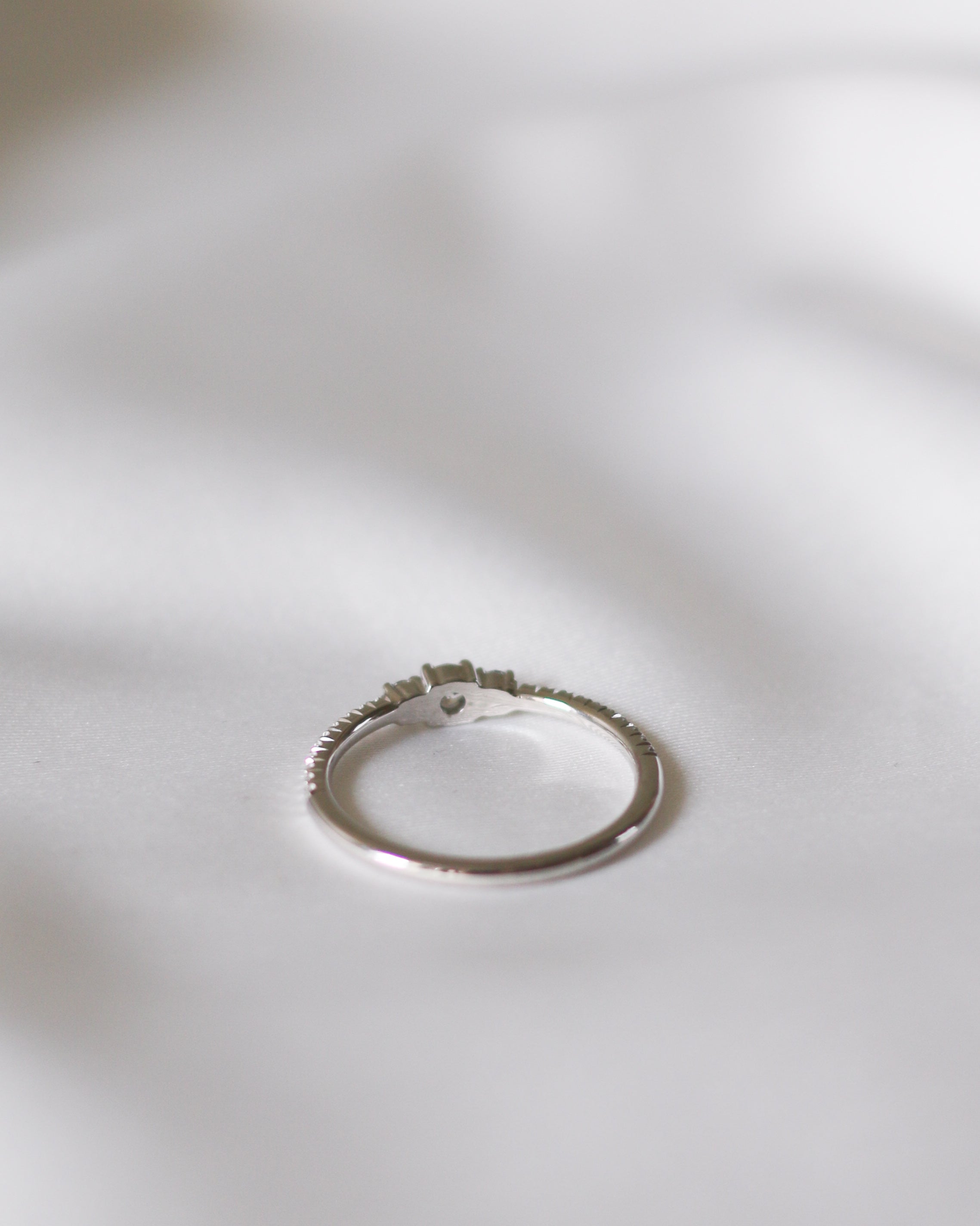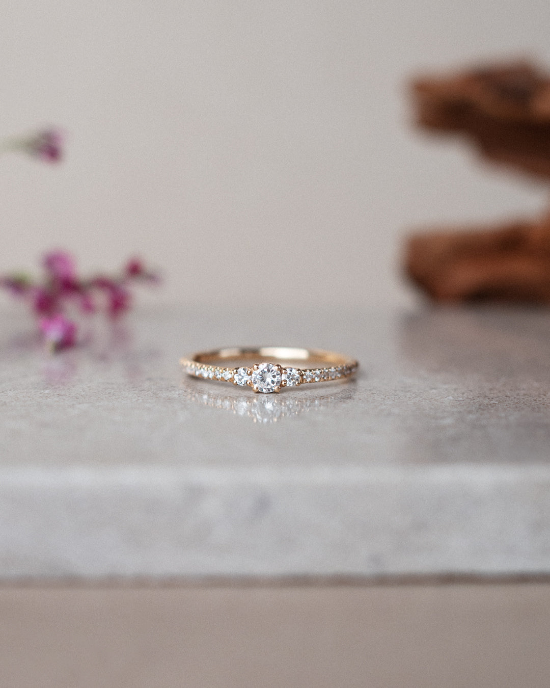 We like to describe Gilda as the classic (and perfect) three-stone ring, with a side of sparkle - in a mini format!