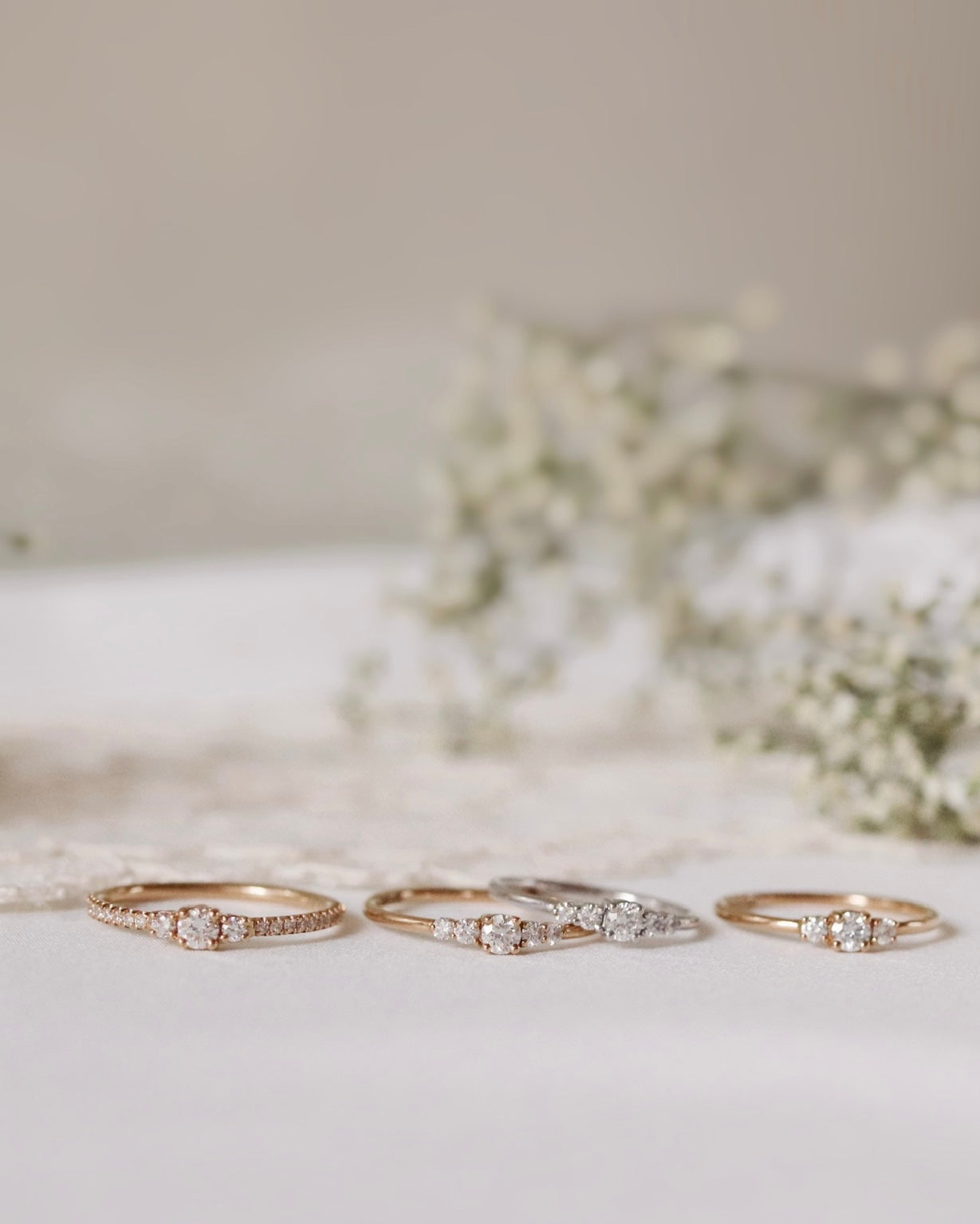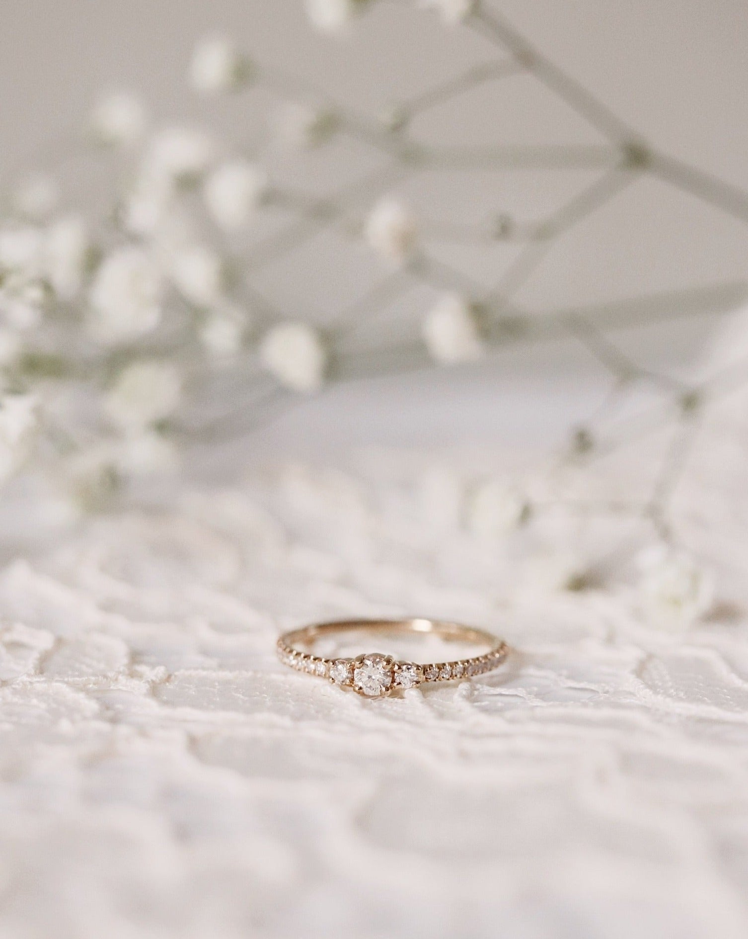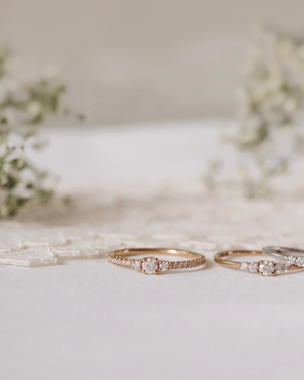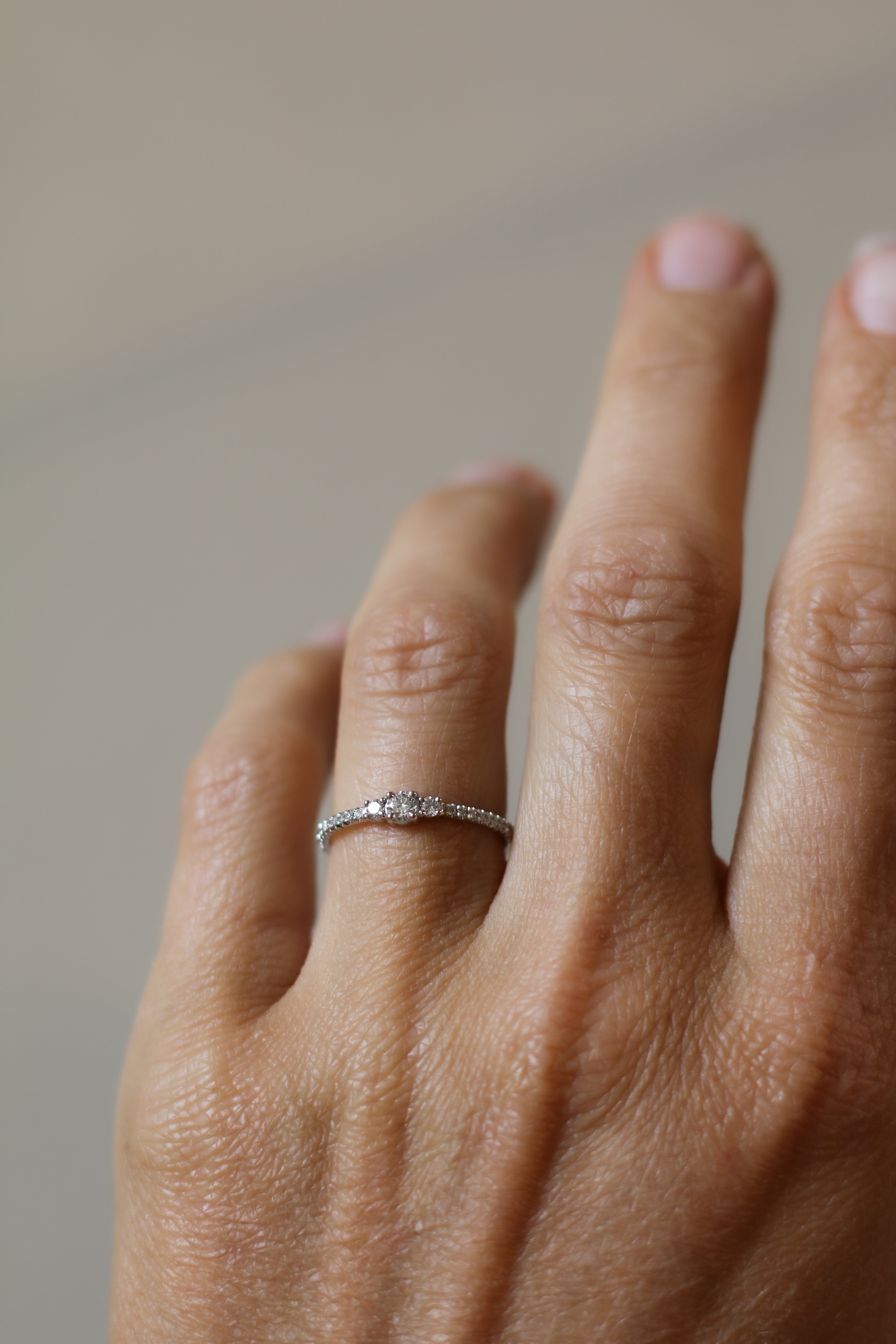 We like to describe Gilda as the classic (and perfect) three-stone ring, with a side of sparkle - in a mini format!
