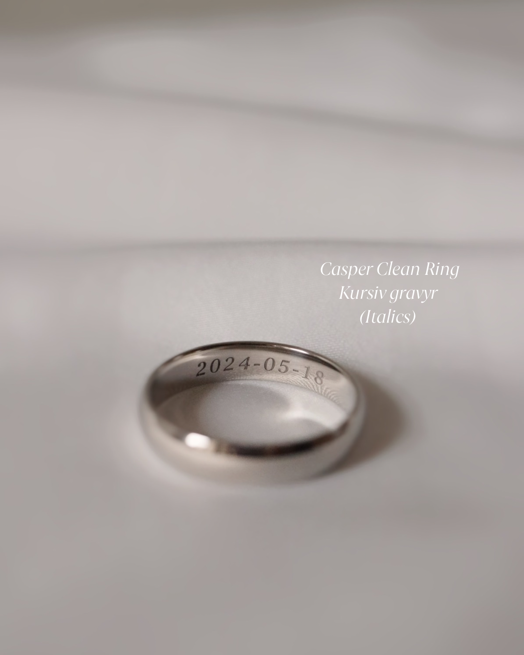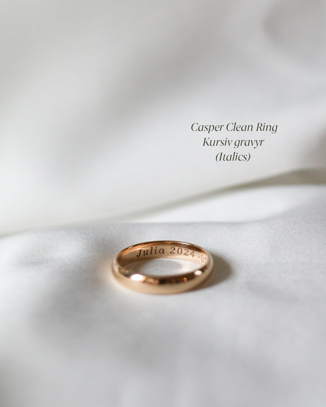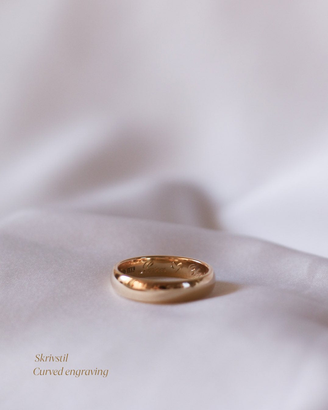 Skrivstil: den gravyrstil som ofta hittas i gamla guldringar som din morfar eller farfar bar. Skrivstil kan väljas i alla herr-ringar och i de dam-ringar som är bredare än 1,8 mm (som t.ex. Nonnas Dome Ring eller Classic Goldie)