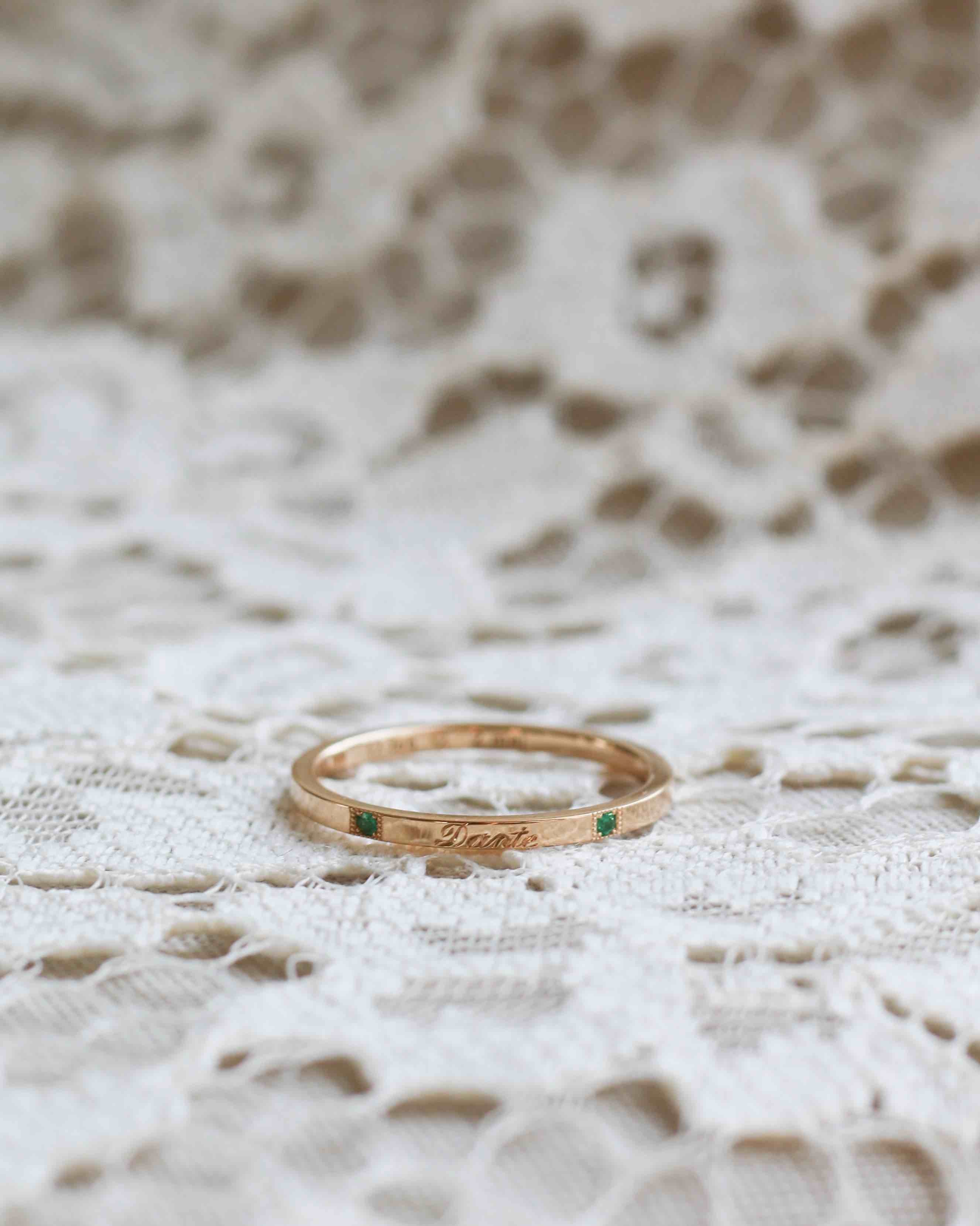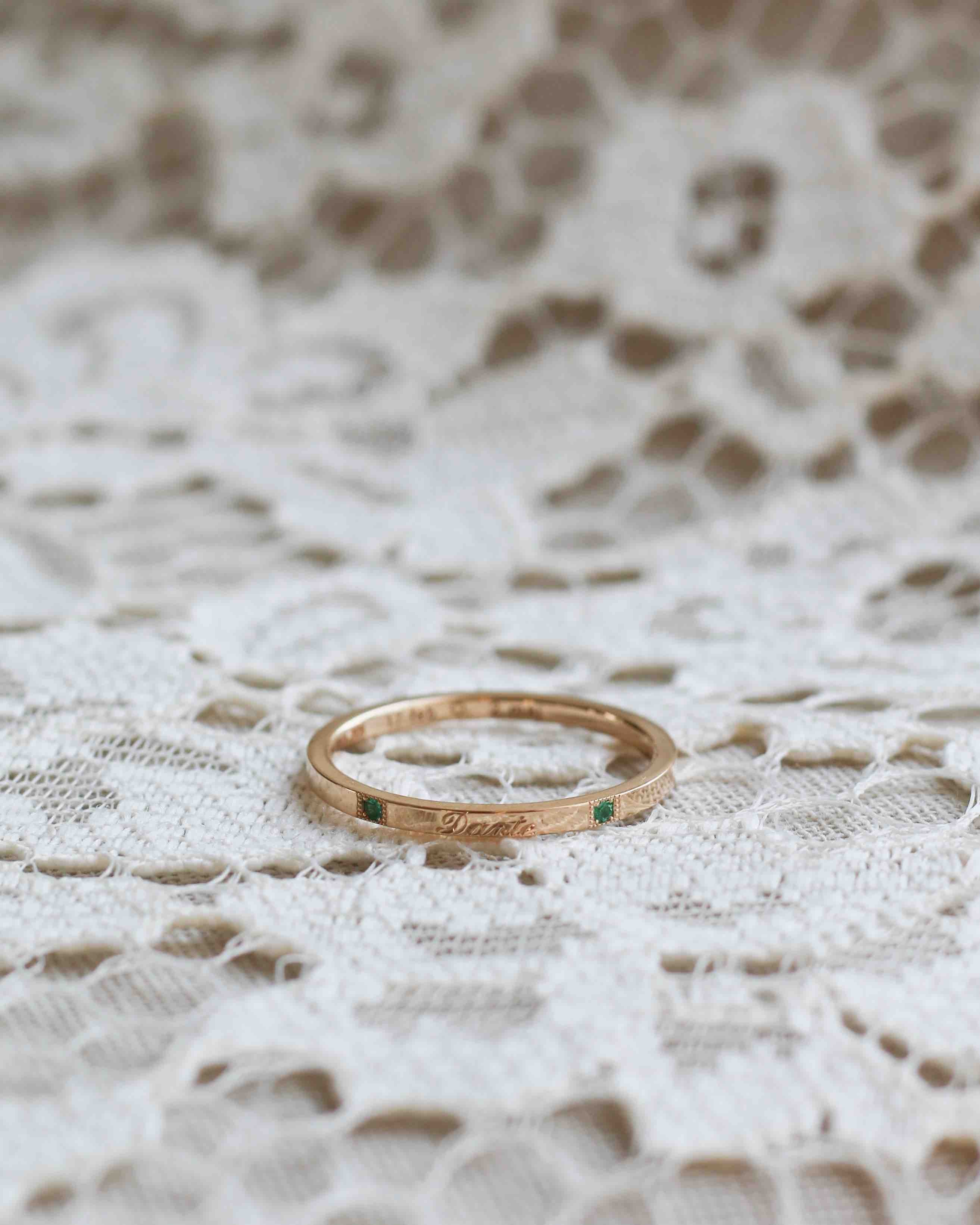 På bilderna ser du ringen till en kund vars son heter Dante och som föddes i maj! (Smaragd är maj månads månadssten.)