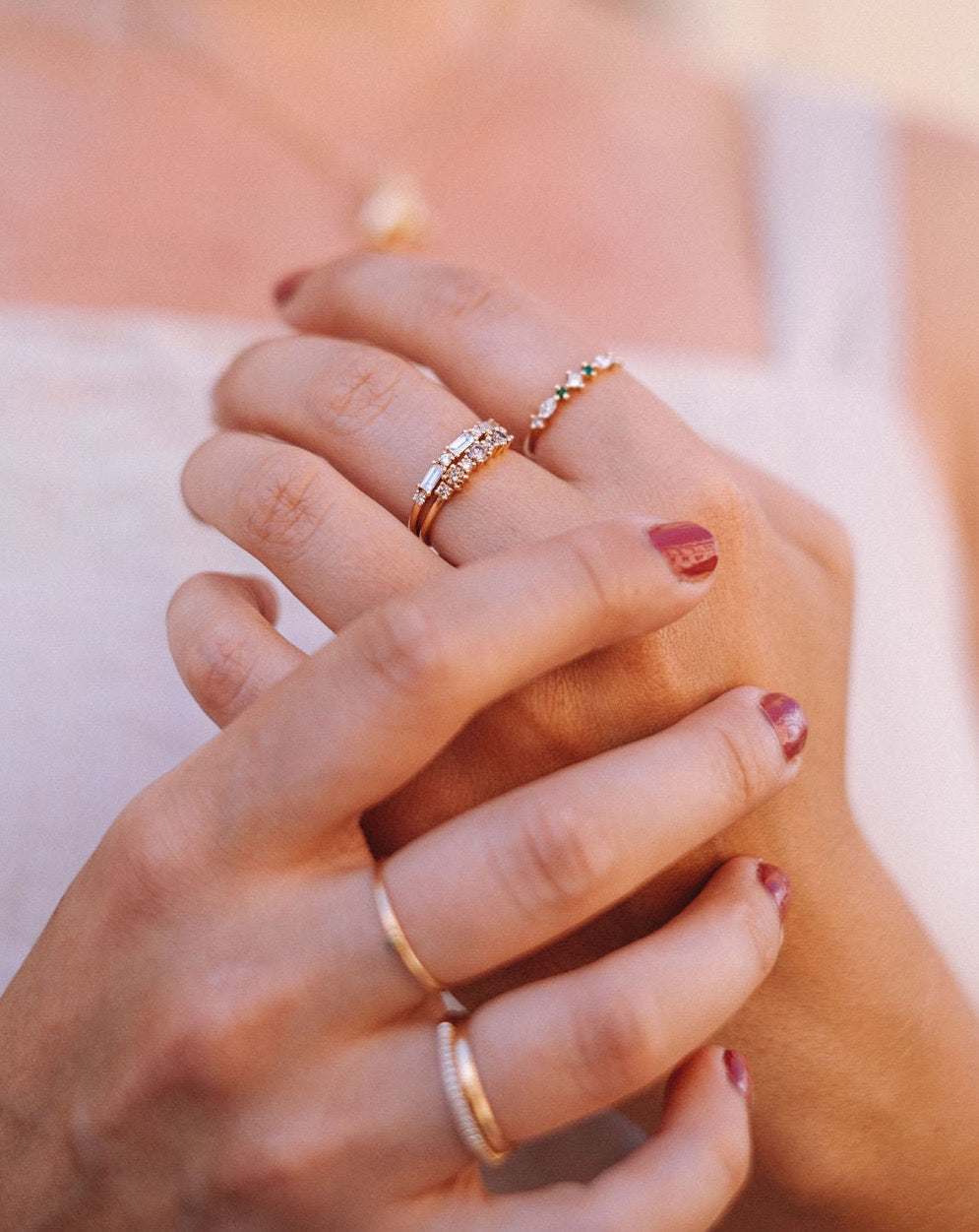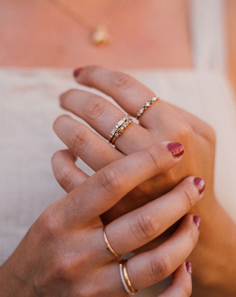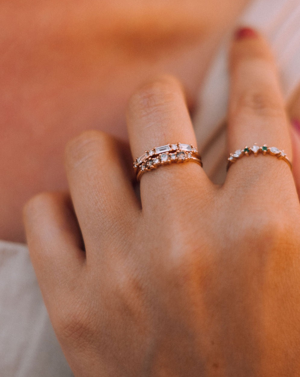 I just denna varianten har vi inspirerats av Therese Elgquists alldeles egna Hilda Ring, där två av diamanterna har bytts ut mot smaragder. Välj om du önskar fyra smaragder eller två som Thess i rullistan!