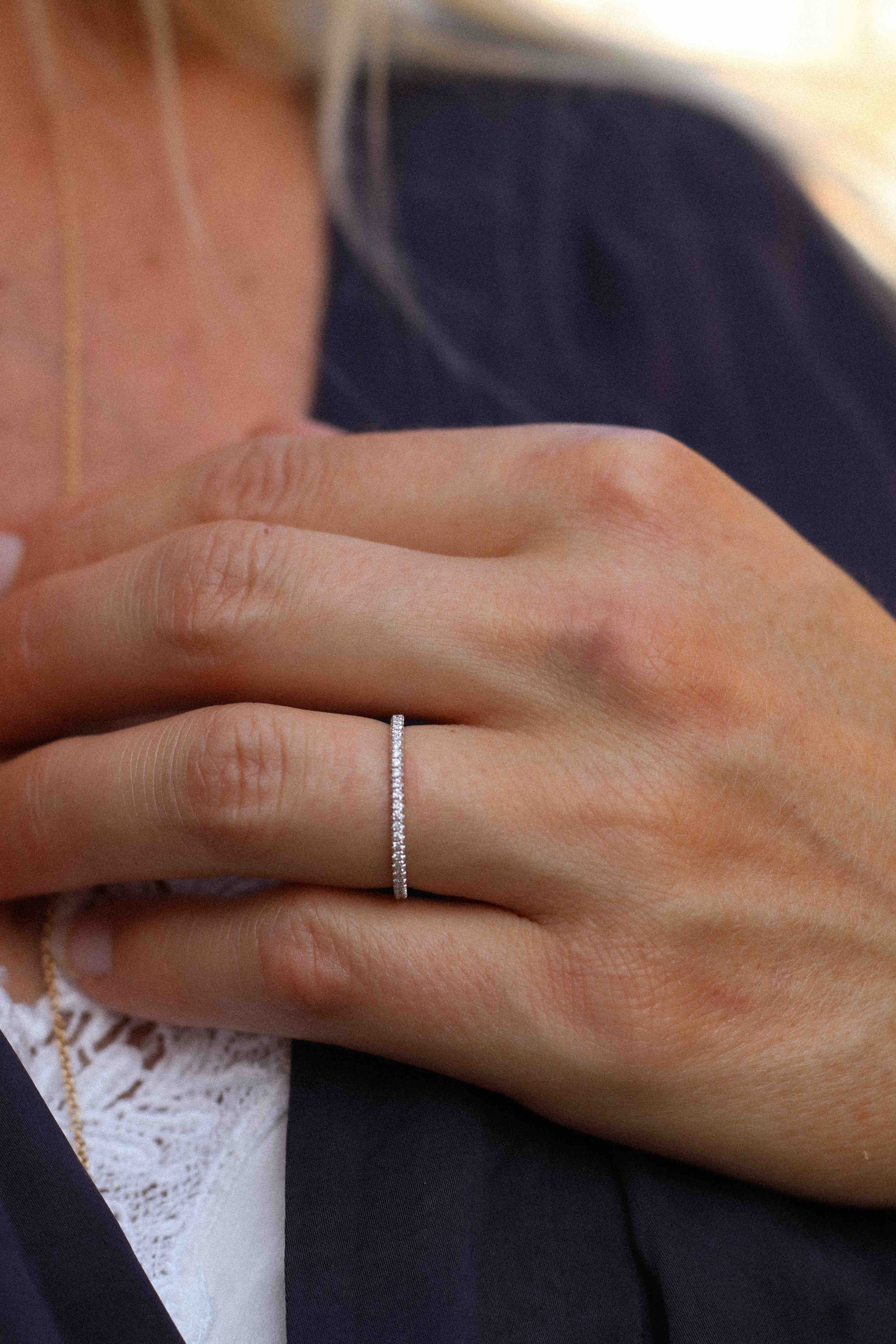 Jag älskar Jade Petite Ring och tycker det är den perfekta, nätta evighetsringen. Den är en så fin brygga mellan alla andra ringar du bär: Jade Petite tar aldrig över och är heller aldrig anonym. Ett glittrigt band som glimmar till! Jag tycker du ska investera i en med helt vita diamanter - och sedan minst en till i dina drömfärger. Jag bär minst en Jade Petite Ring i någon färg varje dag, oavsett vilka andra smycken jag bär för dagen! Xx Cecilia