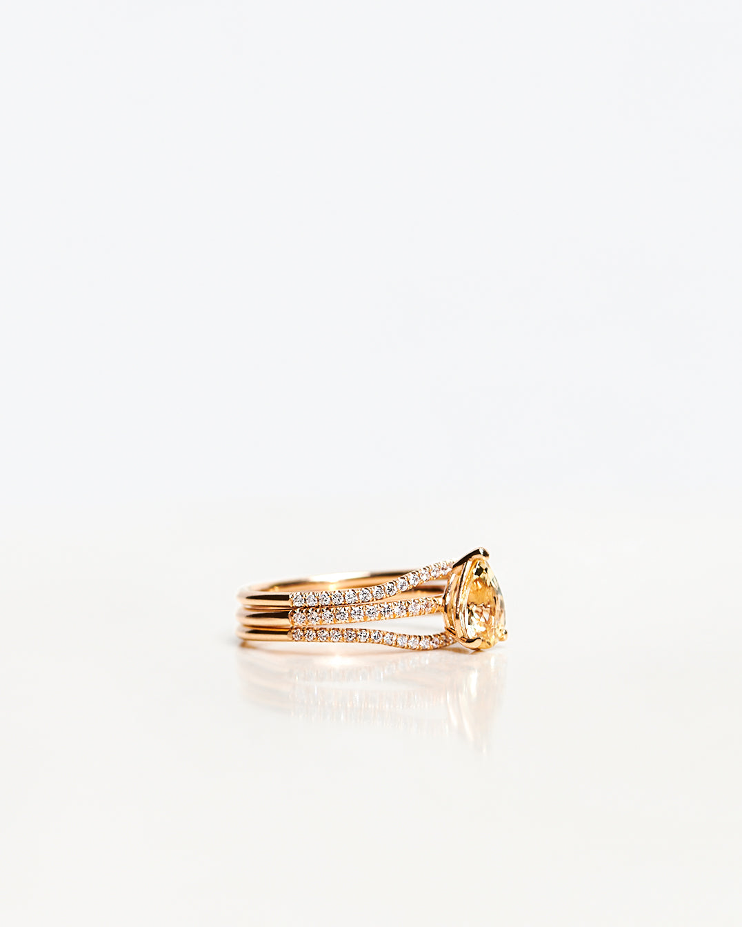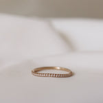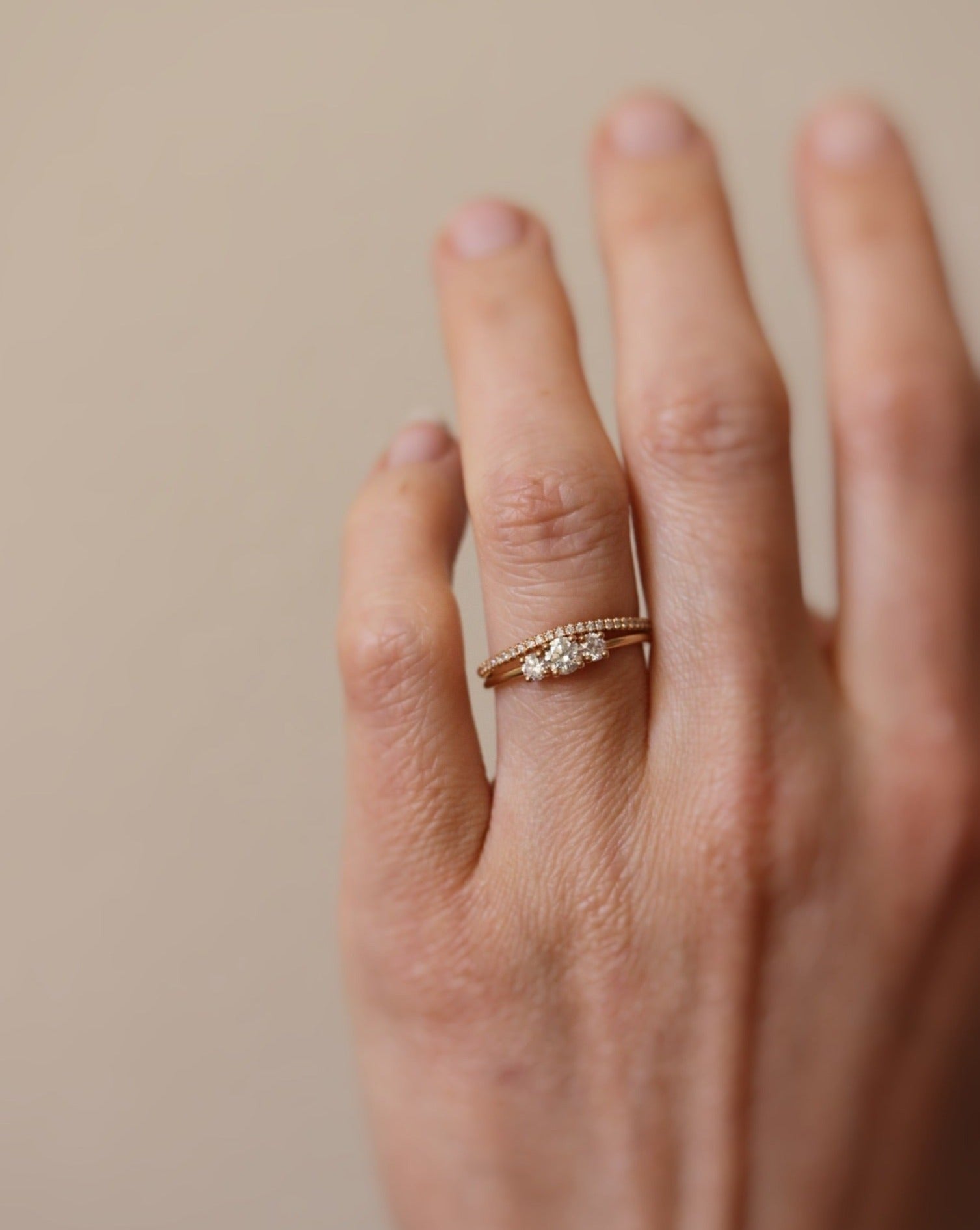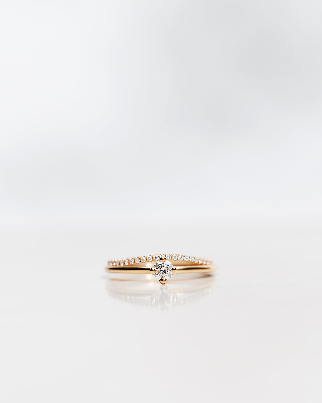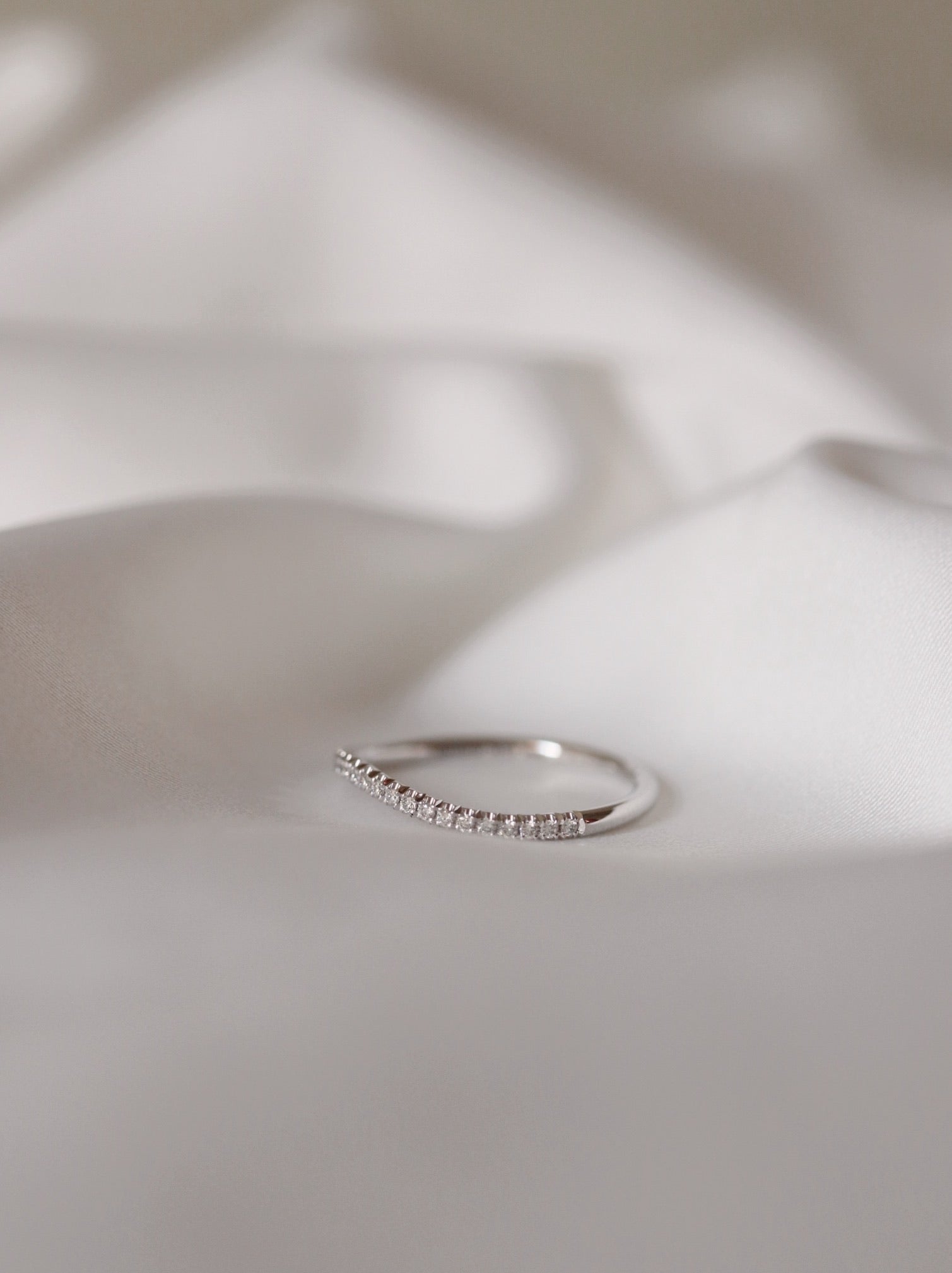 It acts as a beautiful curved band - a so called "diamond jacket" - to our side stone rings Edith, Elise, Greta and Gilda.