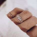 A beautiful ring that is designed to be worn on top or at the bottom of your ringstack.