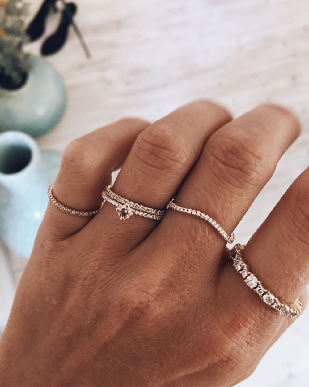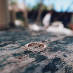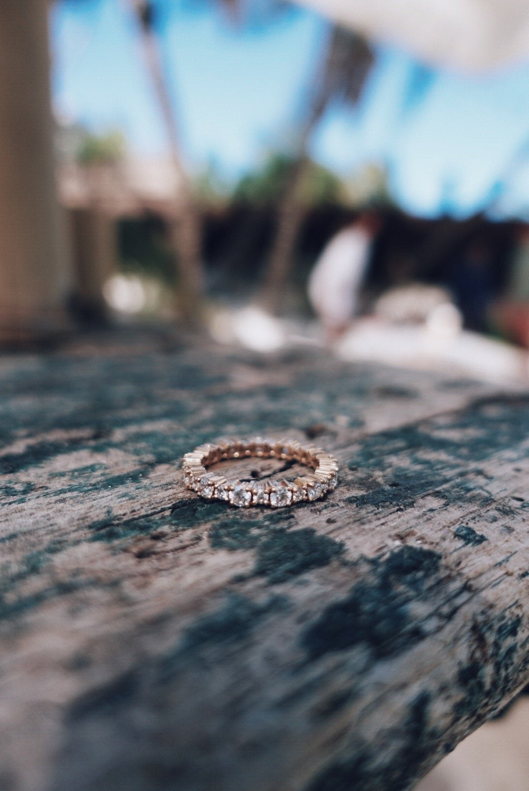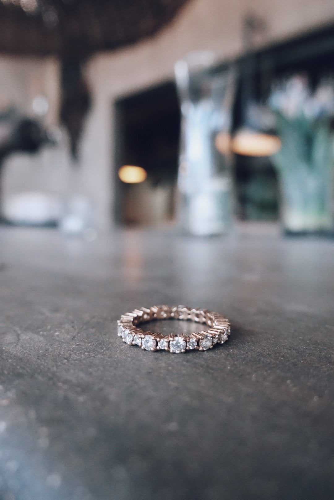 A classic eternity band - with diamonds all around ring - made in a unique, modern setting.