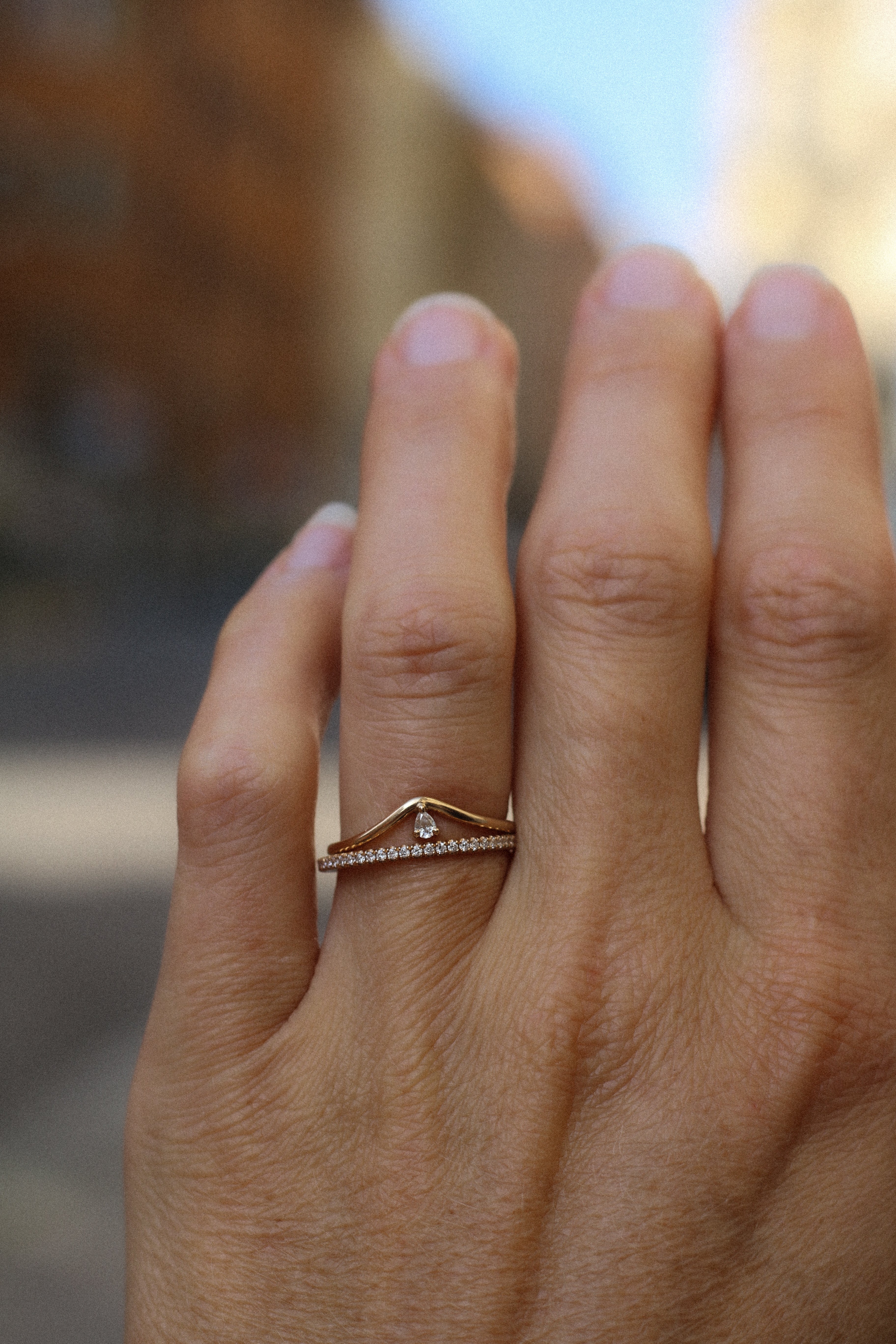 Ringbandet är böjt och anpassat för att bli ett vackert avslut på din ringstack.