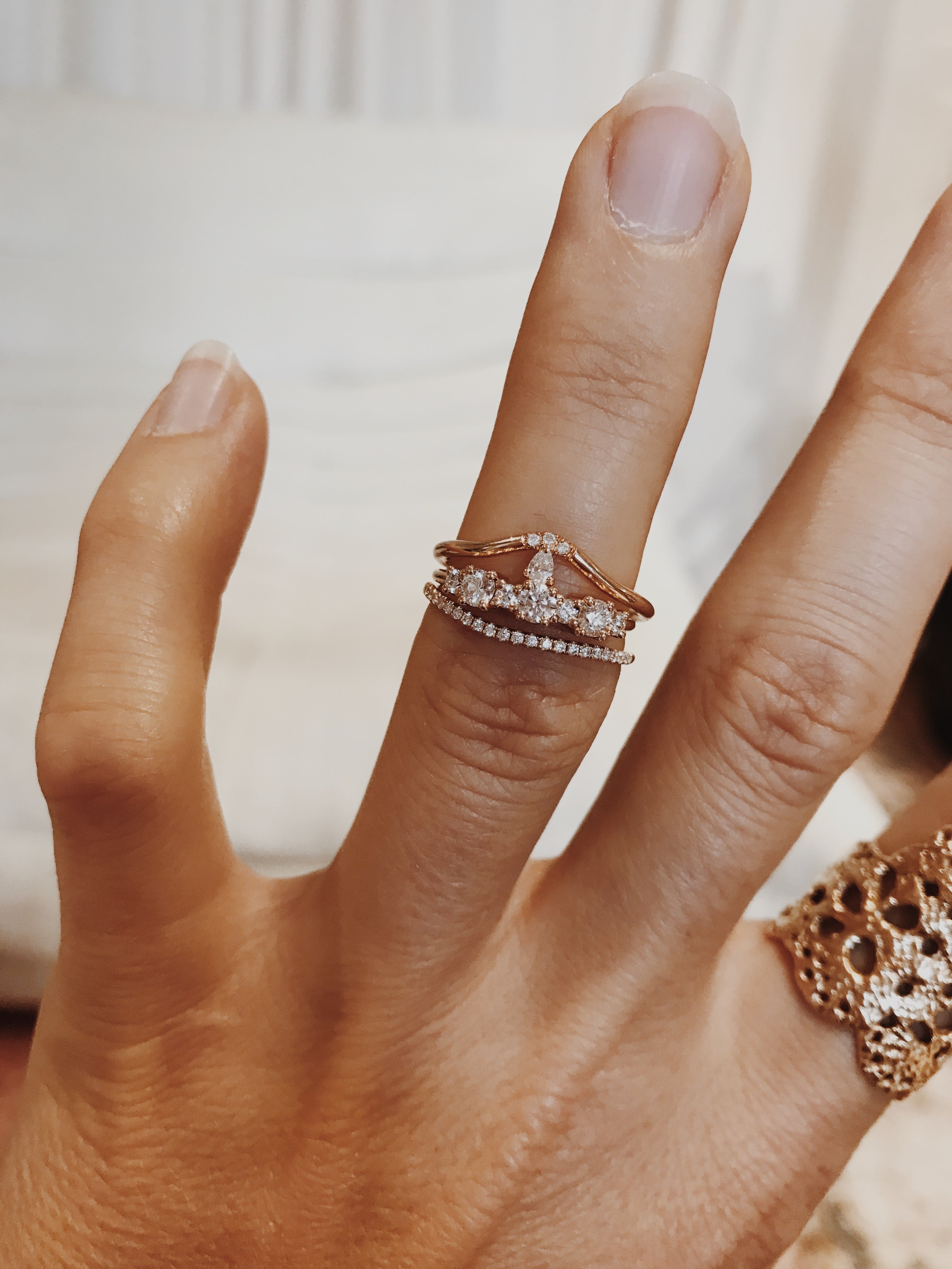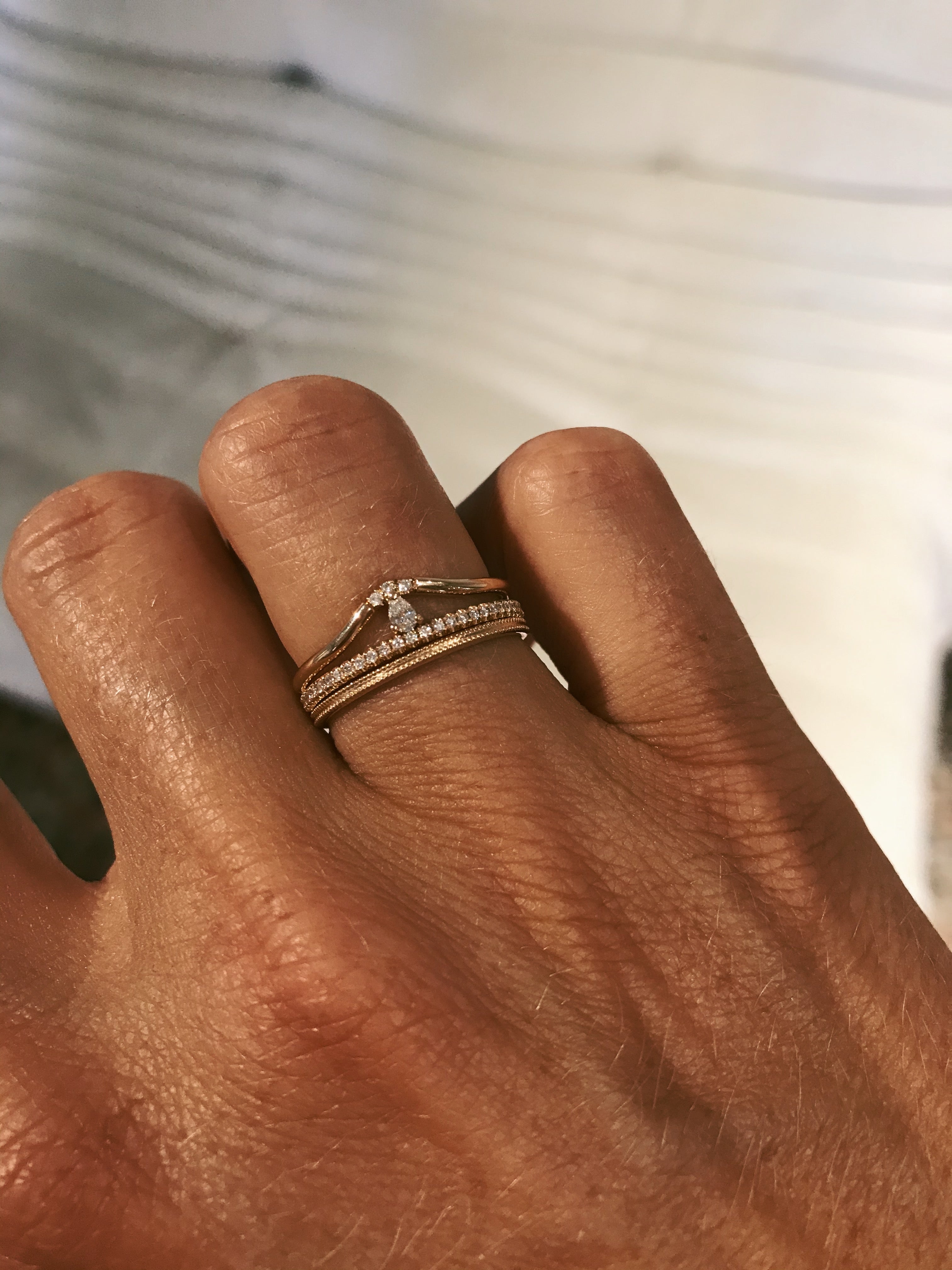 A lovely, delicate ring that is absolutely magic on top of a stack!
