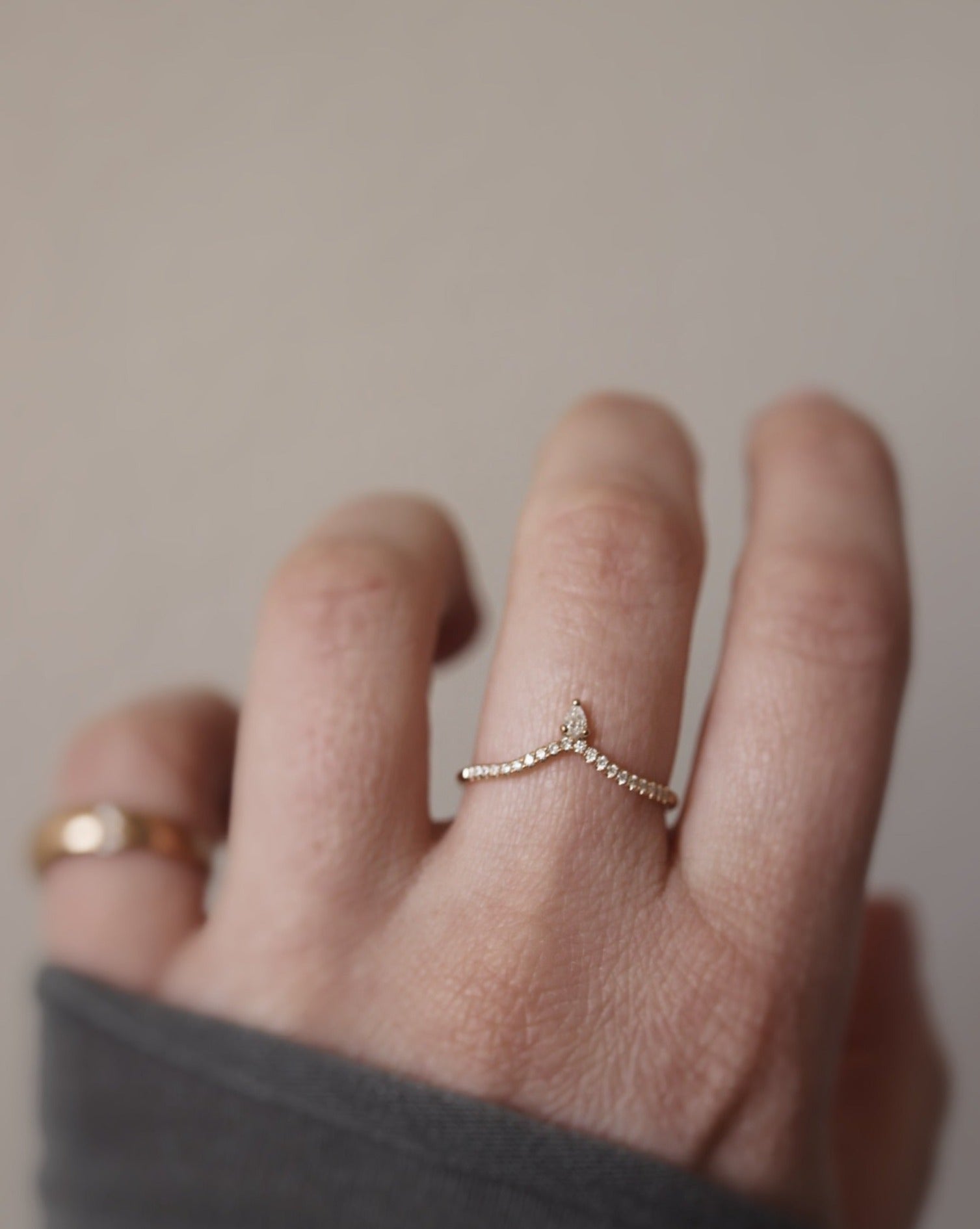 Lily was one of the first curved bands I ever designed - we launched it around 2016-2017. I still love it, and it still fits the same purpose: to be the perfect finisher in the top or bottom of any stack. The fantastic thing with a curved band is that it can be stacked with all other ring styles - be it cluster rings, side stone rings, eternity bands or solitaires! Xx Cecilia
