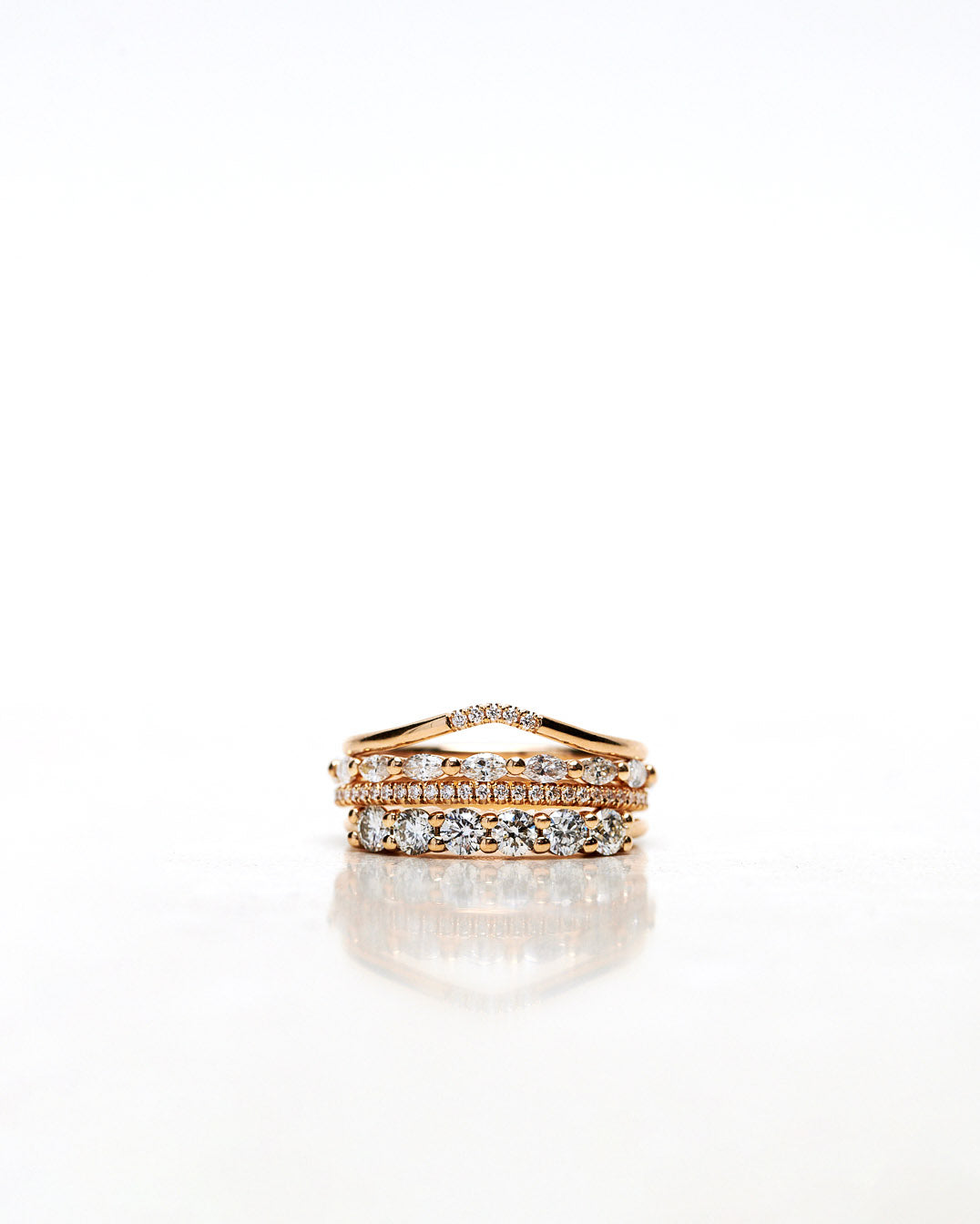 Your ring will have 14 or 15 diamonds (0.70-0.75 CT), depending on your ring size.