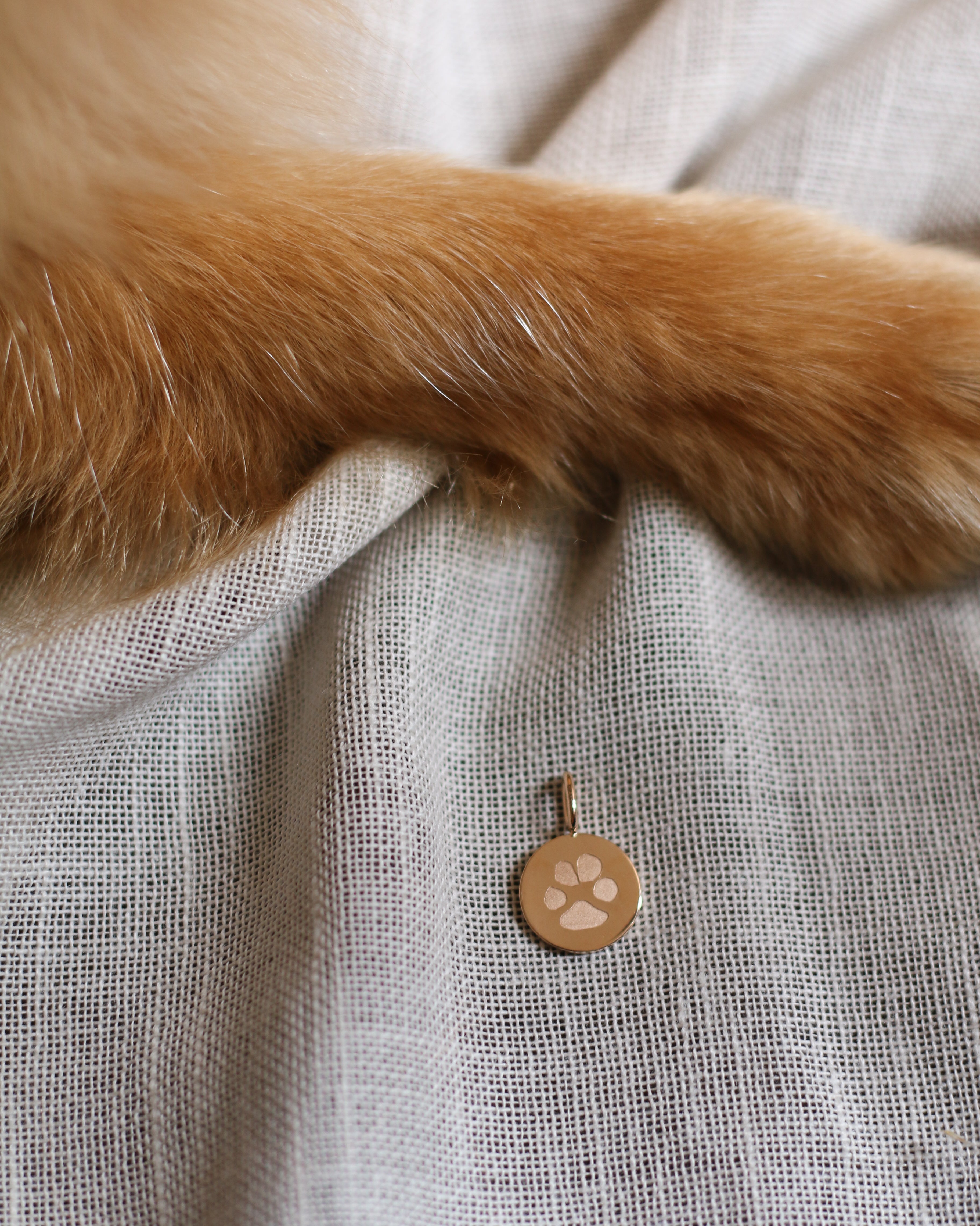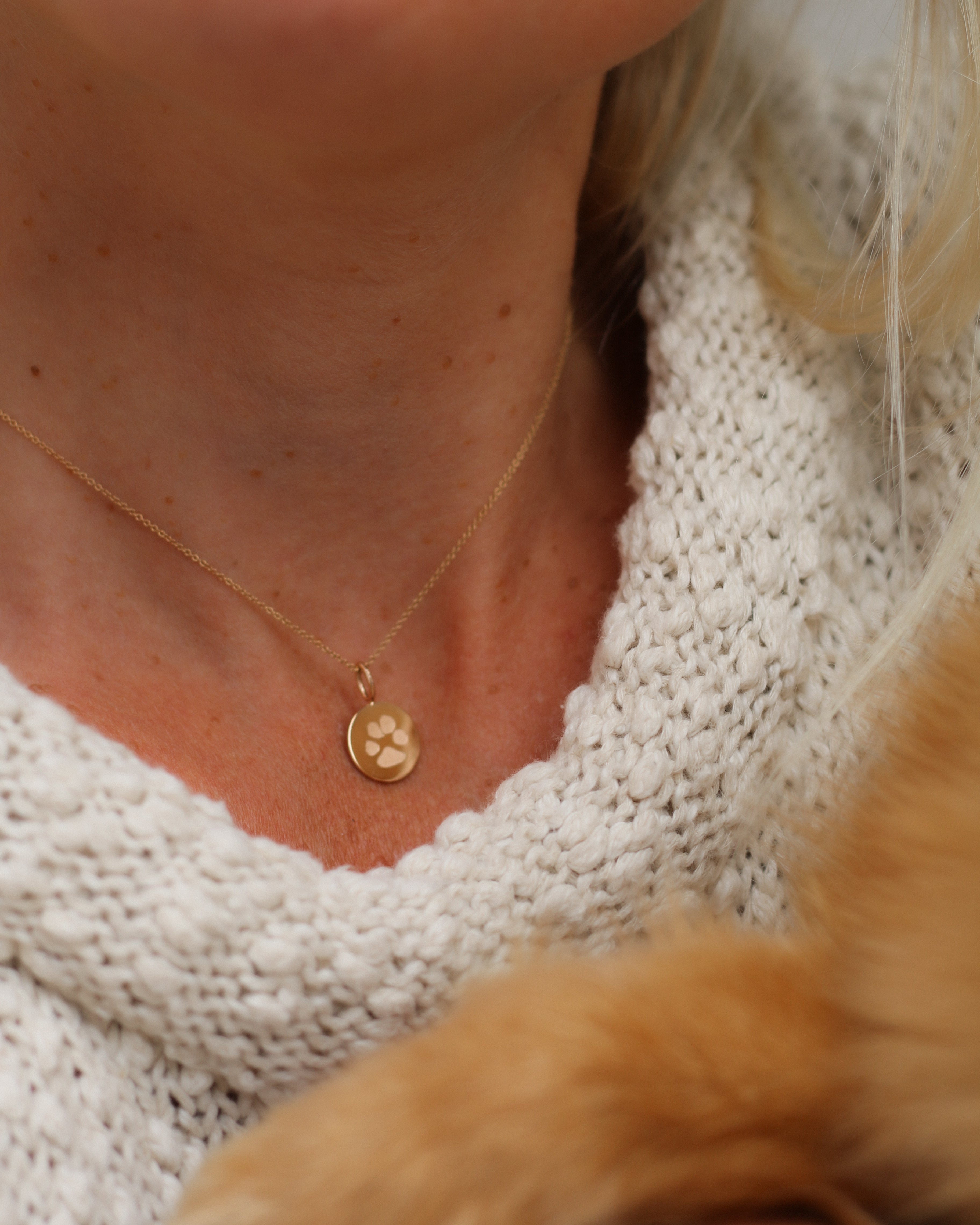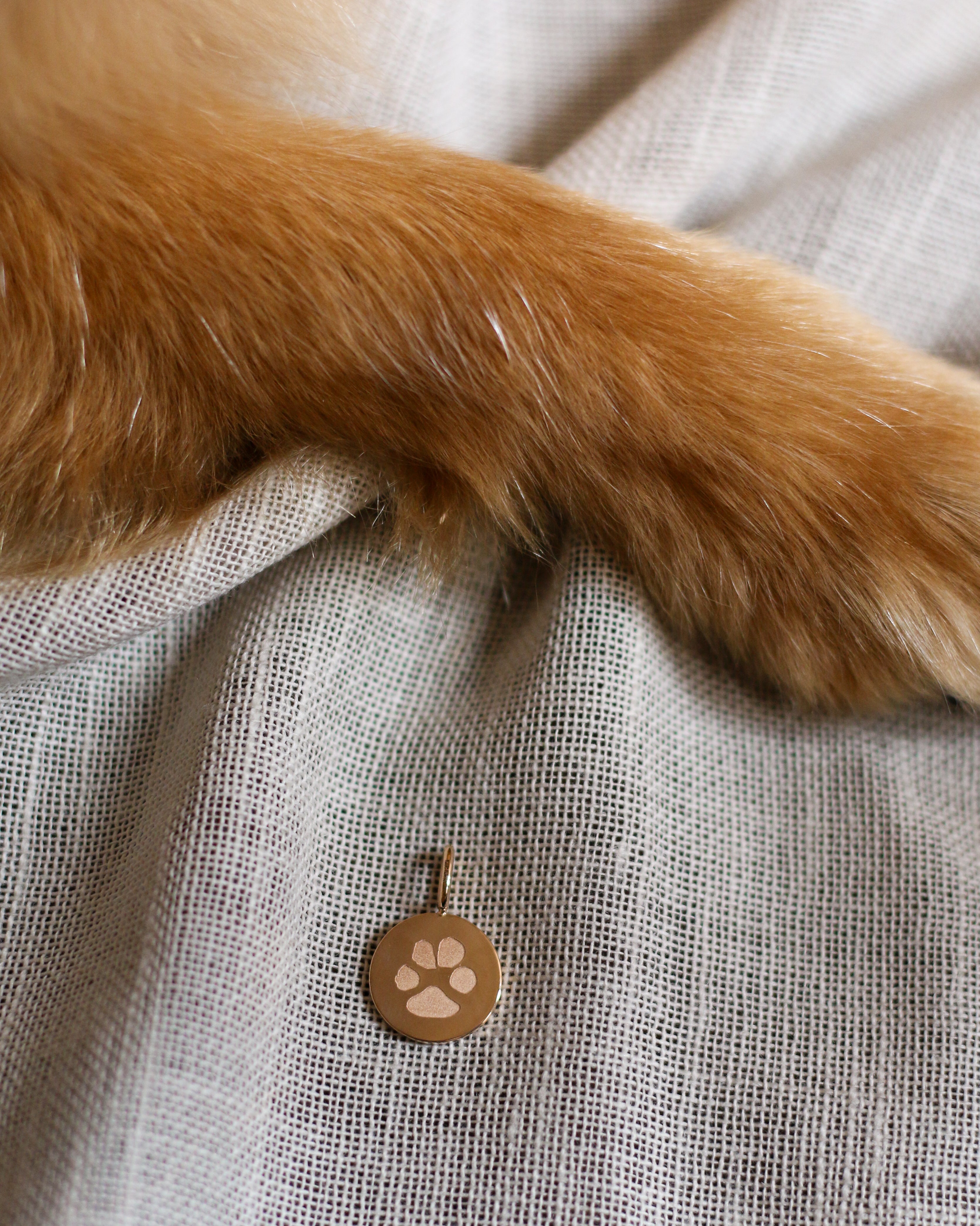Ett hänge med din pälsklings tassavtryck på ena sidan och hans/hennes bokstav på den andra!