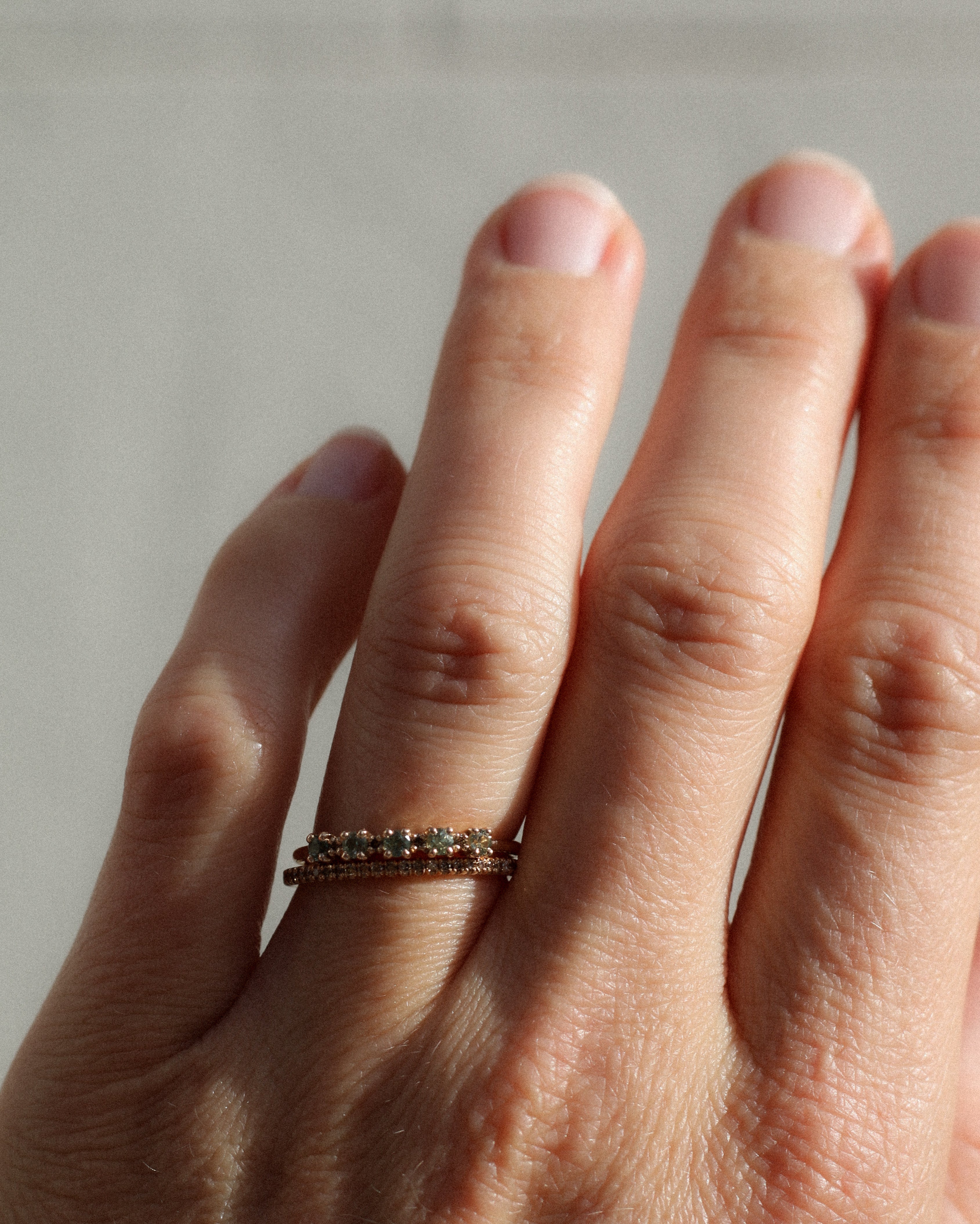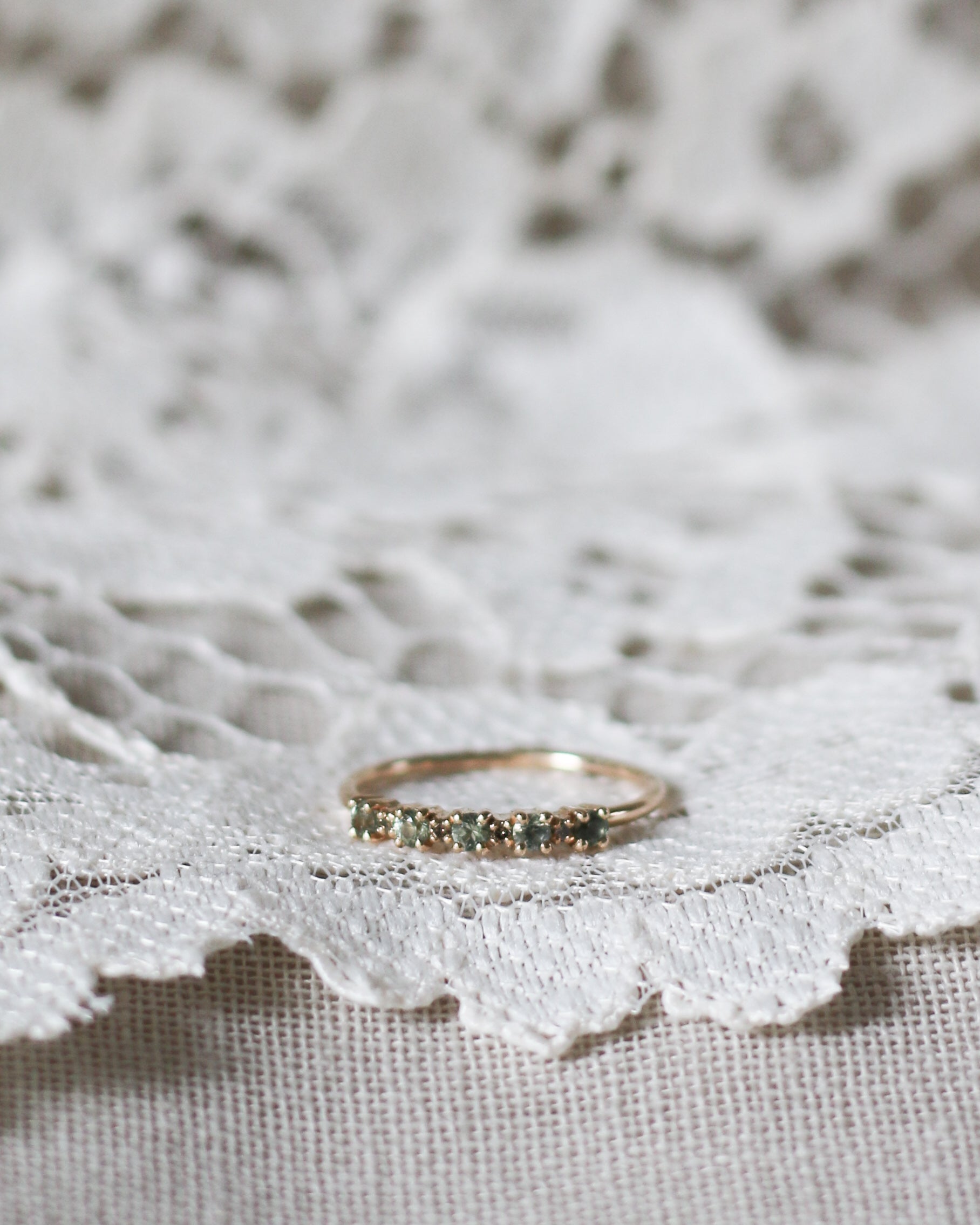 Mini Brigitte Ring med olivgröna safirer och chokladdiamanter