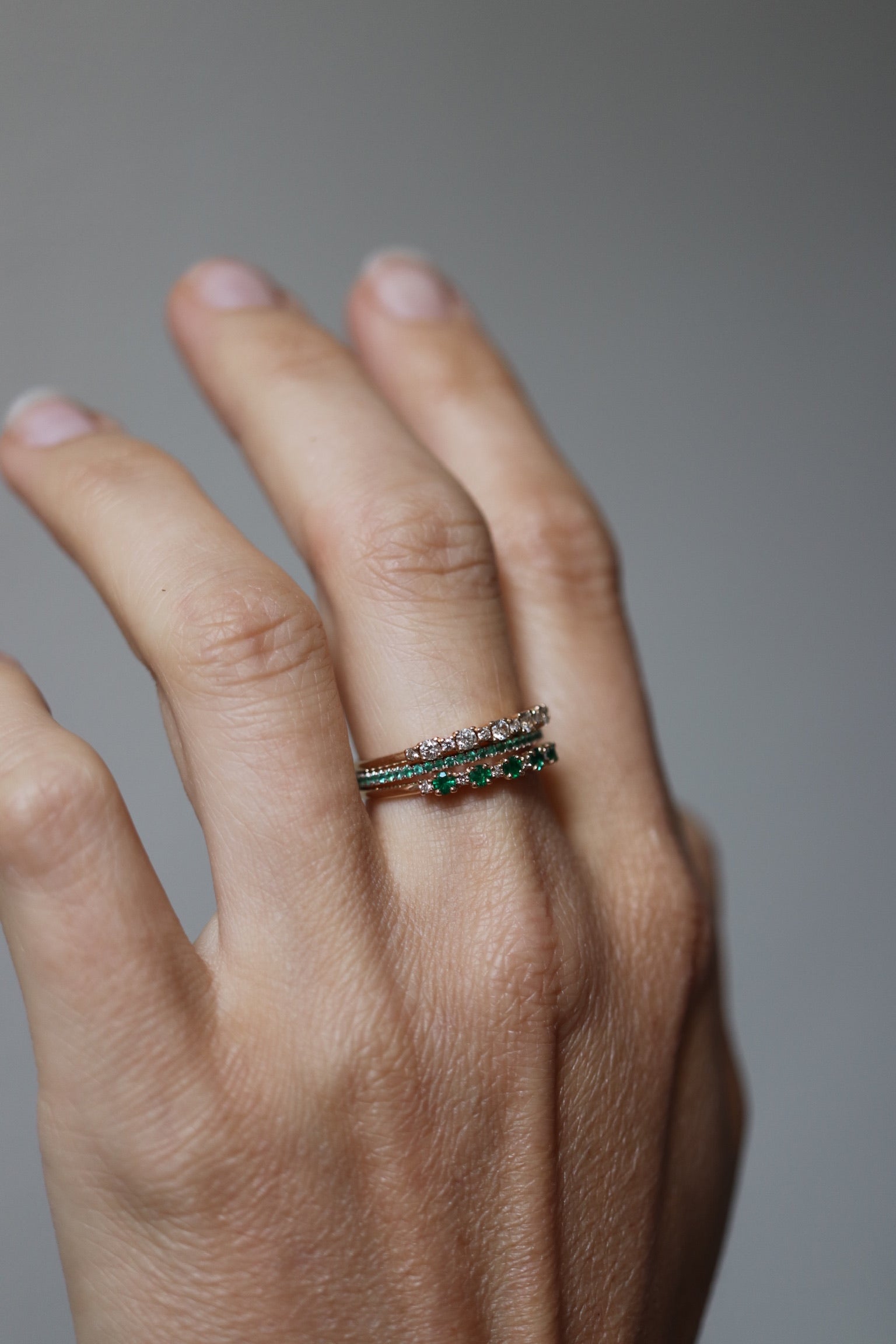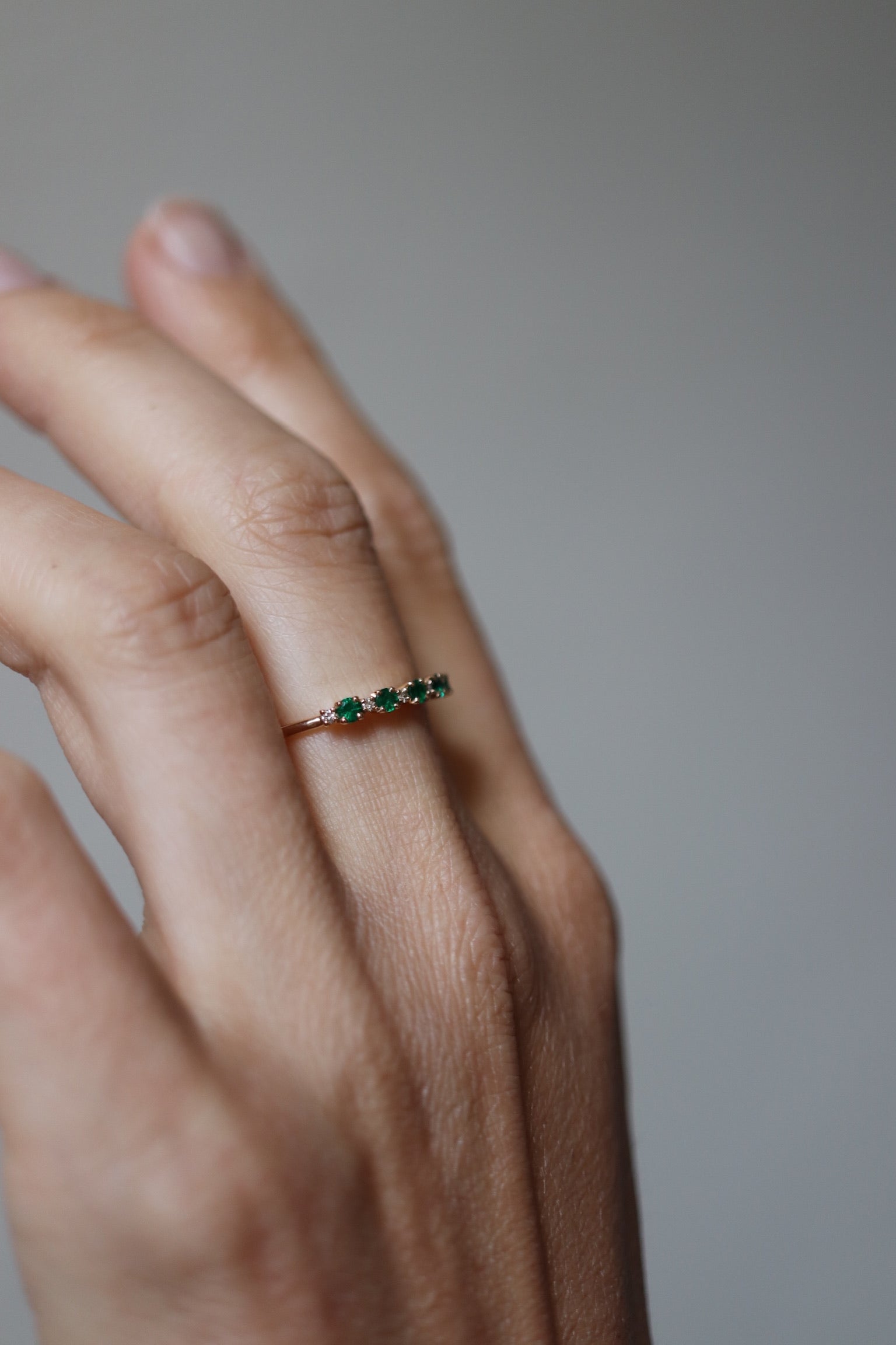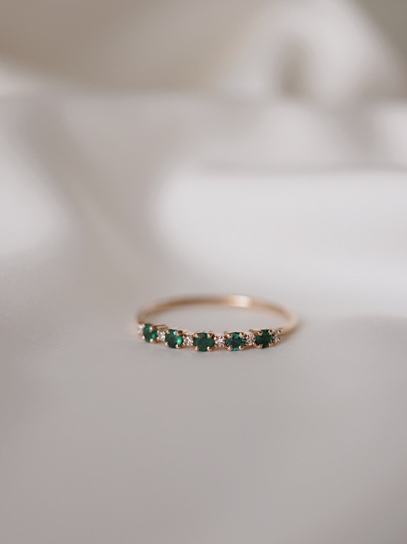 Välj nio ädelstenar för ringstorlek upp till och med 17/53: 5 st 2,25 mm smaragder samt 4 st 0.01 CT diamanter