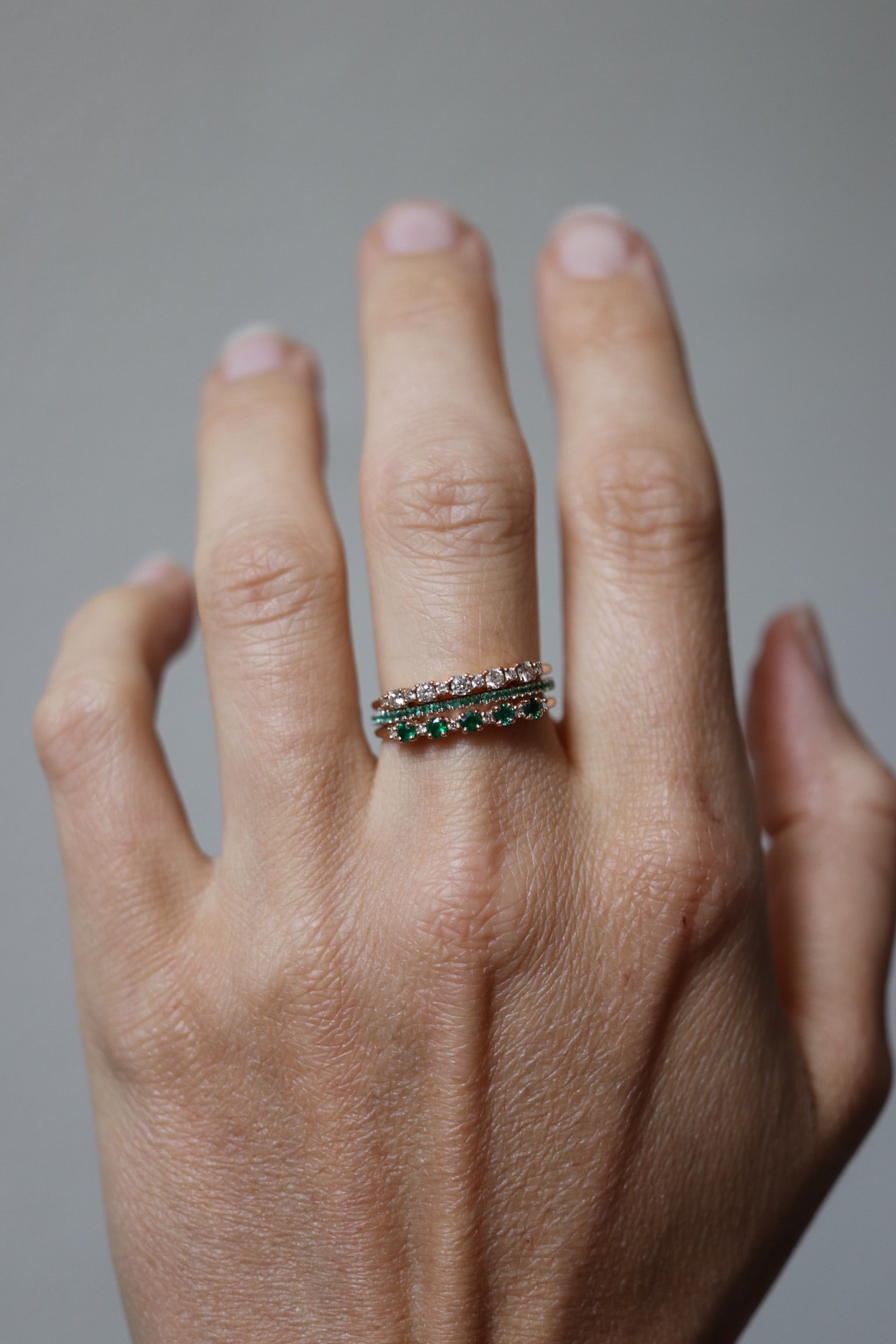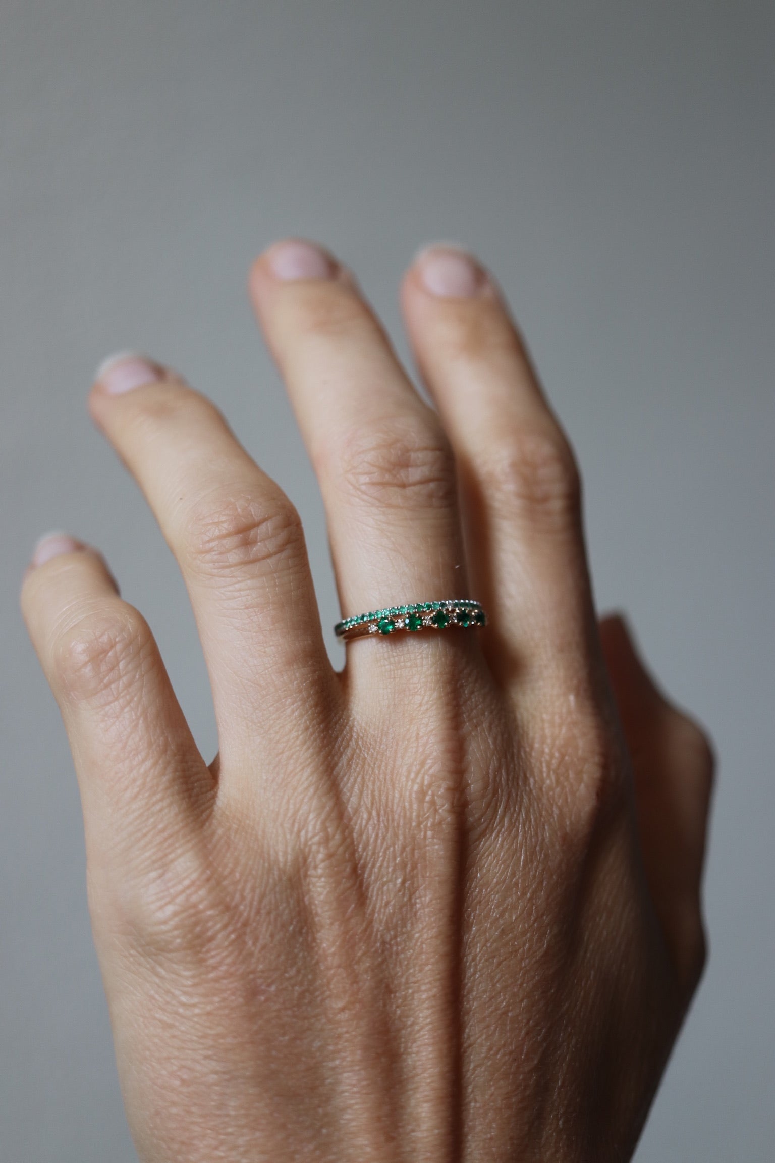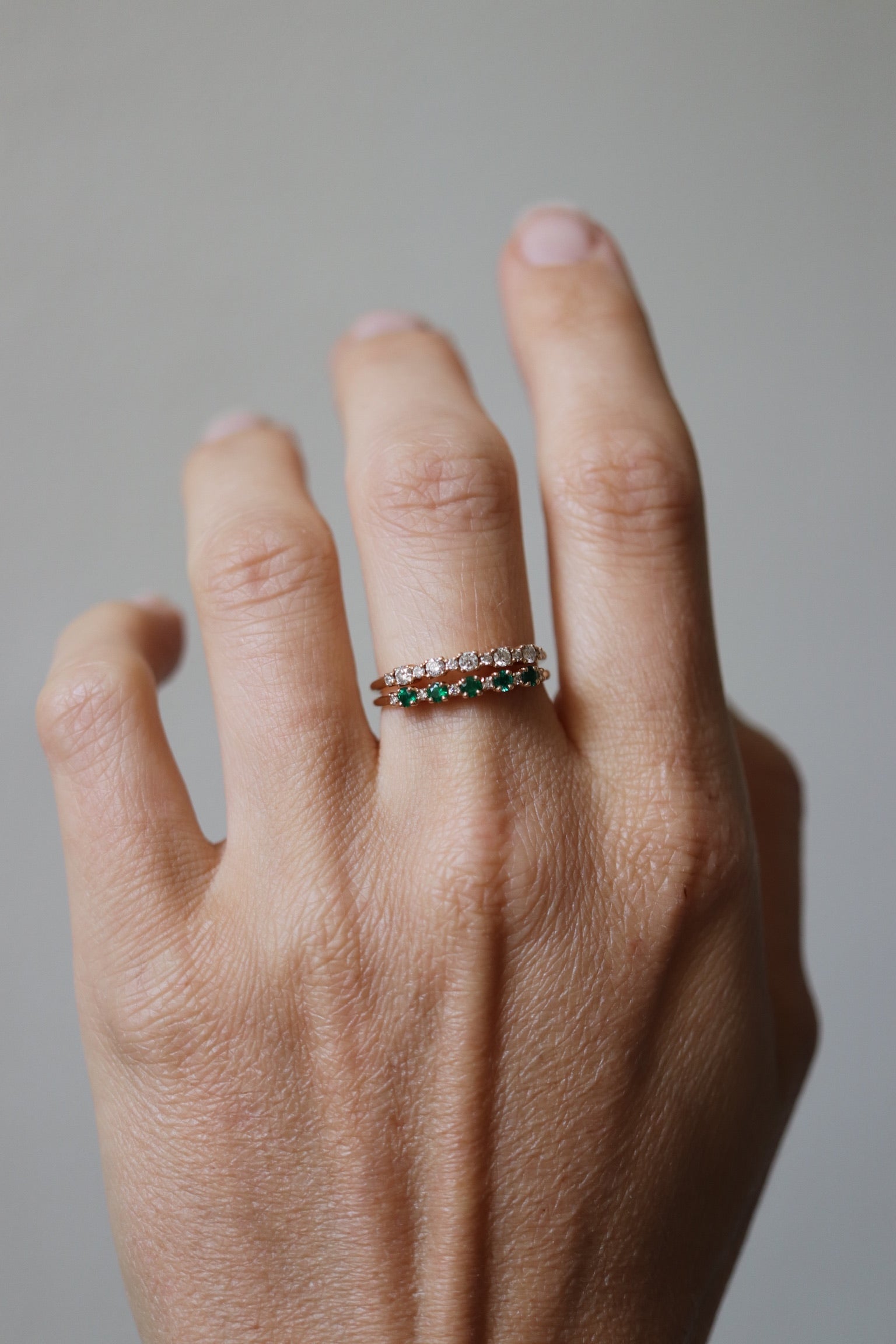 Välj nio ädelstenar för ringstorlek upp till och med 17/53: 5 st 2,25 mm smaragder samt 4 st 0.01 CT diamanter