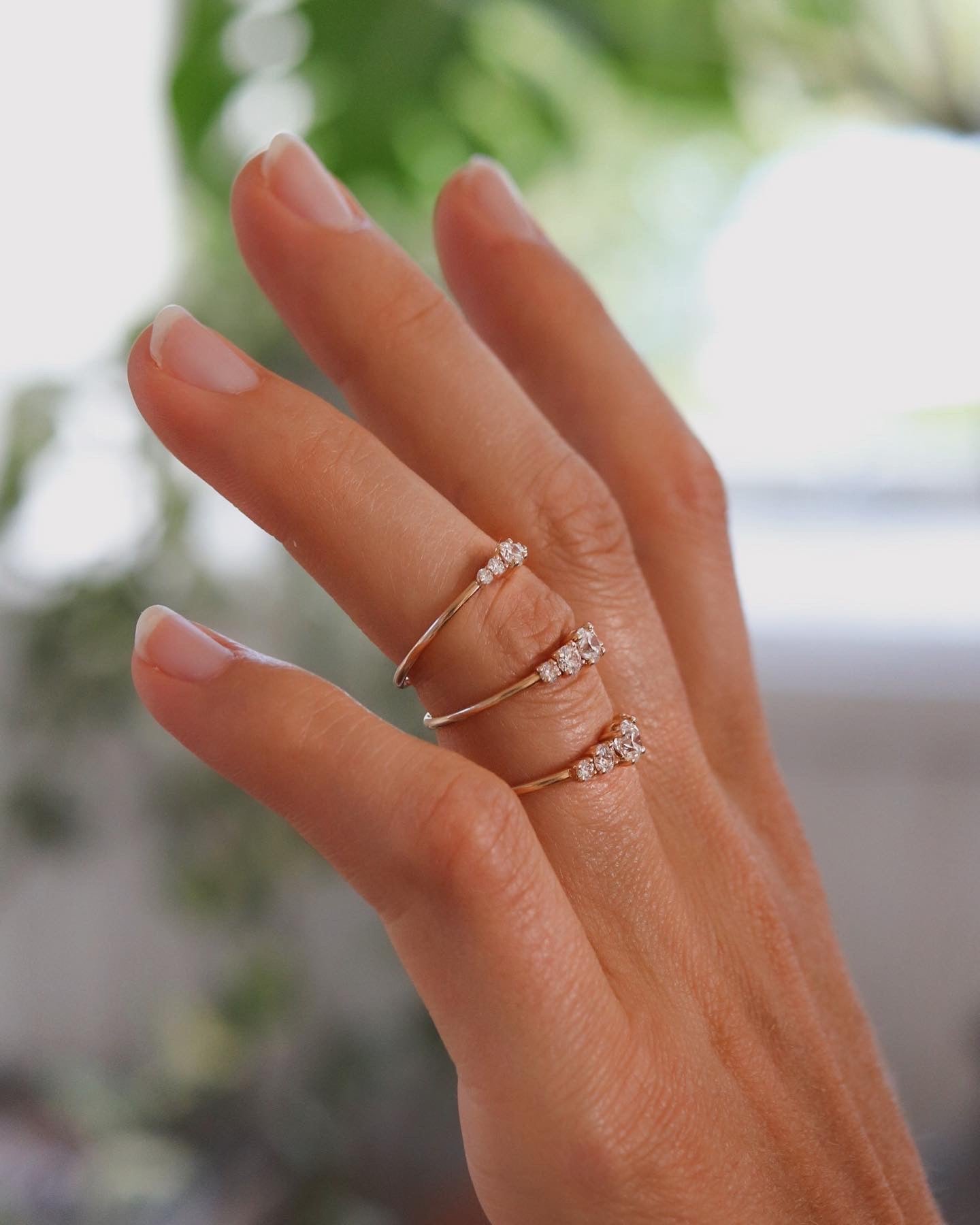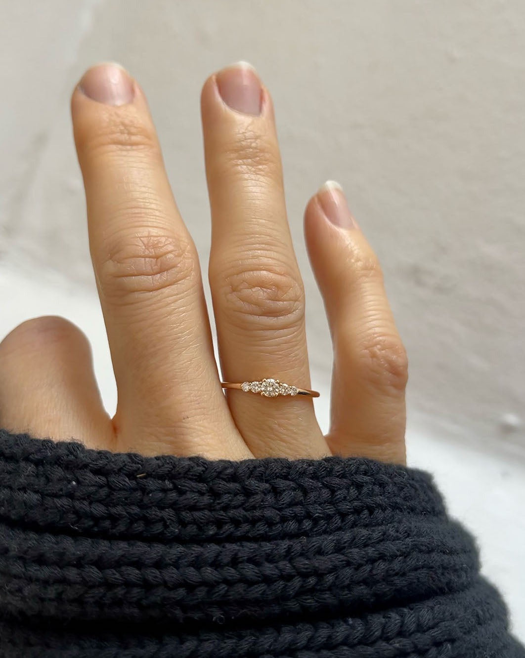Många som provar Mini Elise Ring i vårt showroom upplever att den sitter väldigt fint på fingret och att balansen mellan de fem stenarna är så harmonisk.