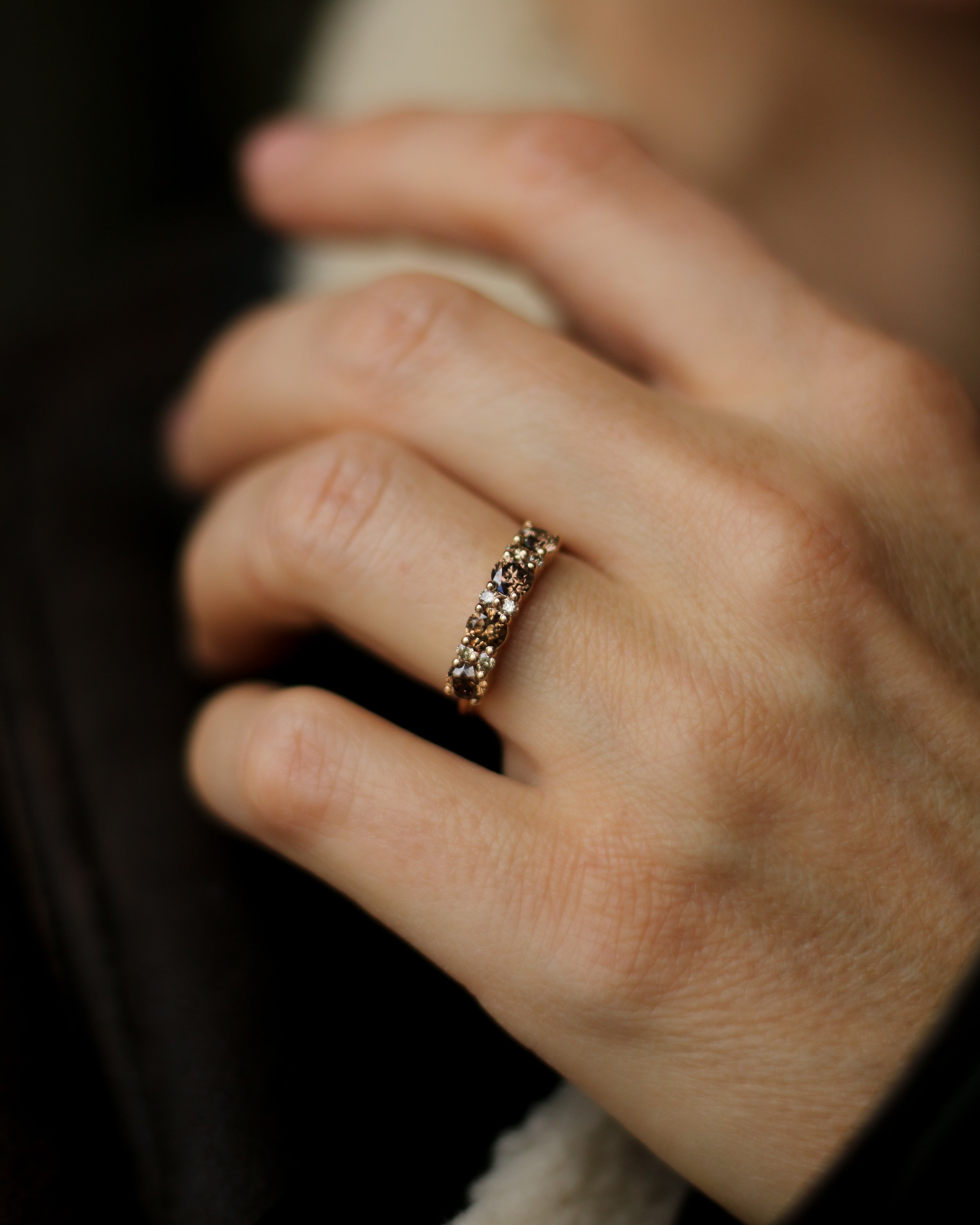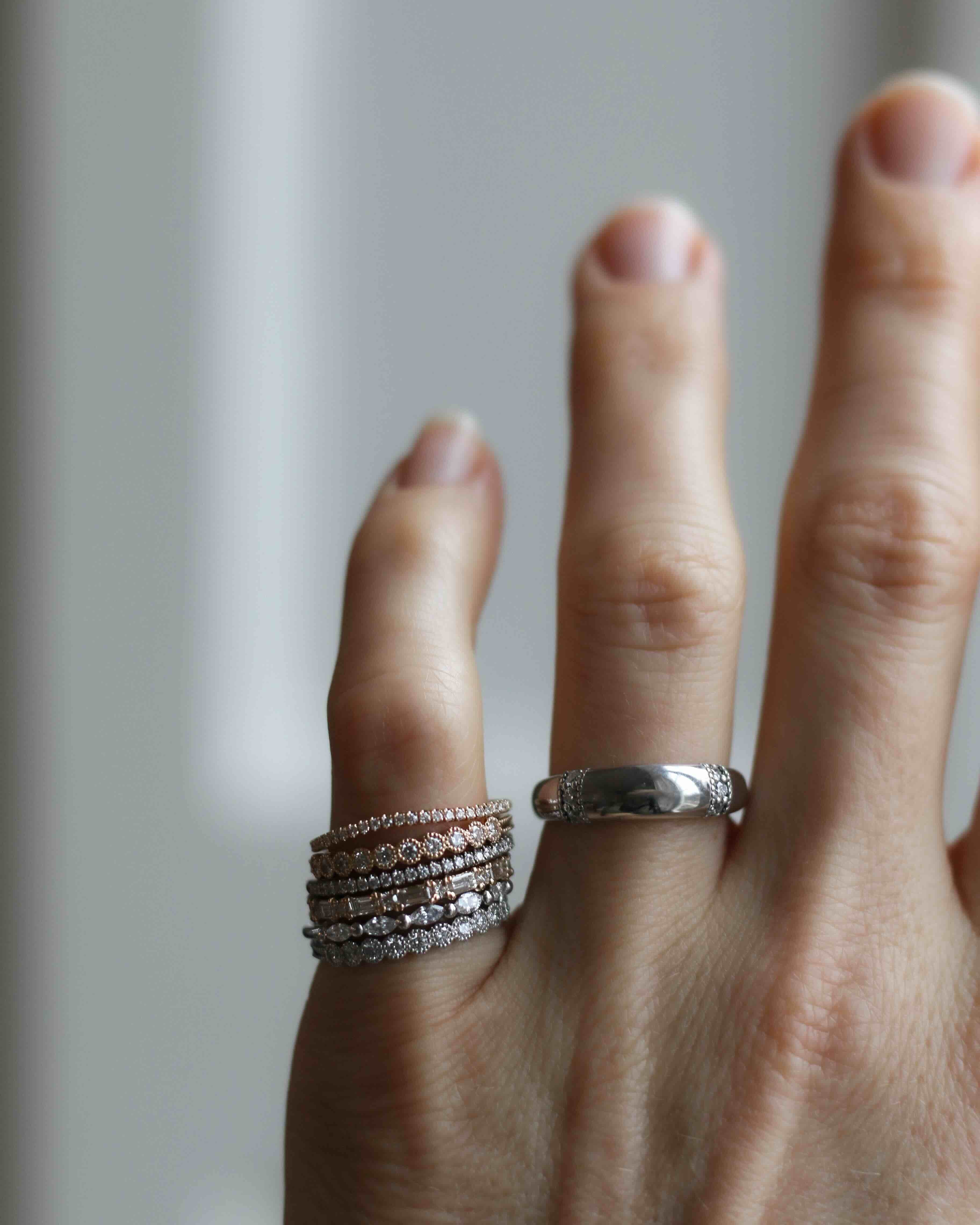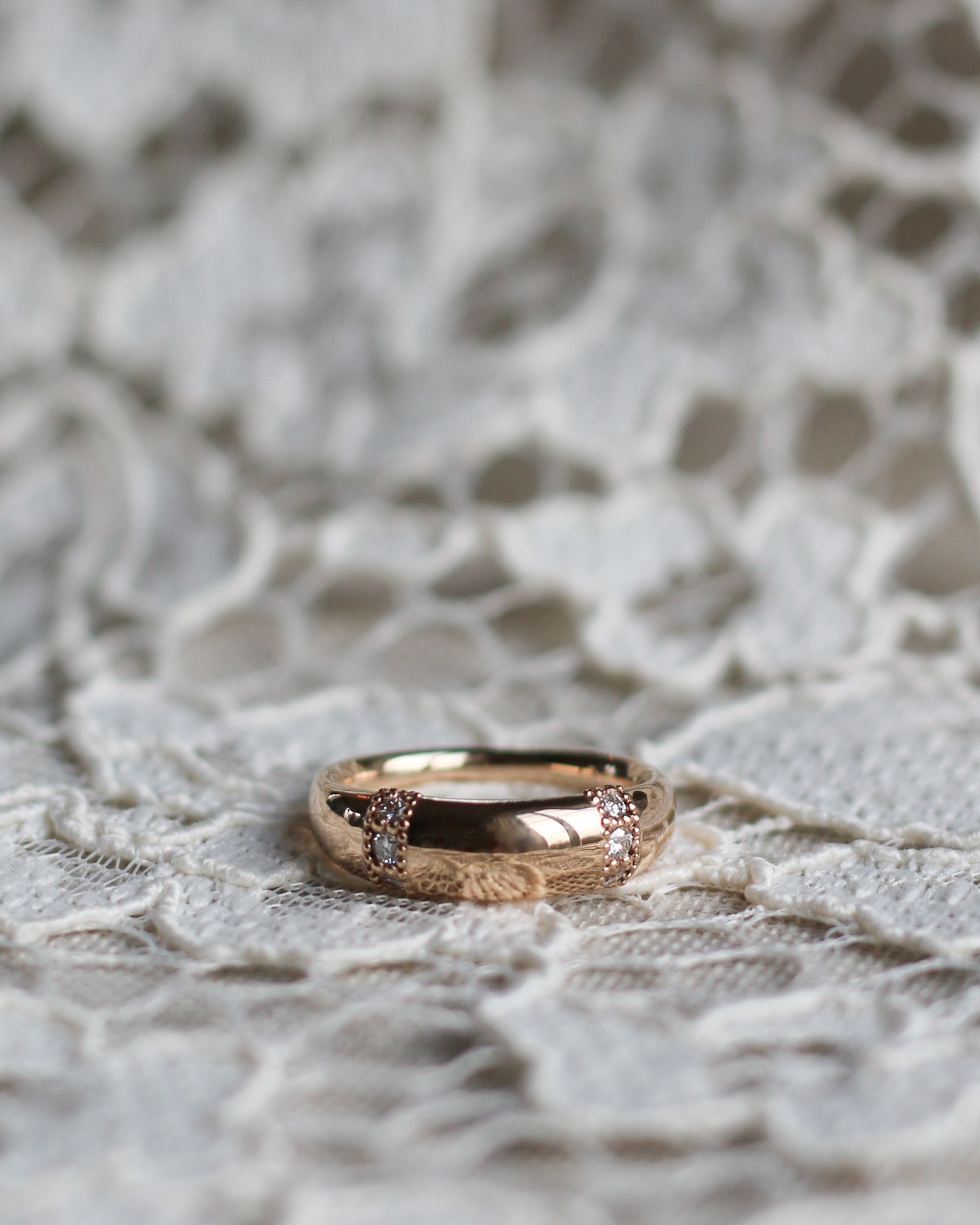 I first made this ring together with Amelia who wanted a cool wedding band to match her solitaire. This is the top covered version of that ring - and I love how it turned out! I have been longing to design a ring like this, and Amelia gave me the perfect reason to create the first one. Now I want my own! Amelias ring was made in platinum, so we made also this one in platinum. Can be made in your choice of gold as well. Love Cecilia