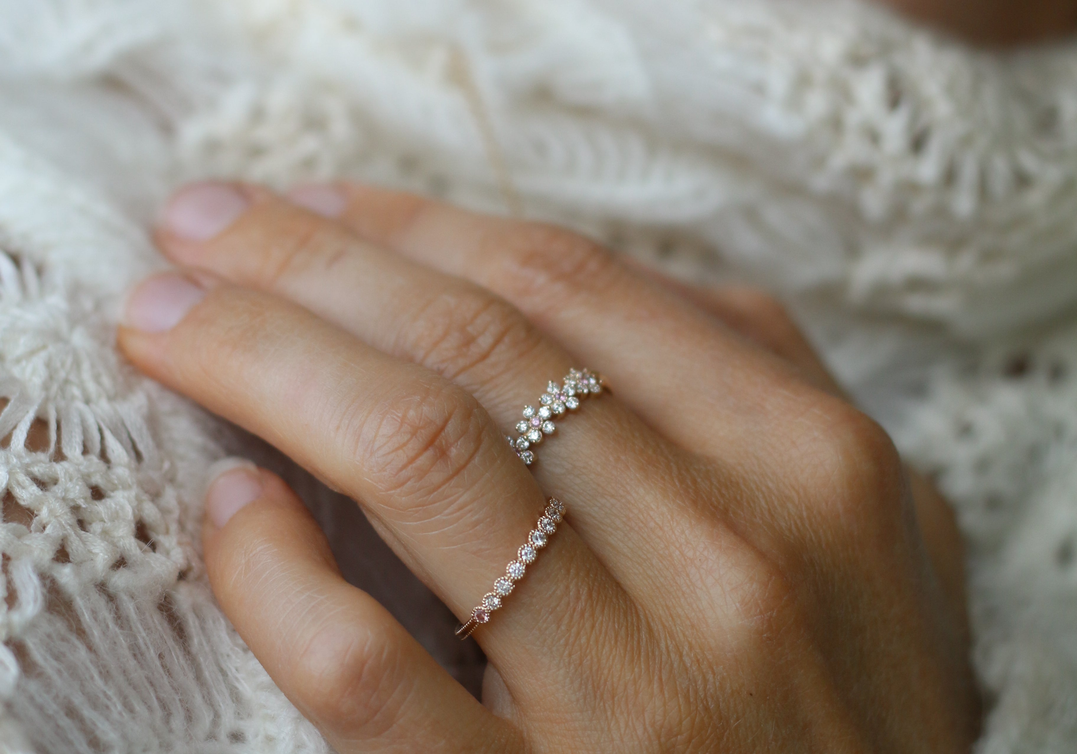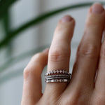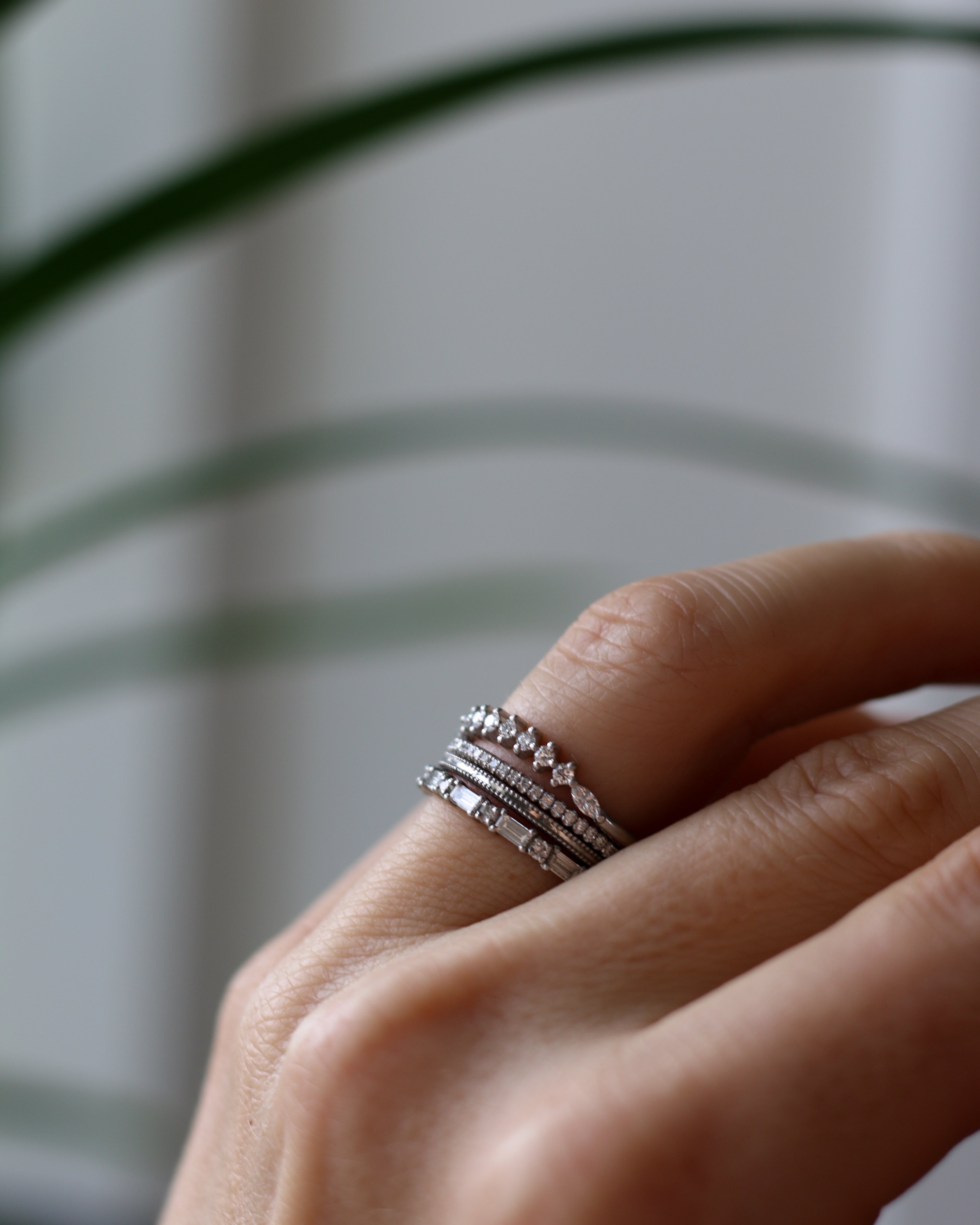 The minimalistic design plays with the contrast between soft and hard, and is easy to stack and combine with other rings.