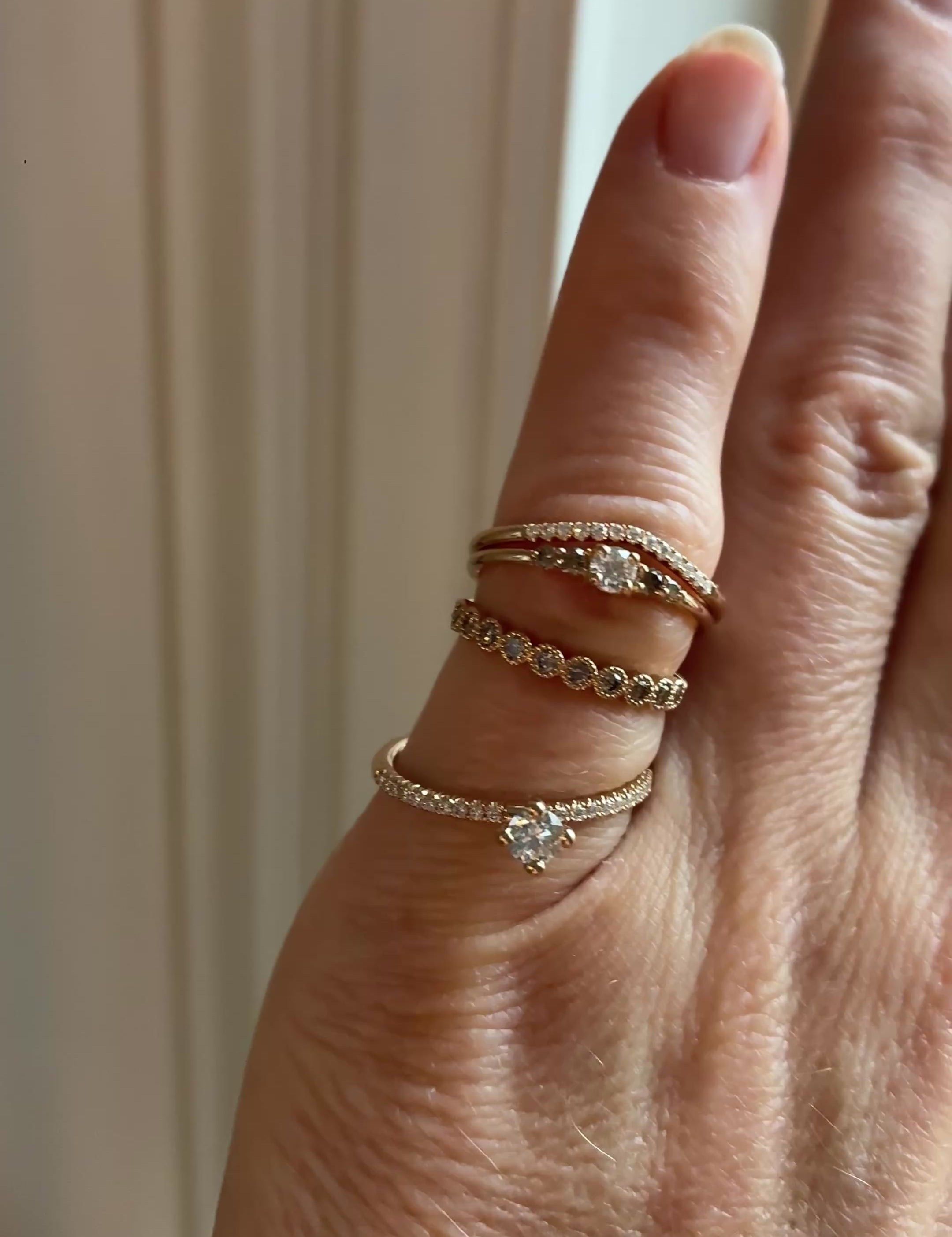 The ring is 1,5 mm high at the highest, so it is easily stackable to most other rings