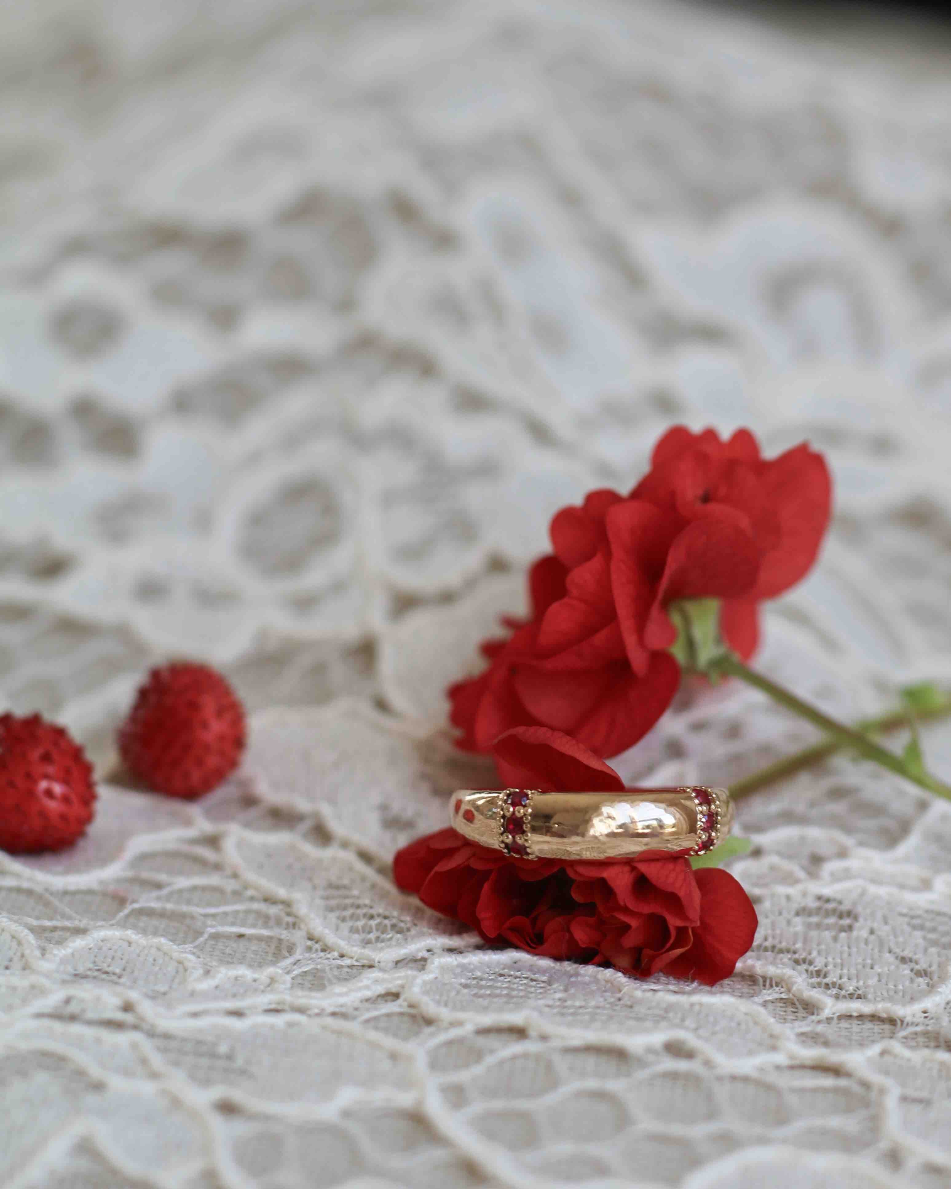 En helt underbar ring med intensivt röda, fantastiska rubiner. Så vackra och precis så magiska som bara riktigt fina rubiner kan vara.