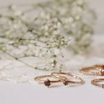 Ringar med ädelstenar: standard produktionstid 6-7 veckor.