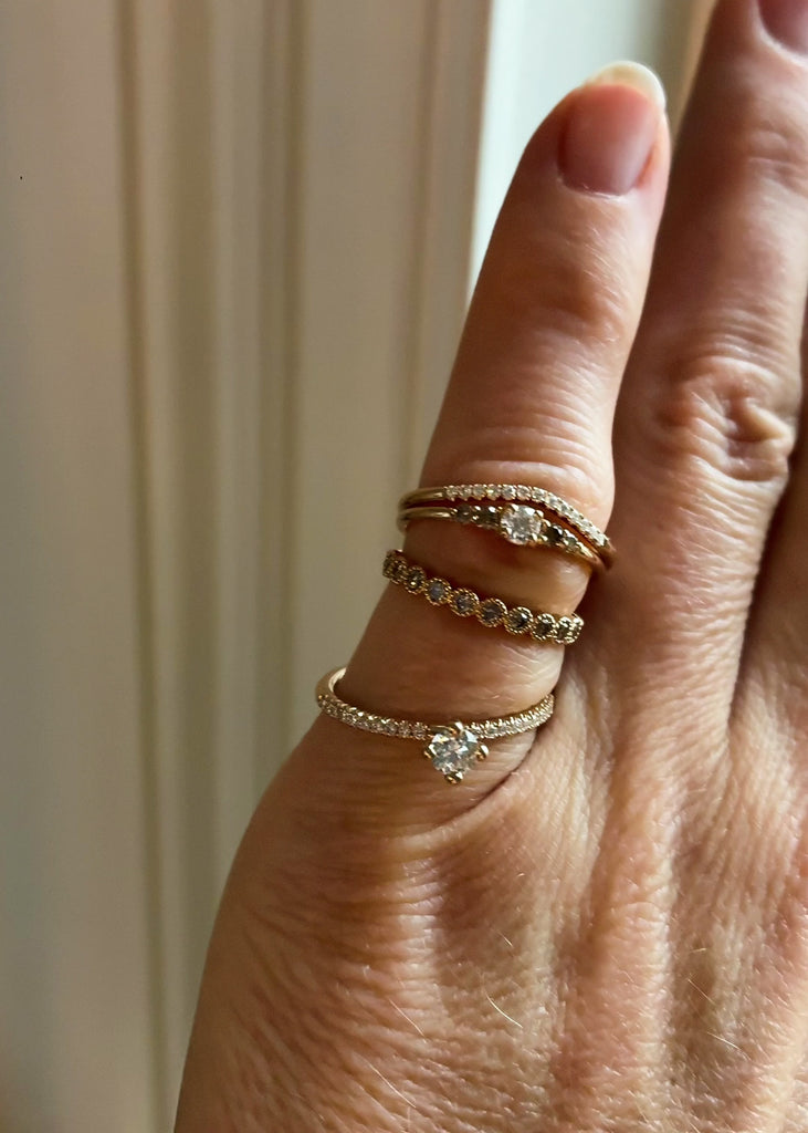 Älskar denna mixen av en liten diamantring och en glittrande solitär!