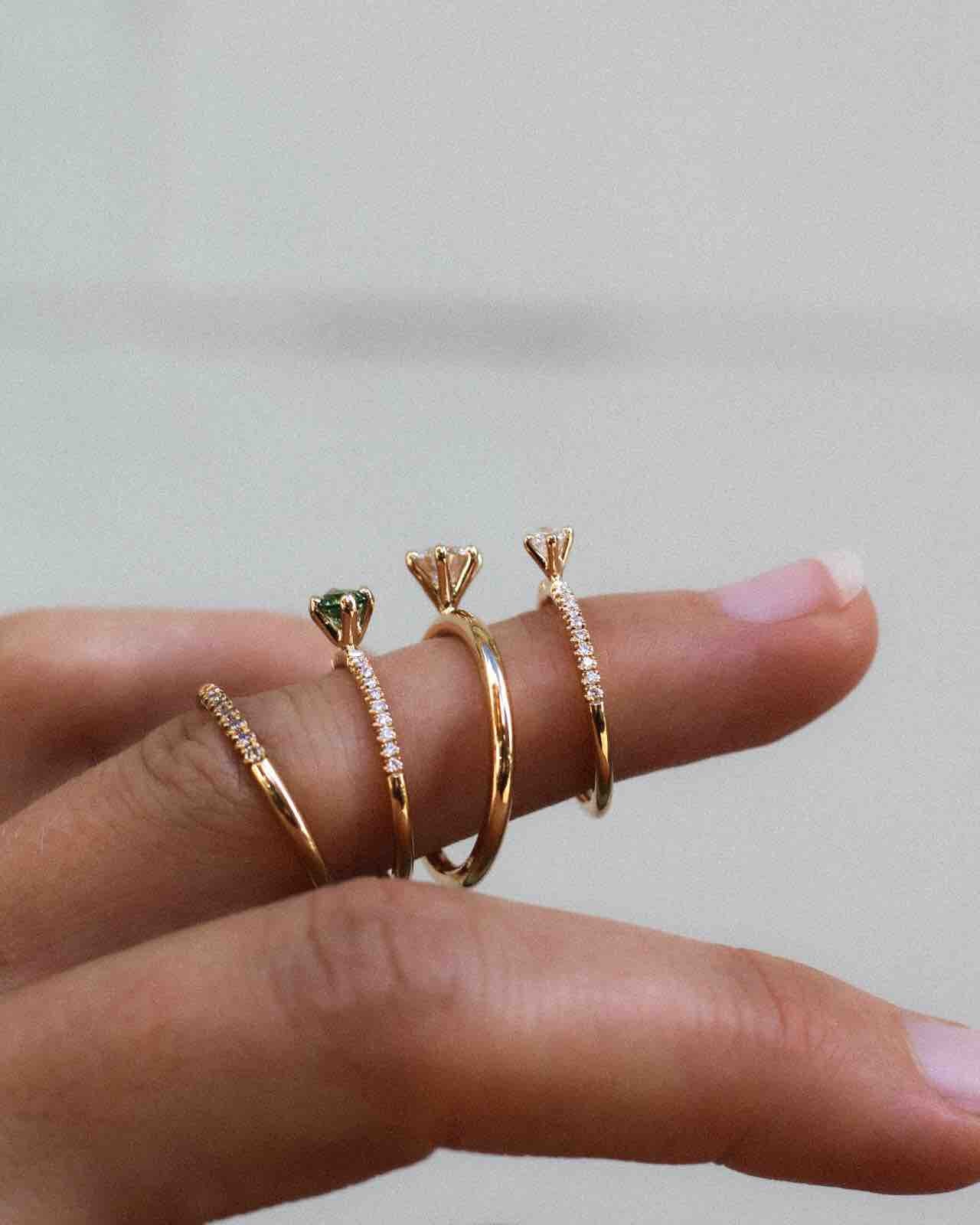Det fantastiska med Not So Tiny Sparkle Ring är hur den både är minimalistisk och subtil - tack vare mittendiamantens nätta storlek och ringens avskalade design - samtidigt som diamantglittret på sidorna gör den bohemiskt lyxig.