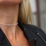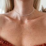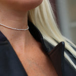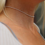 Det är ovanligt med så här små pärlor, och det kräver mer arbete vid knytning av halsbandet. Därför blir detta halsband både minimalistiskt men också lite extra lyxigt - på samma gång.