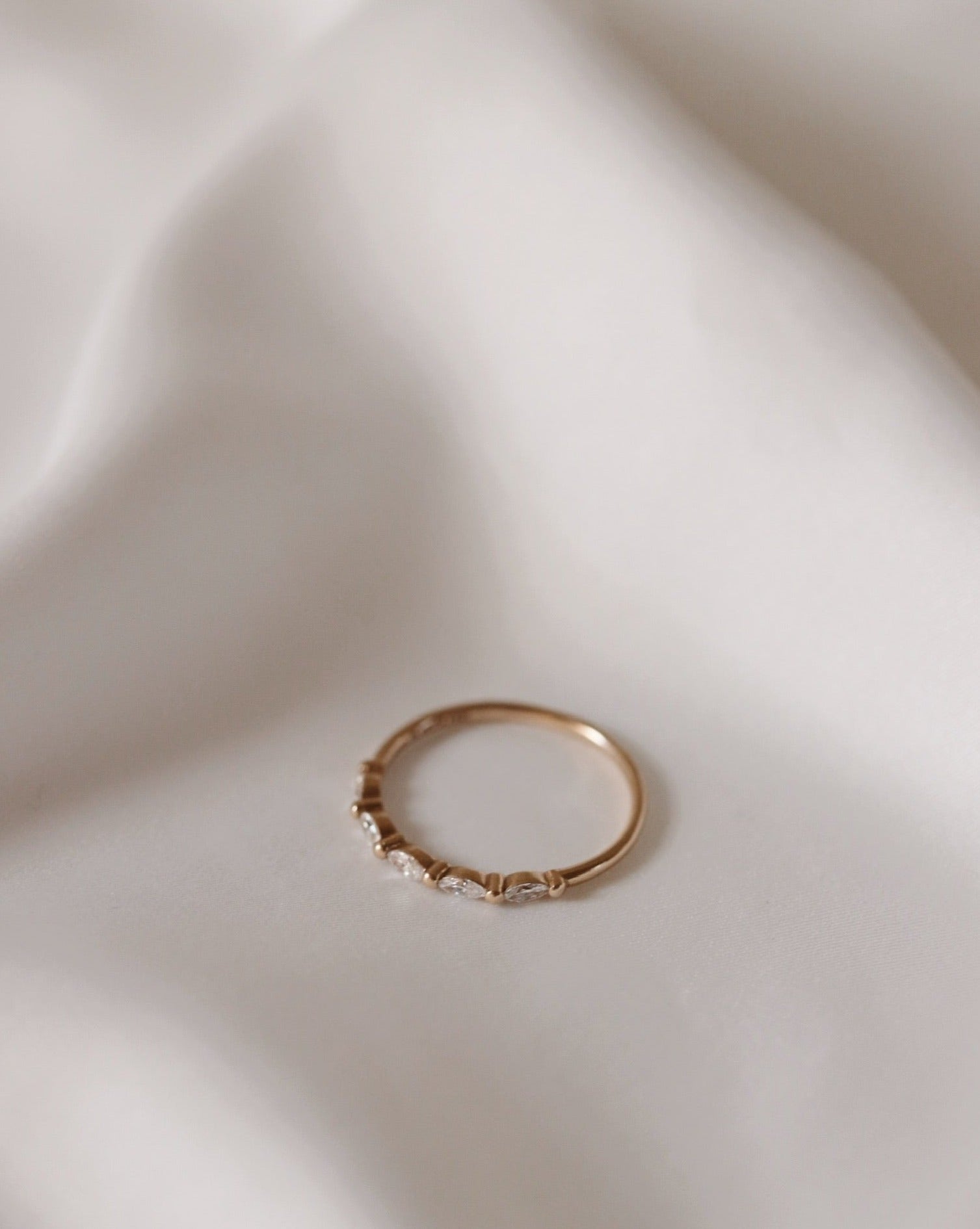 Marquise means Royalty in French, and it is also the name of the beautiful and special navette cut diamonds! The name Phoebe is a synonym of five, and symbolizes the five diamonds in this ring.