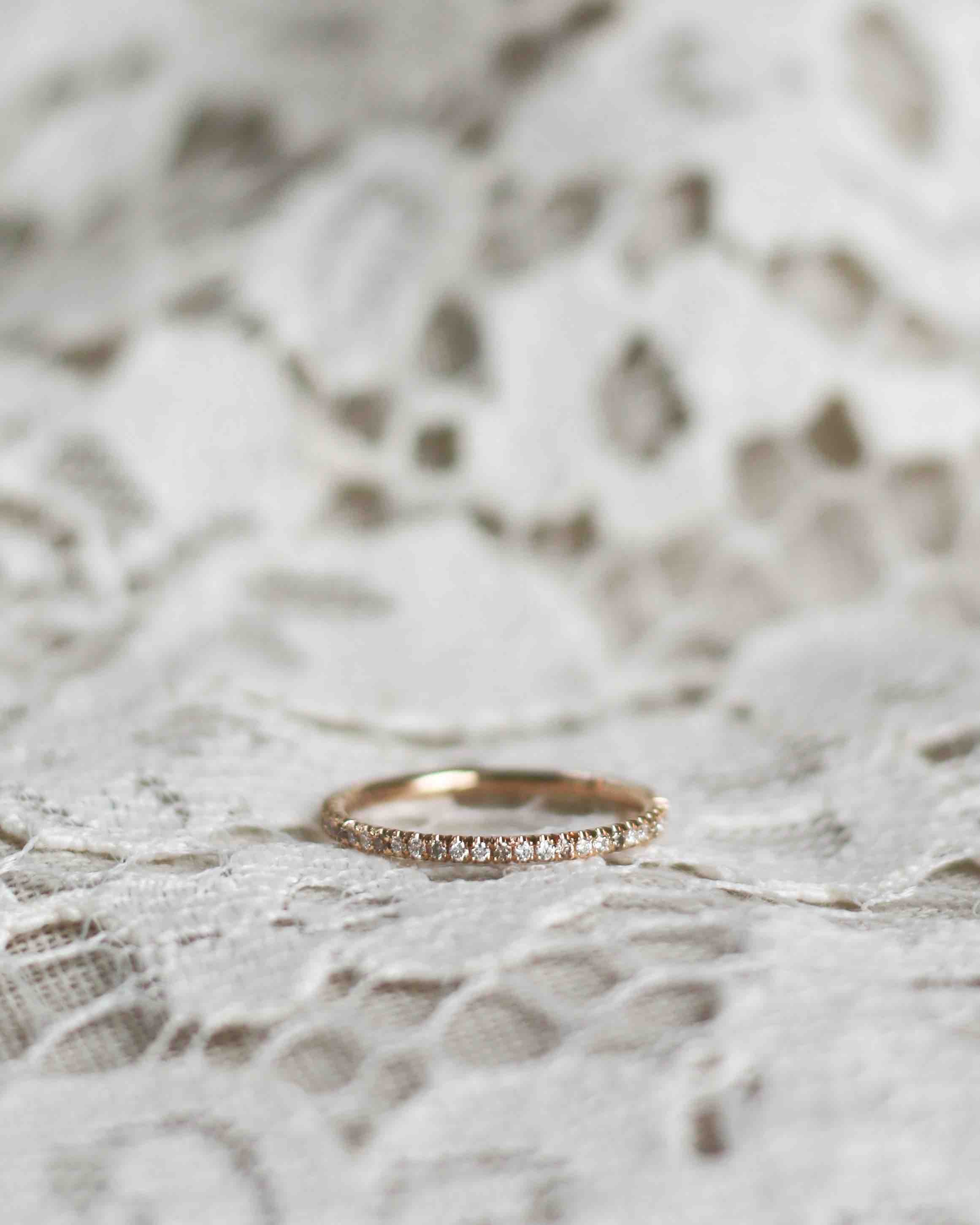 Täckt med ädelstenar i följande 2+1 mönster: två diamanter och en chokladdiamant, upprepande runtom hela ringen.