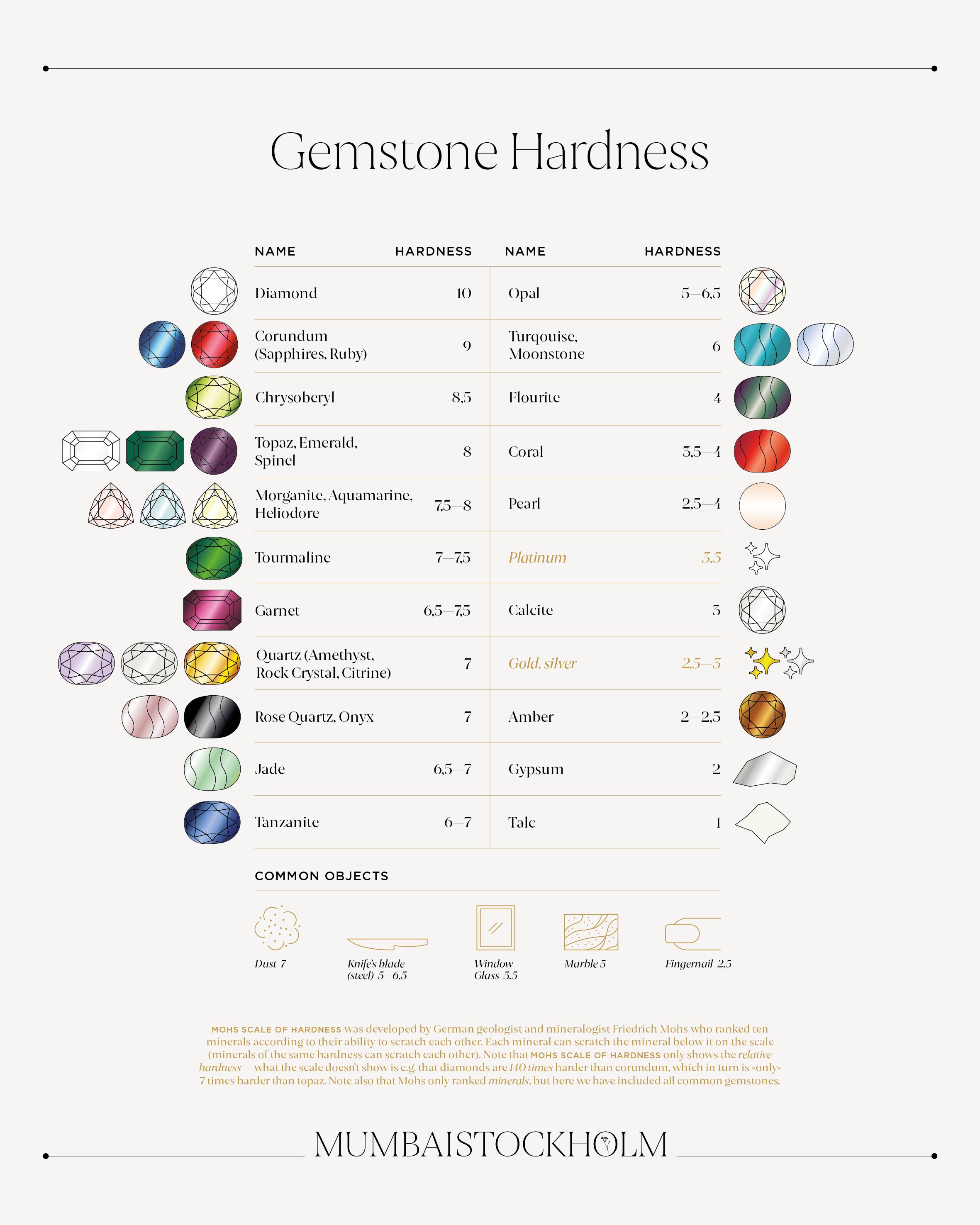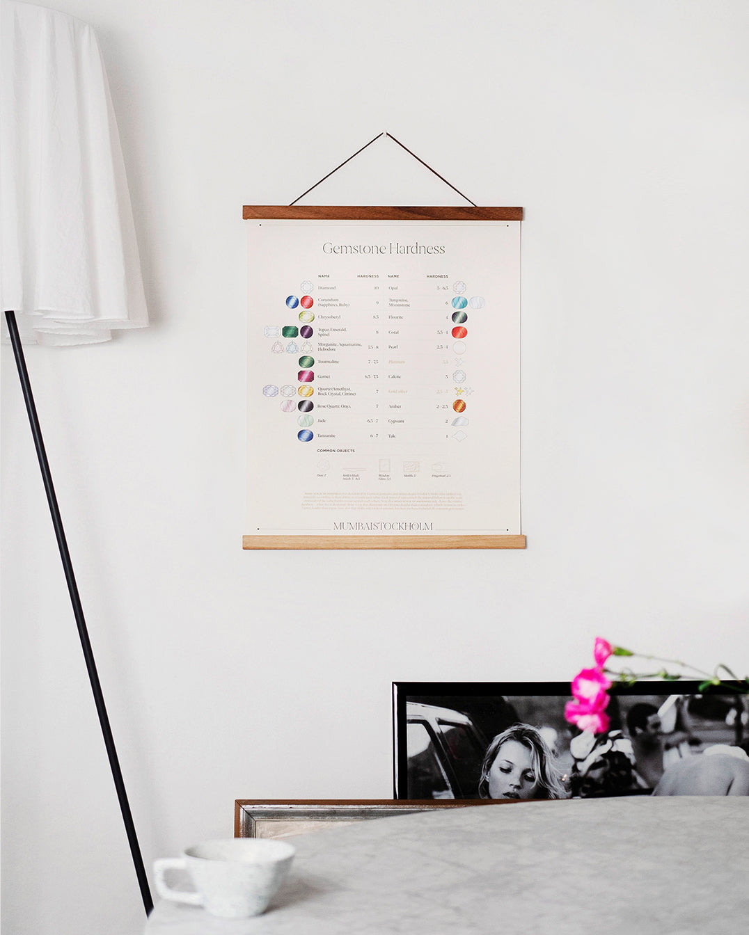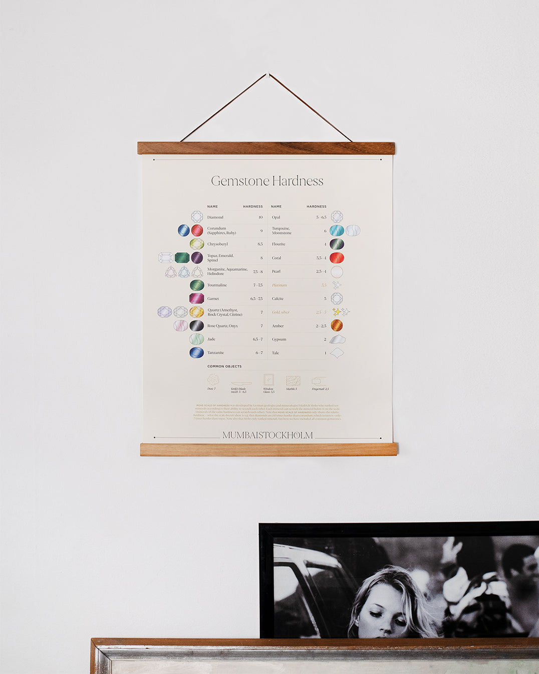 On this poster, we also included the hardness of common materials such as marble and dust to show the hardness of gemstones in comparison to these!