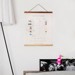 The frame is made from oak wood and measures 41 cm, so you have a decorative free space of 0,5 cm on each side. It is a magnetic frame that is easy to take on and off. Attached to the frame is a dark string that makes it easy to hang it up on the wall.
