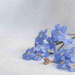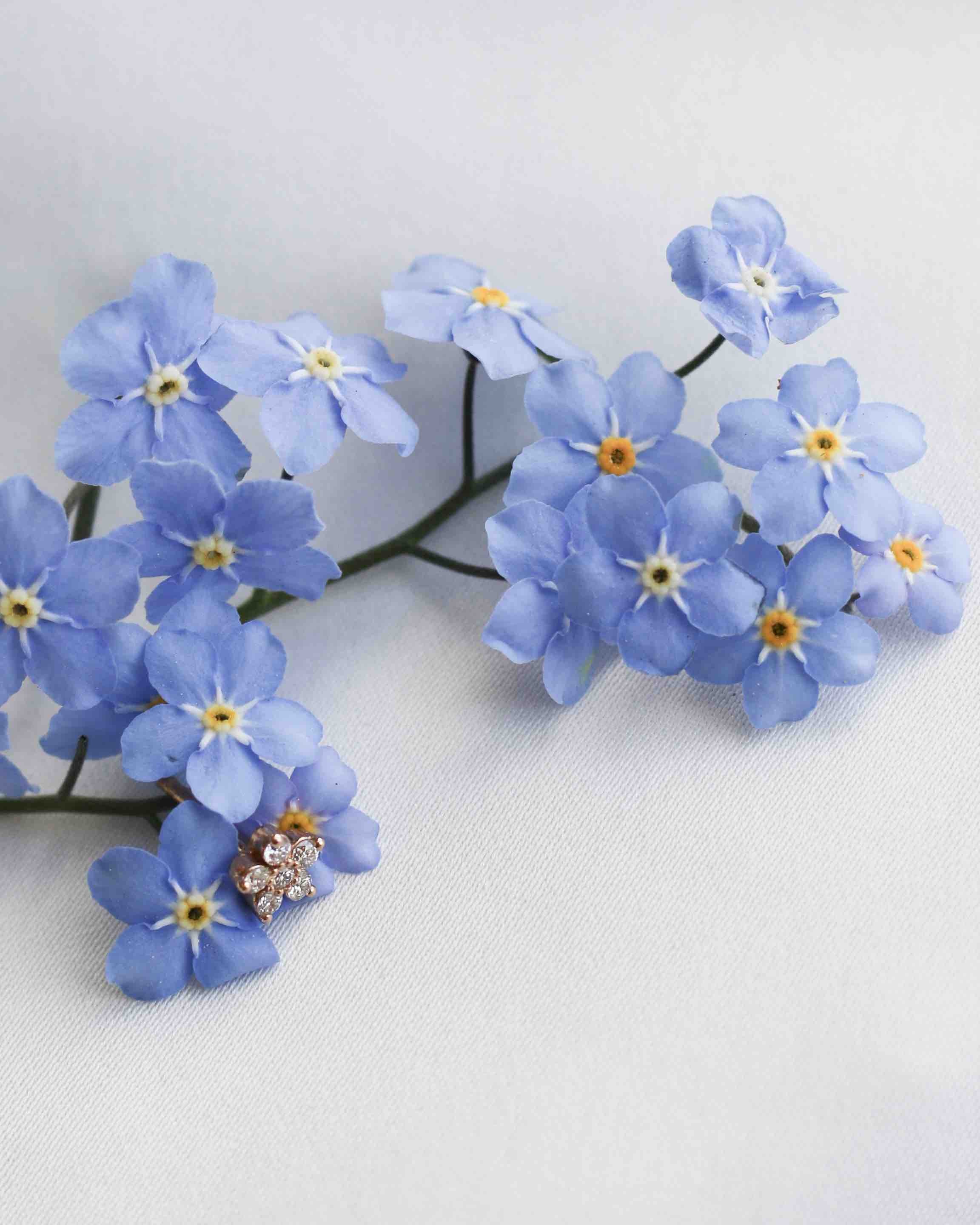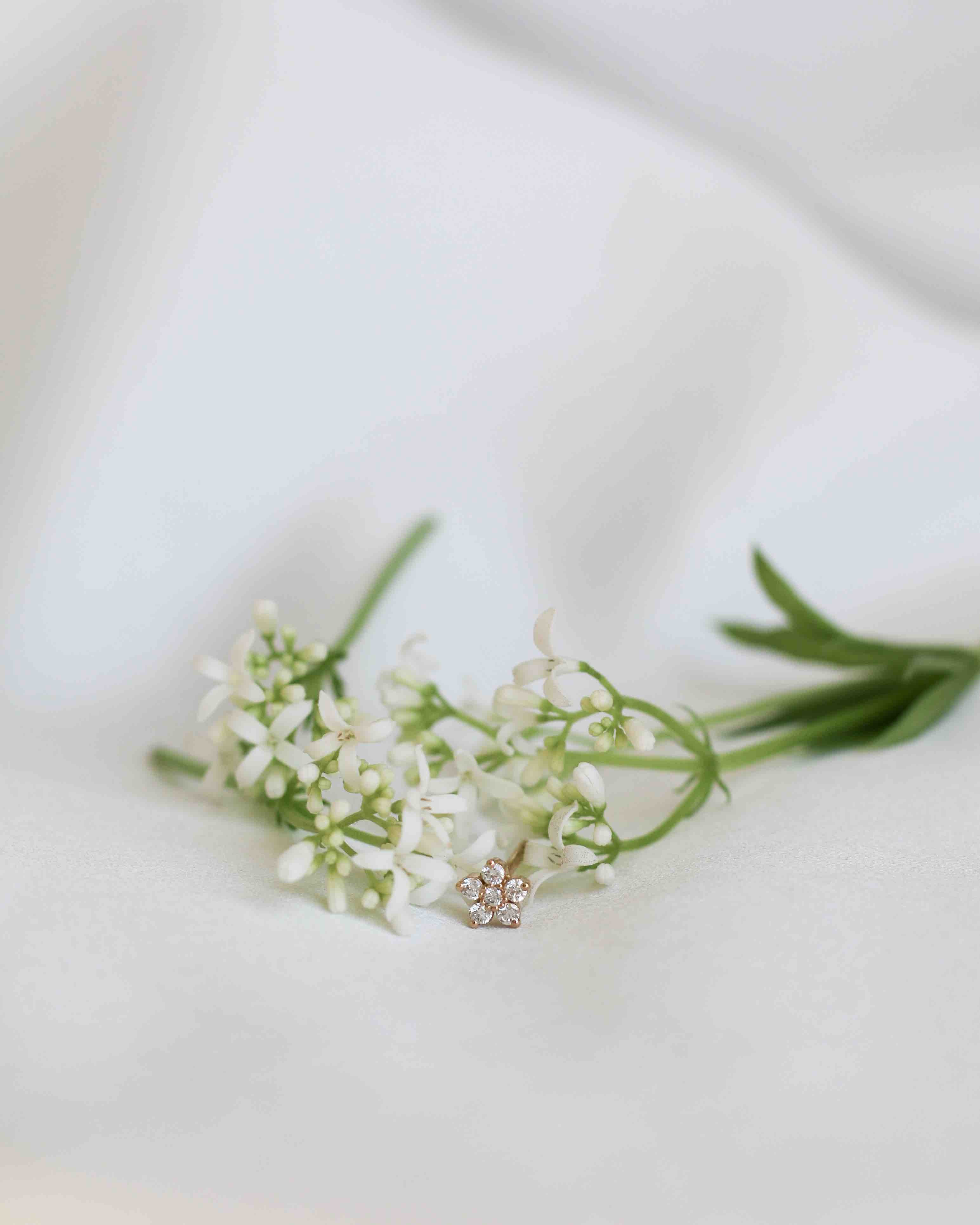 Örhänget mäter 5 mm tvärs över. Tips! Om du vill prova storleken i ditt öra, klipp ut en rund pappersbit som mäter 5 mm i diameter och lägg mot örsnibben där du tänkt bära din Secret Garden Flower Stud!