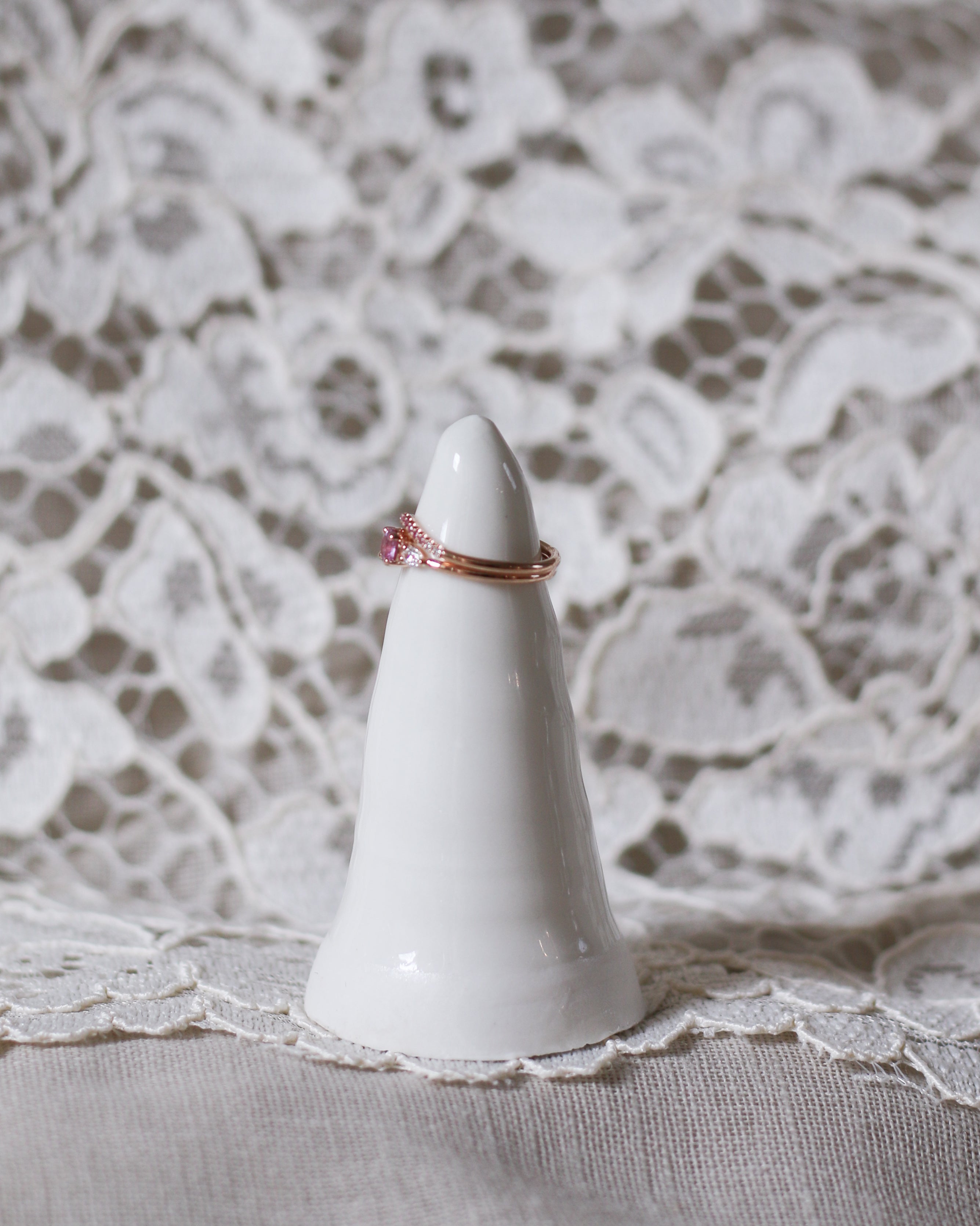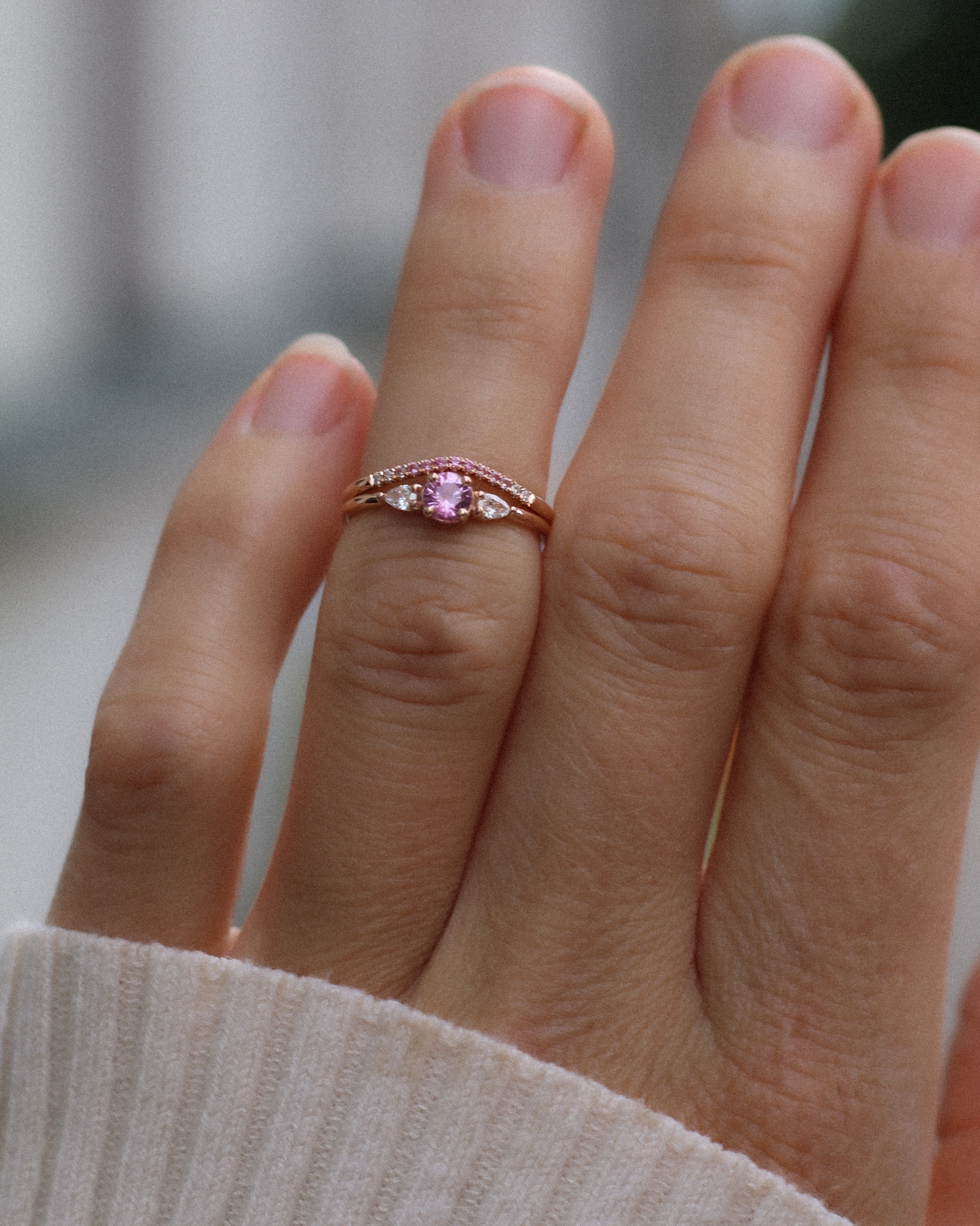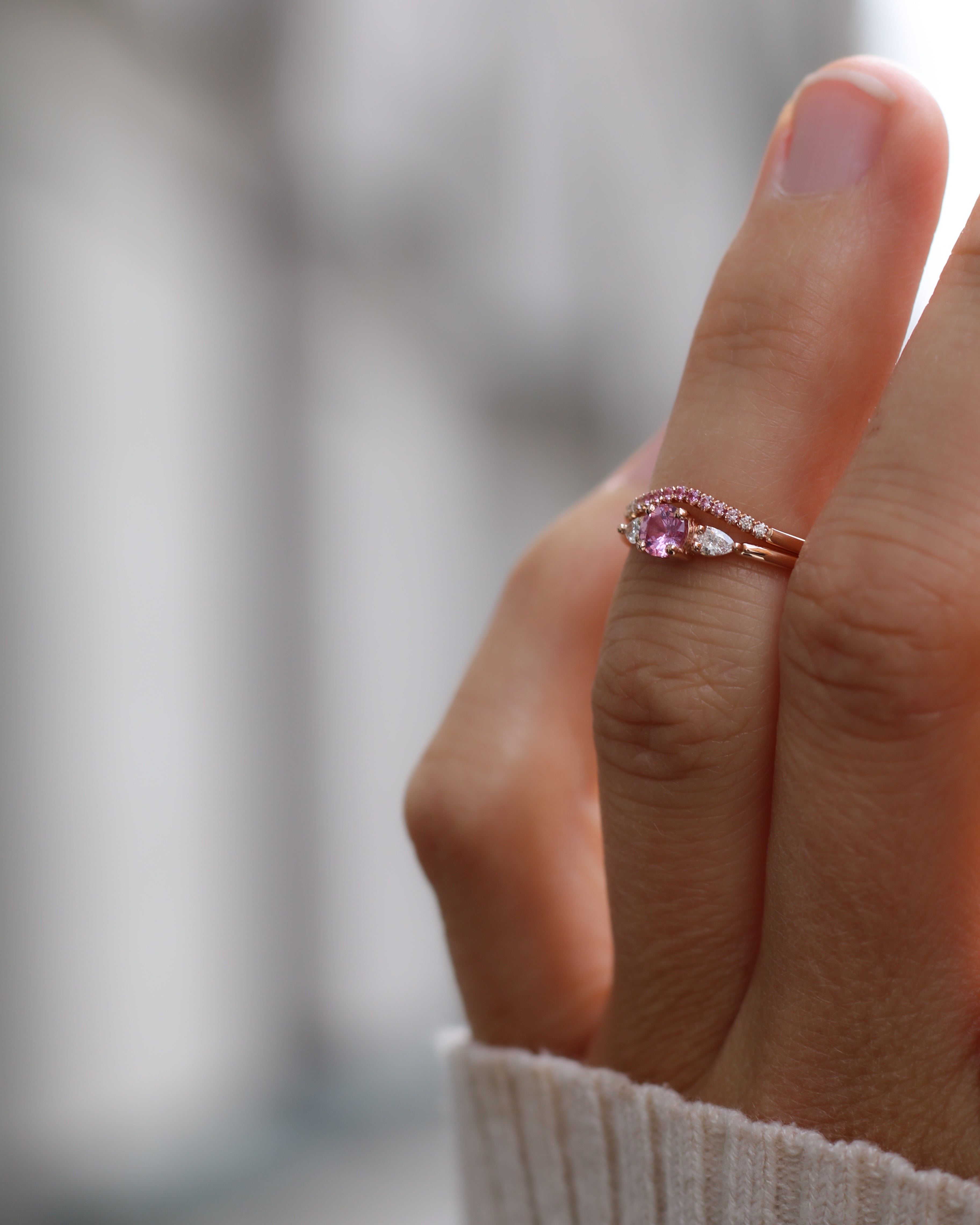 Drop Edith Ring looks amazing alone on the ring finger. It also stacks beautifully with other rings, especially curved bands.